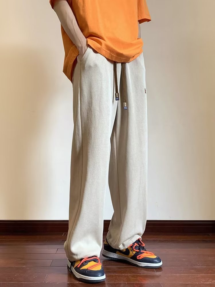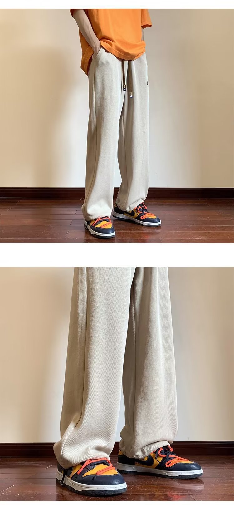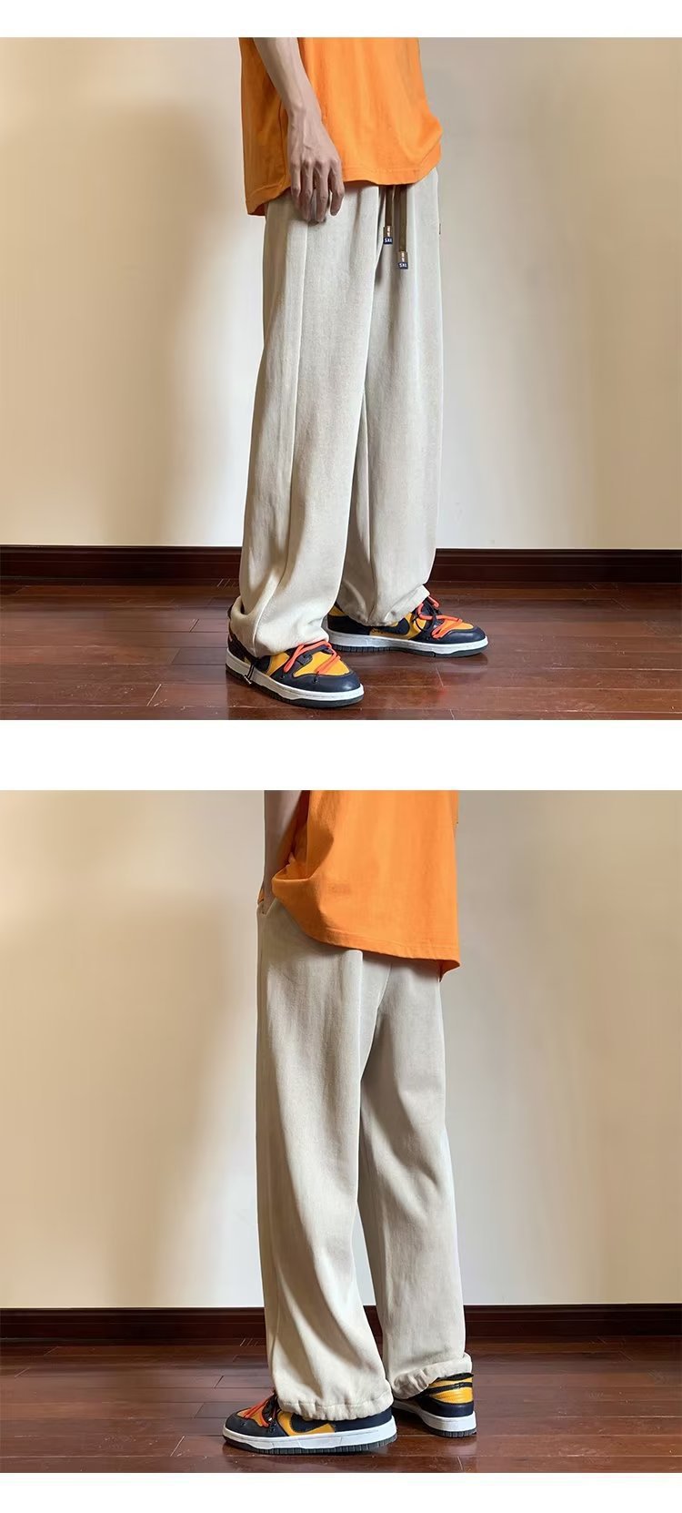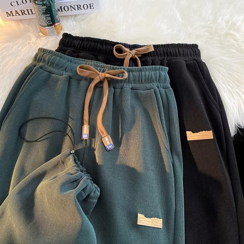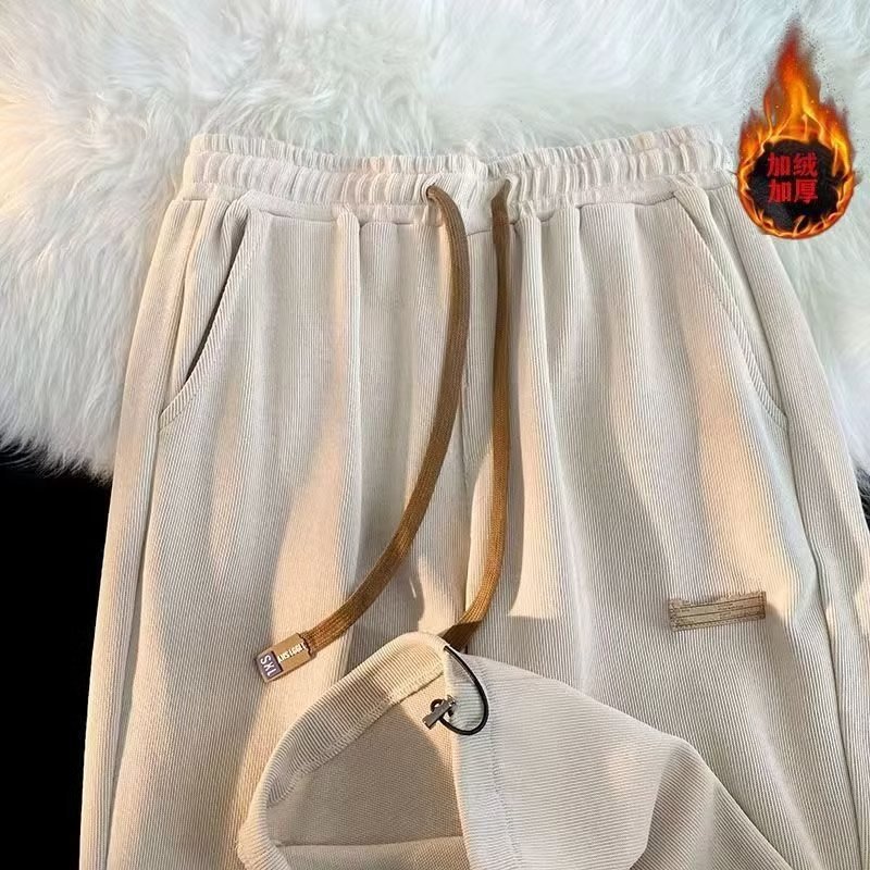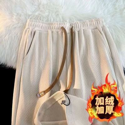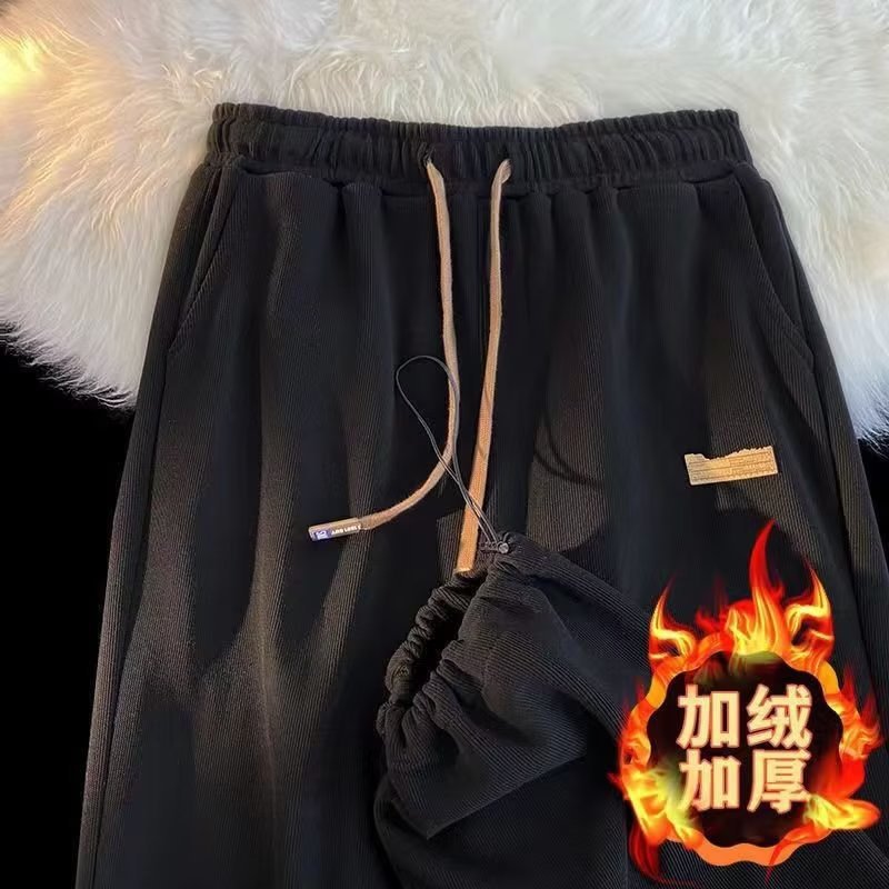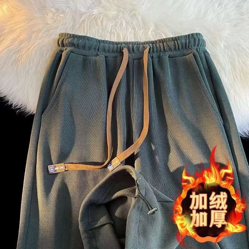 垂坠感加绒裤子男款秋冬季阔腿宽松运动男生潮流卫裤直筒休闲长裤