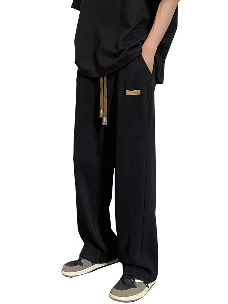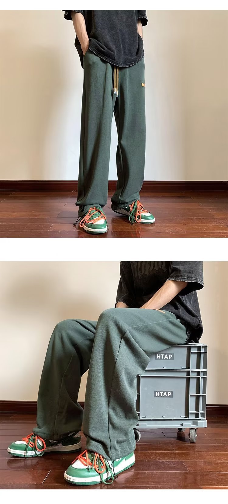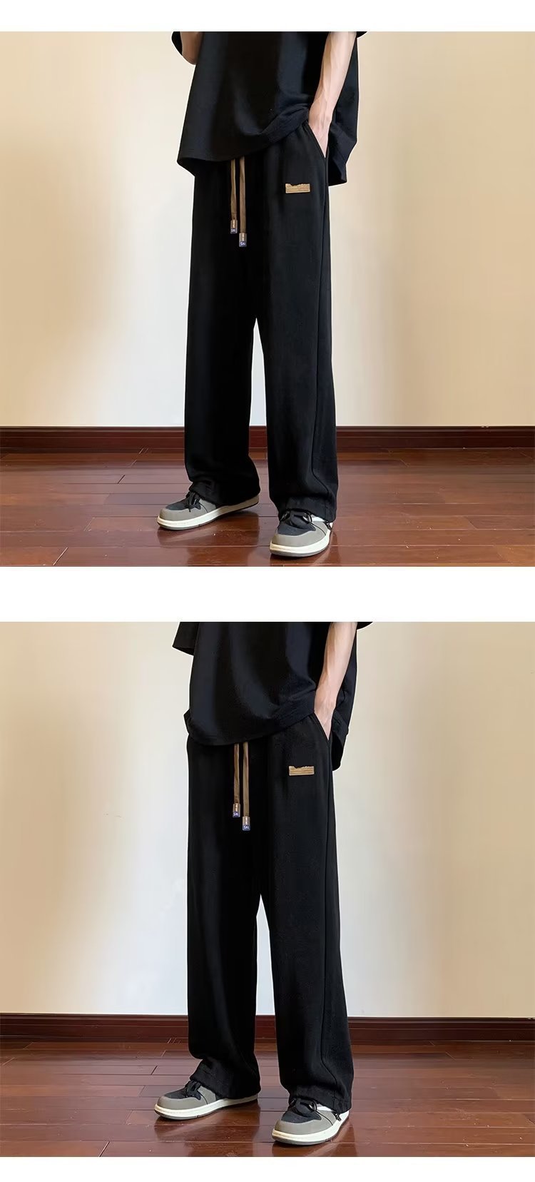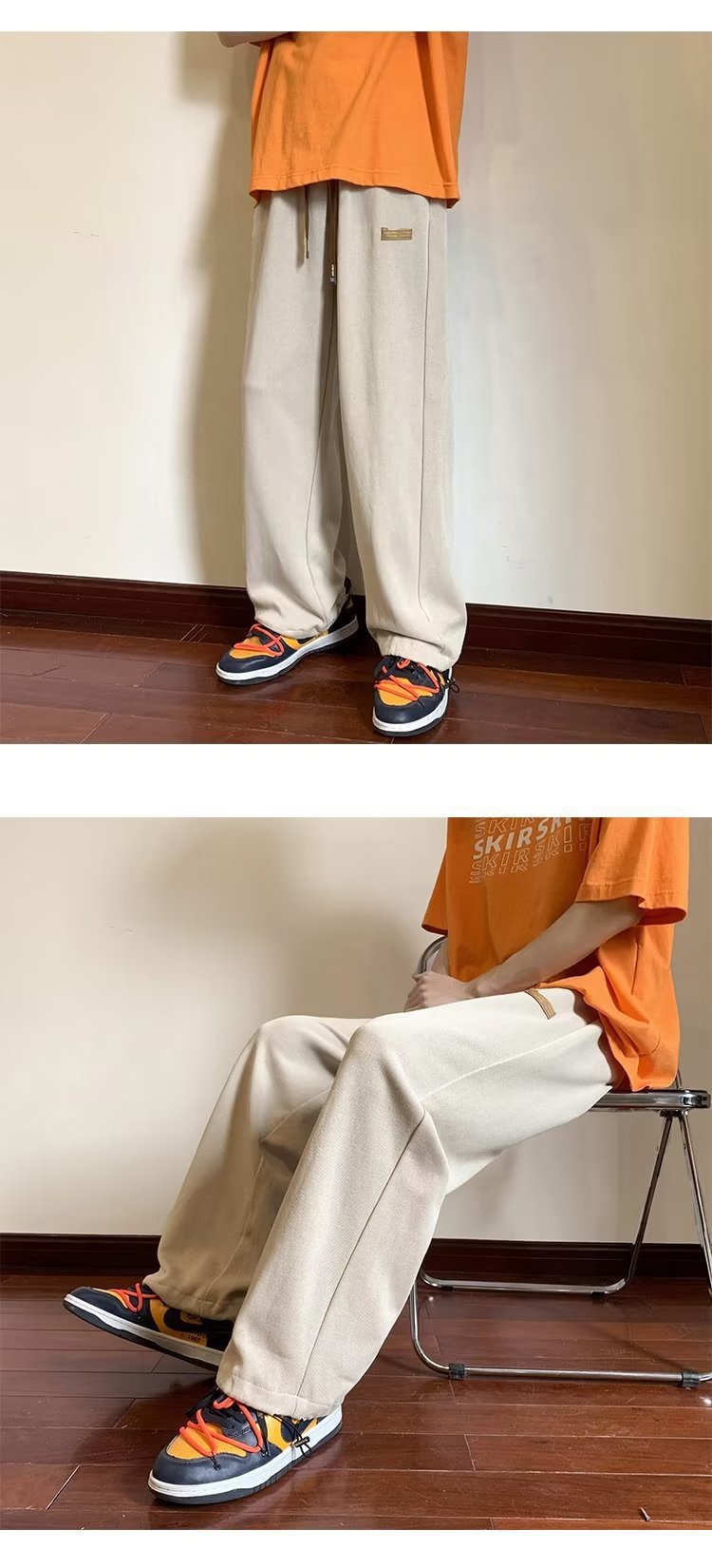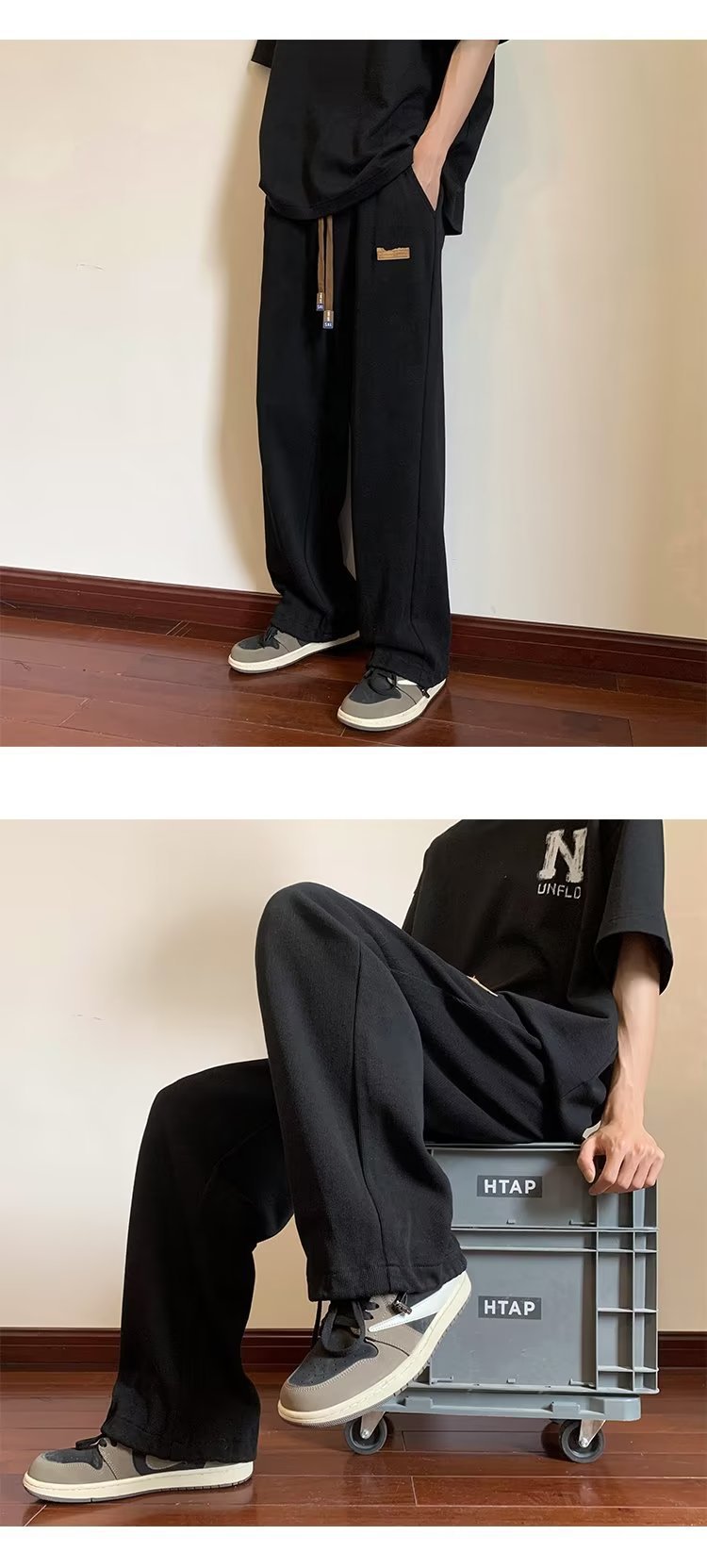 垂坠感加绒裤子男款秋冬季阔腿宽松运动男生潮流卫裤直筒休闲长裤