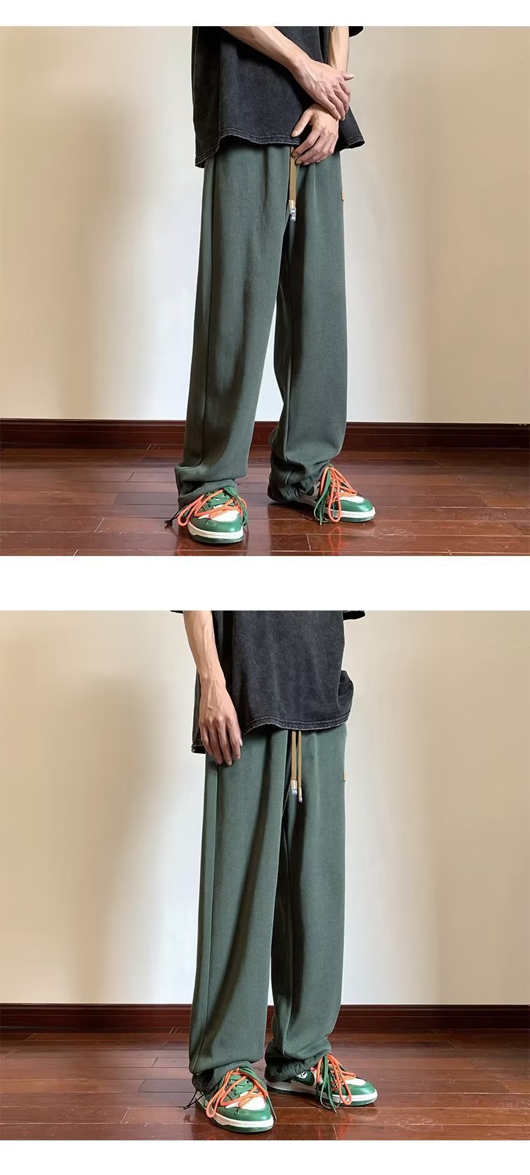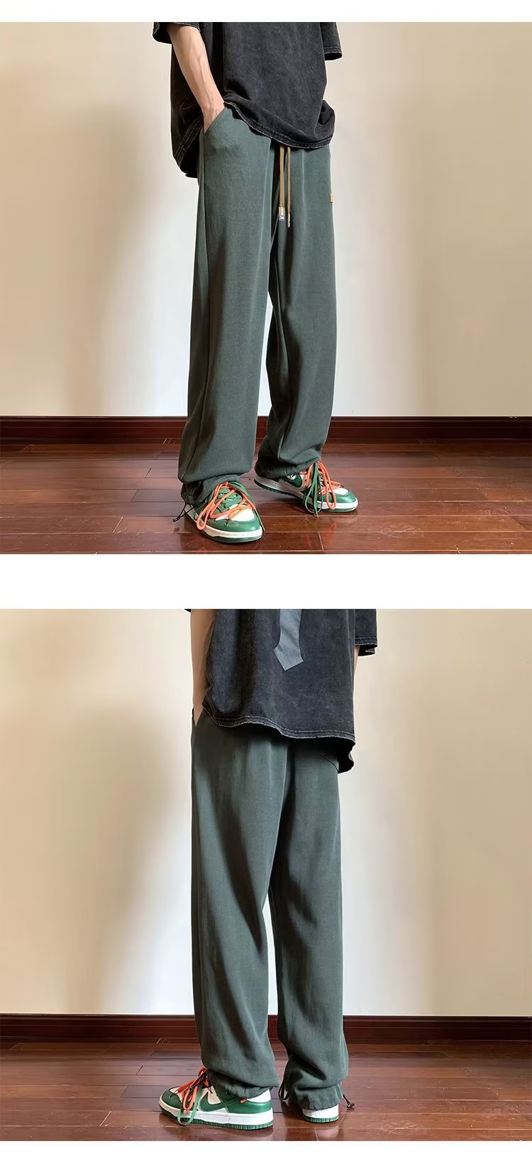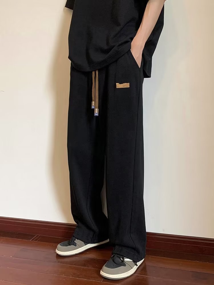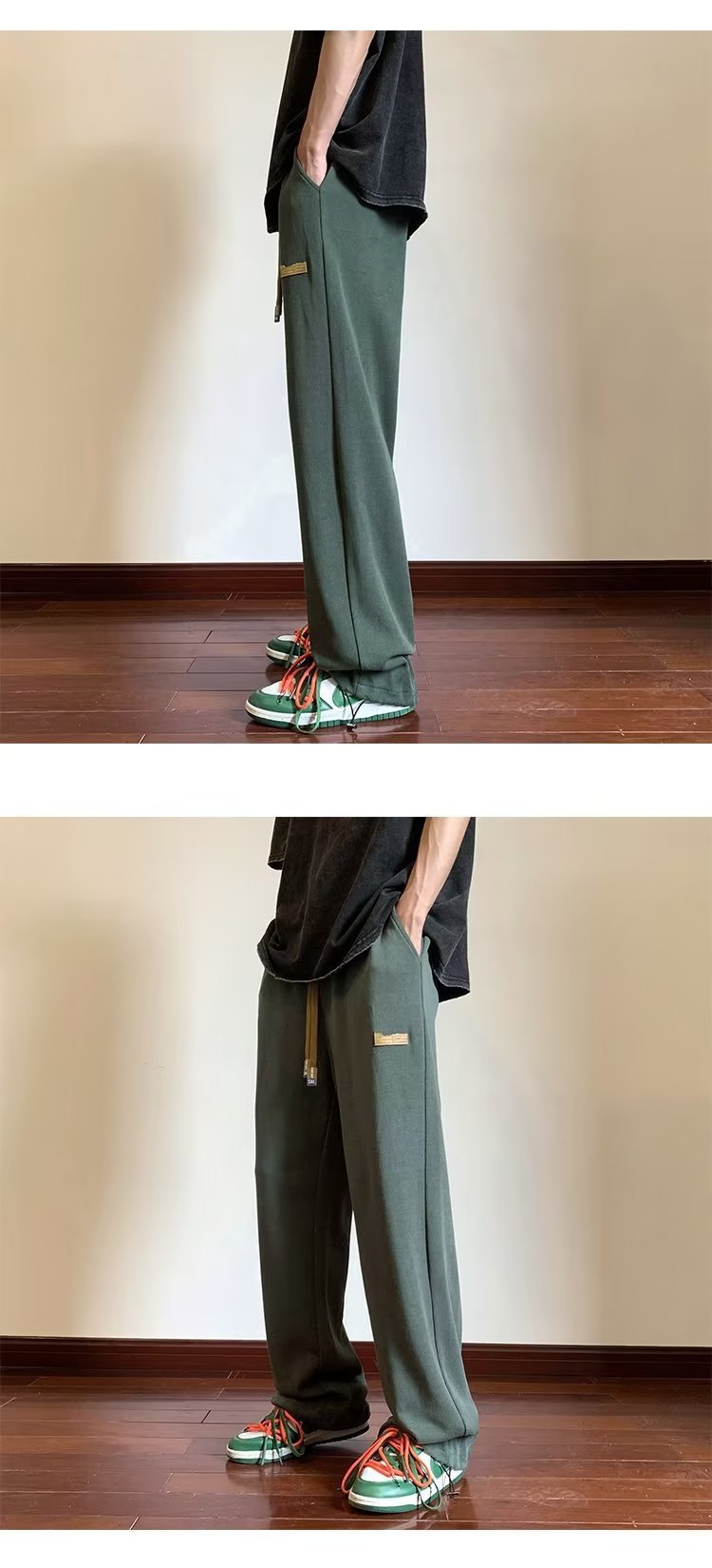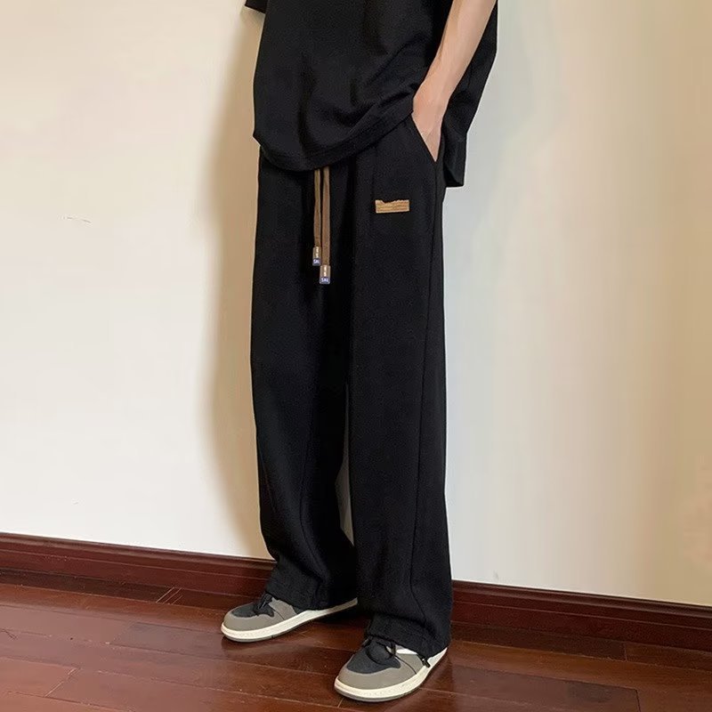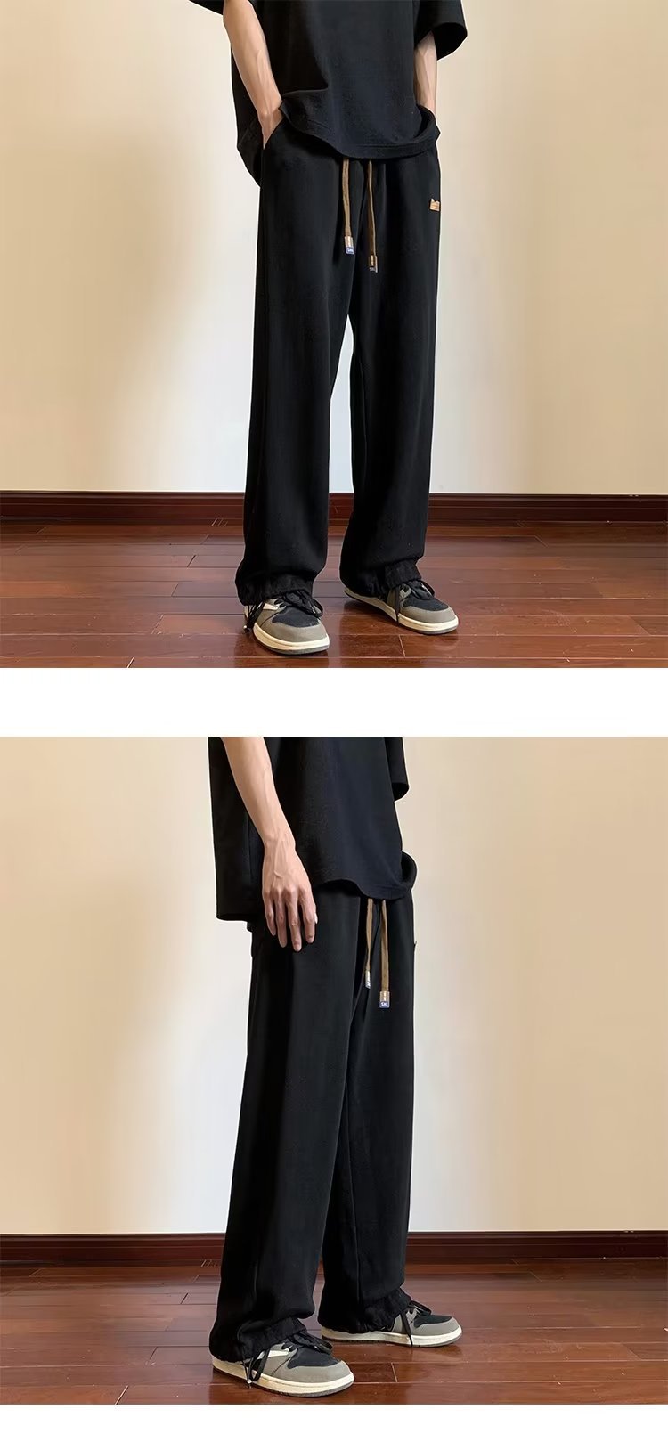 垂坠感加绒裤子男款秋冬季阔腿宽松运动男生潮流卫裤直筒休闲长裤