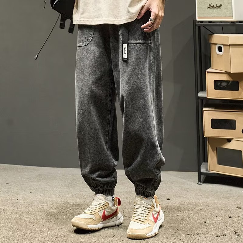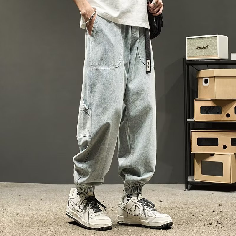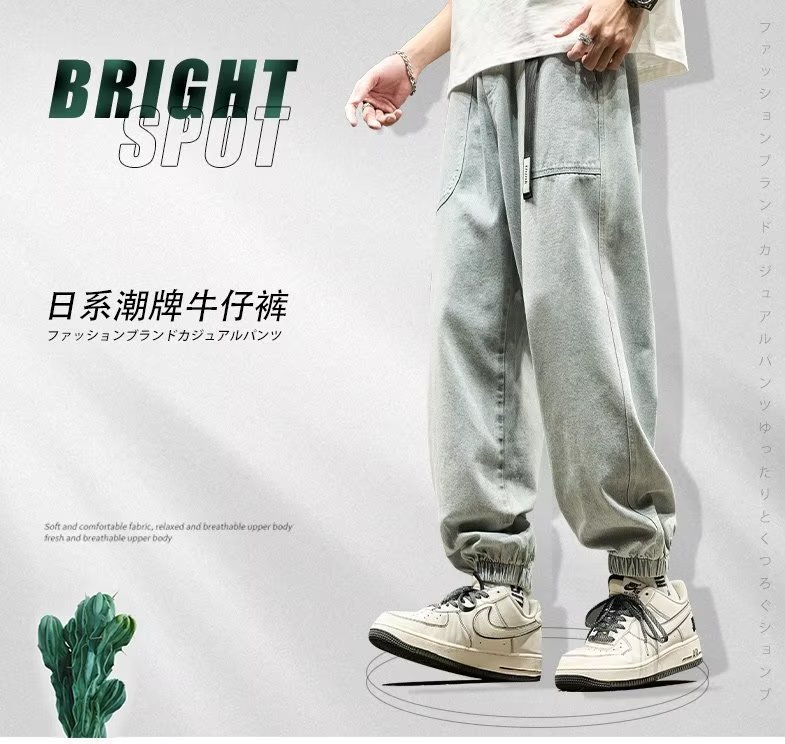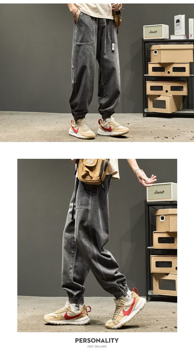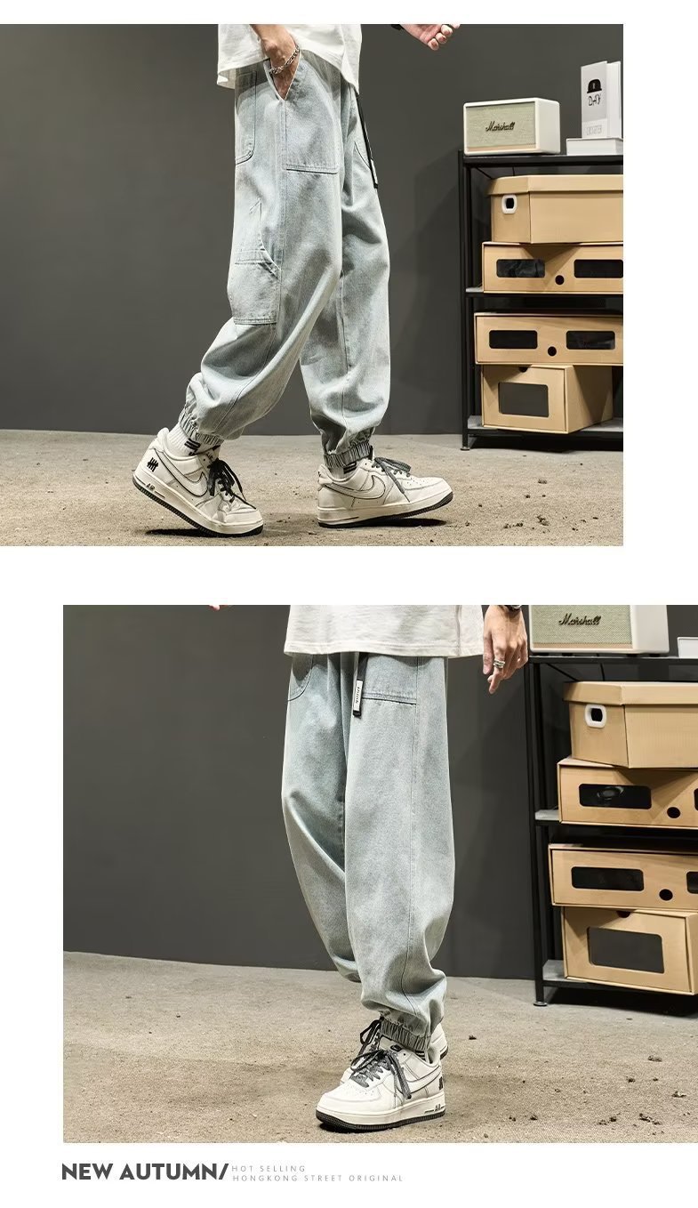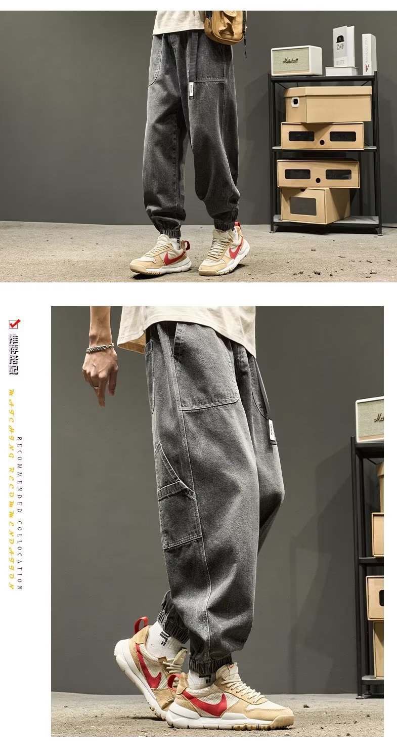 干活穿的裤子耐磨耐脏长裤春秋季男士宽松大码束脚工装休闲牛仔裤