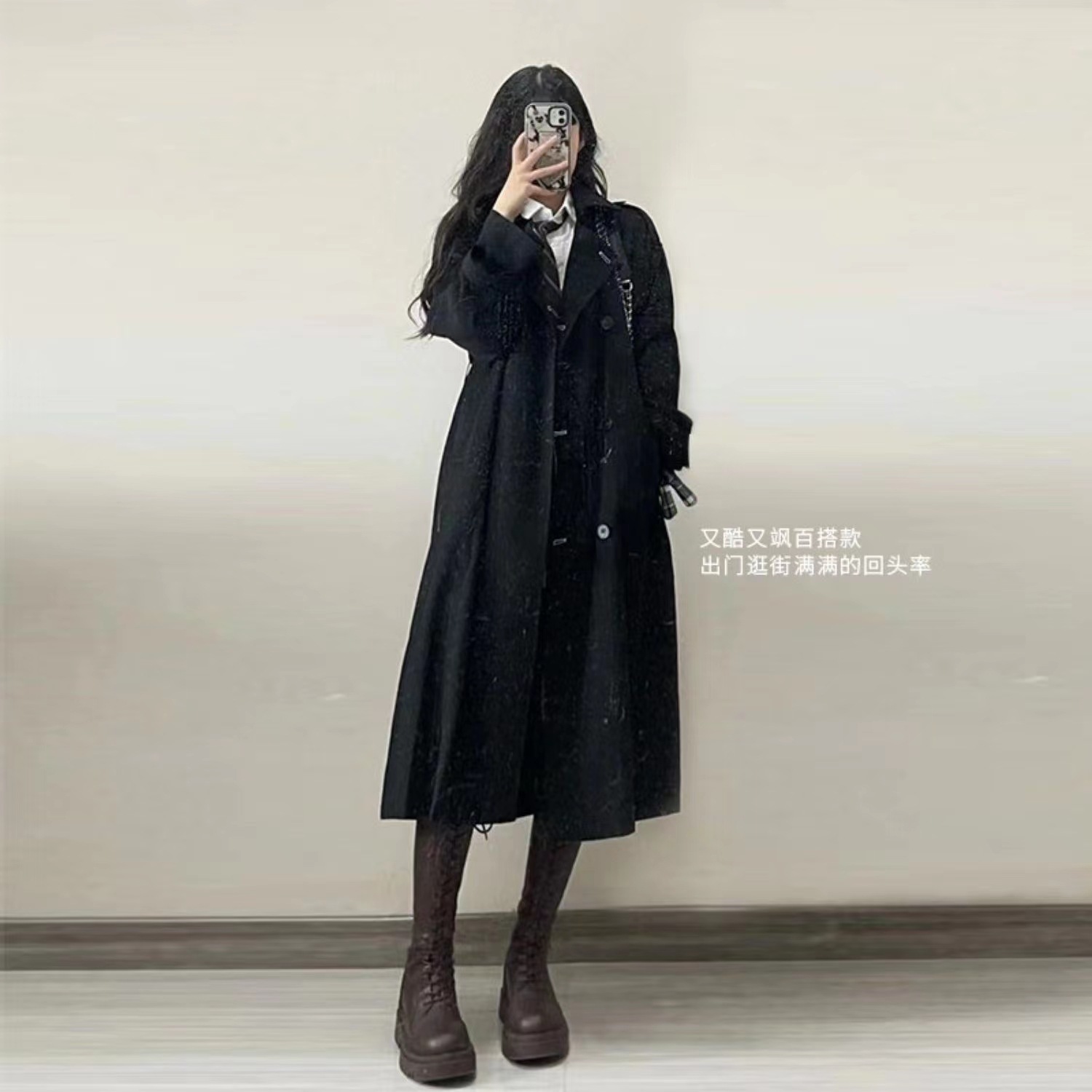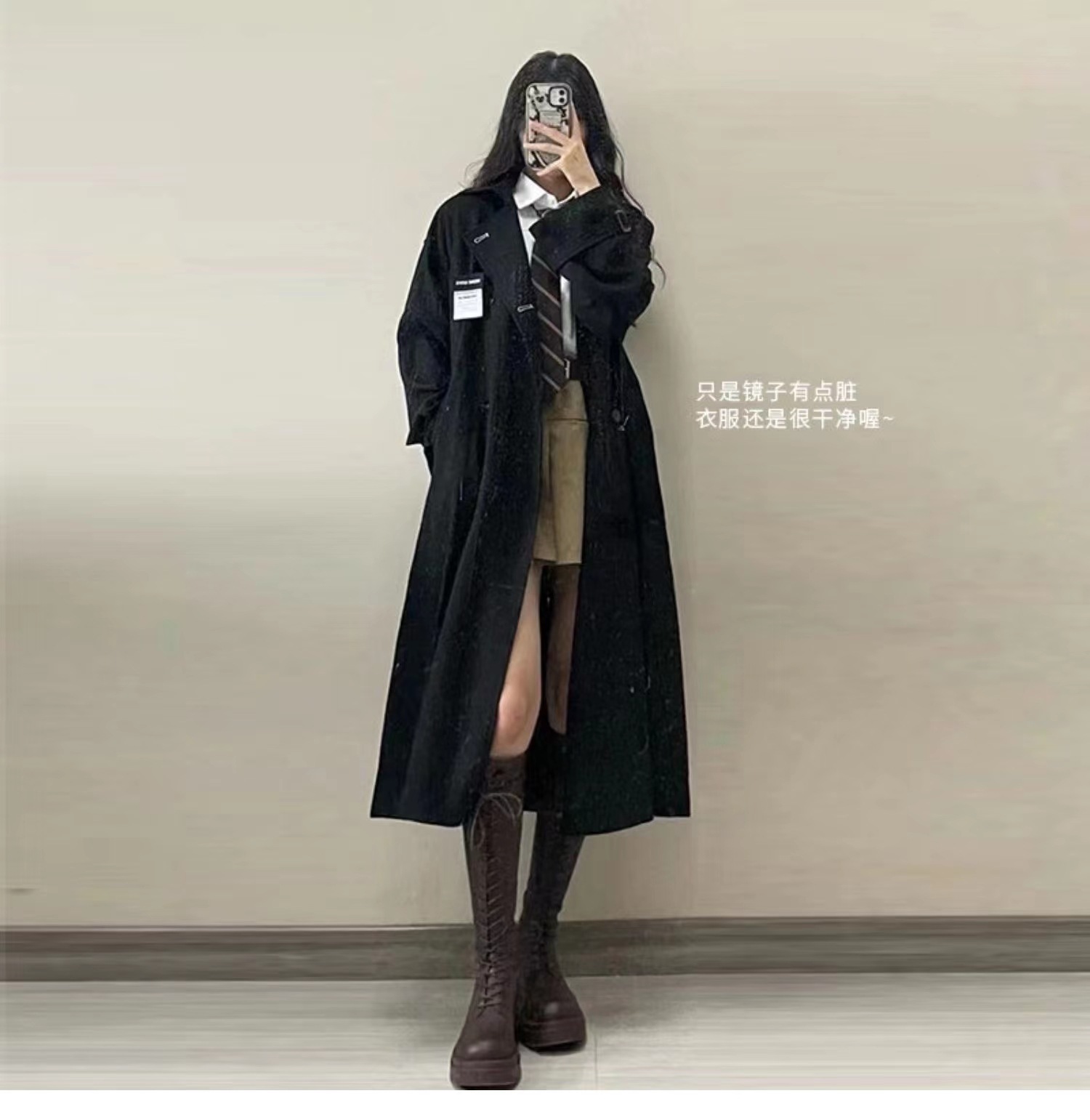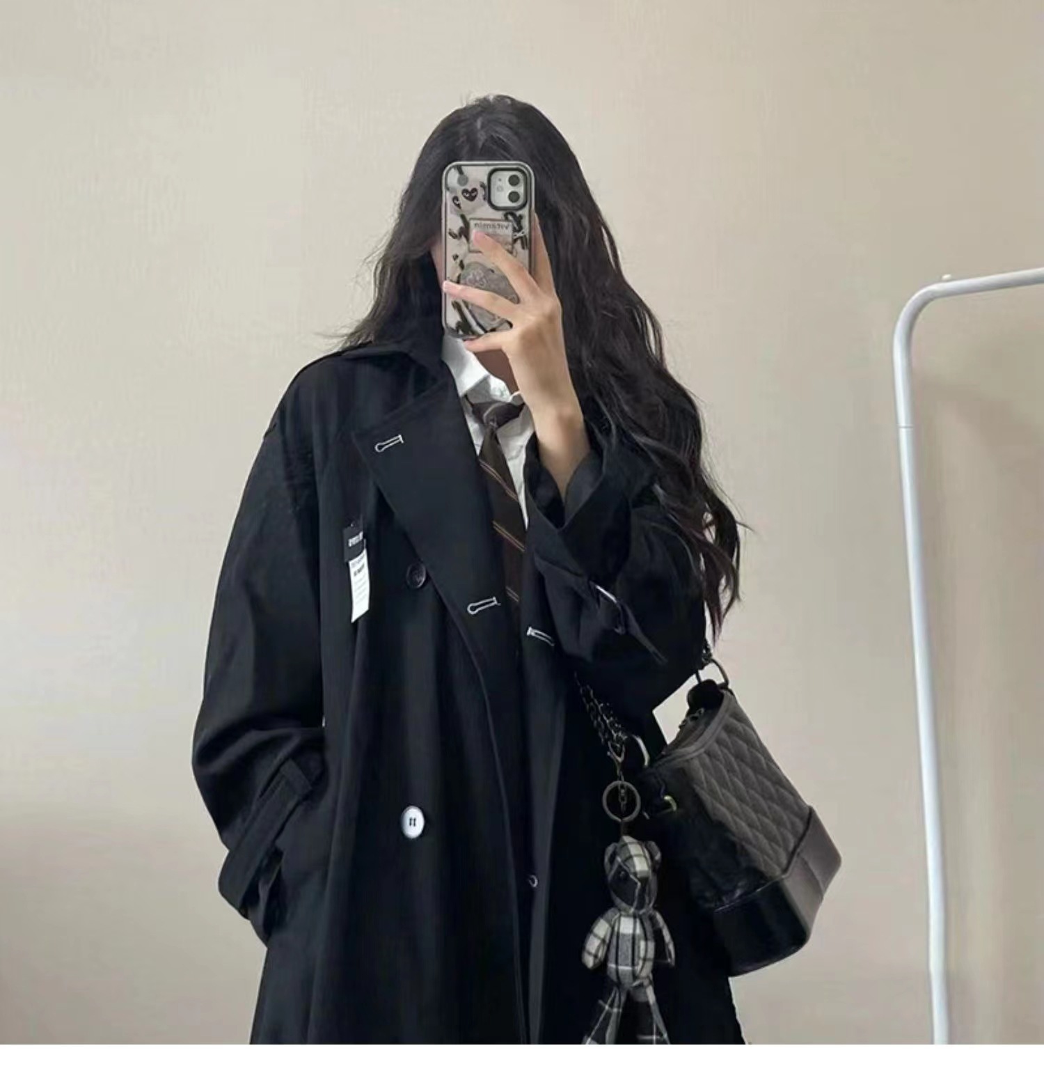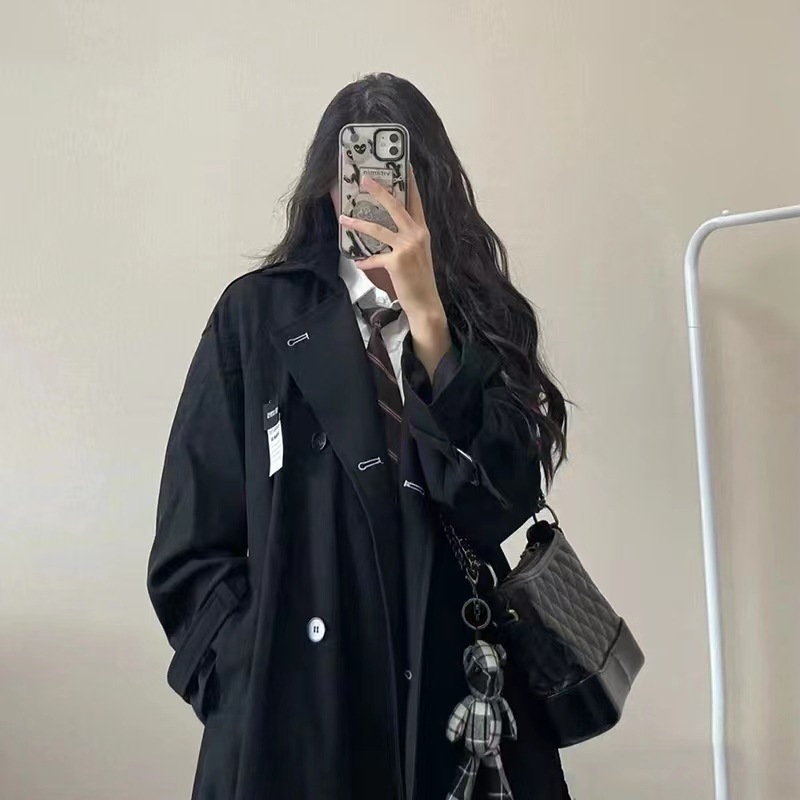 高级感黑色风衣女中长款2023年早春秋新款小个子chic春款大衣外套