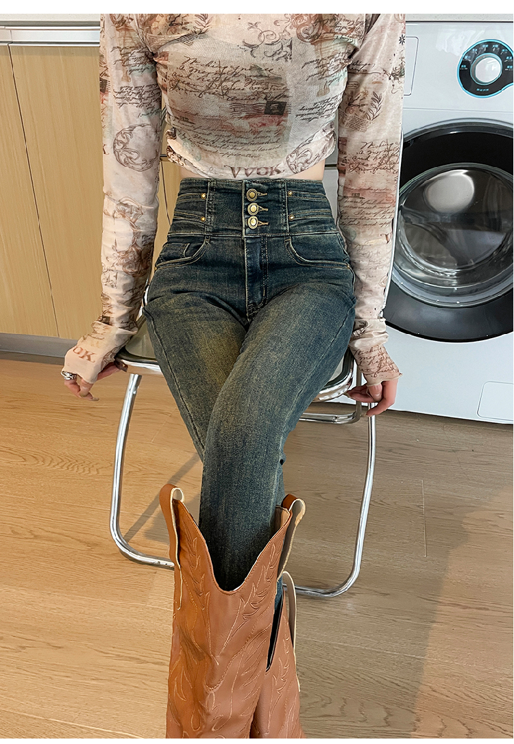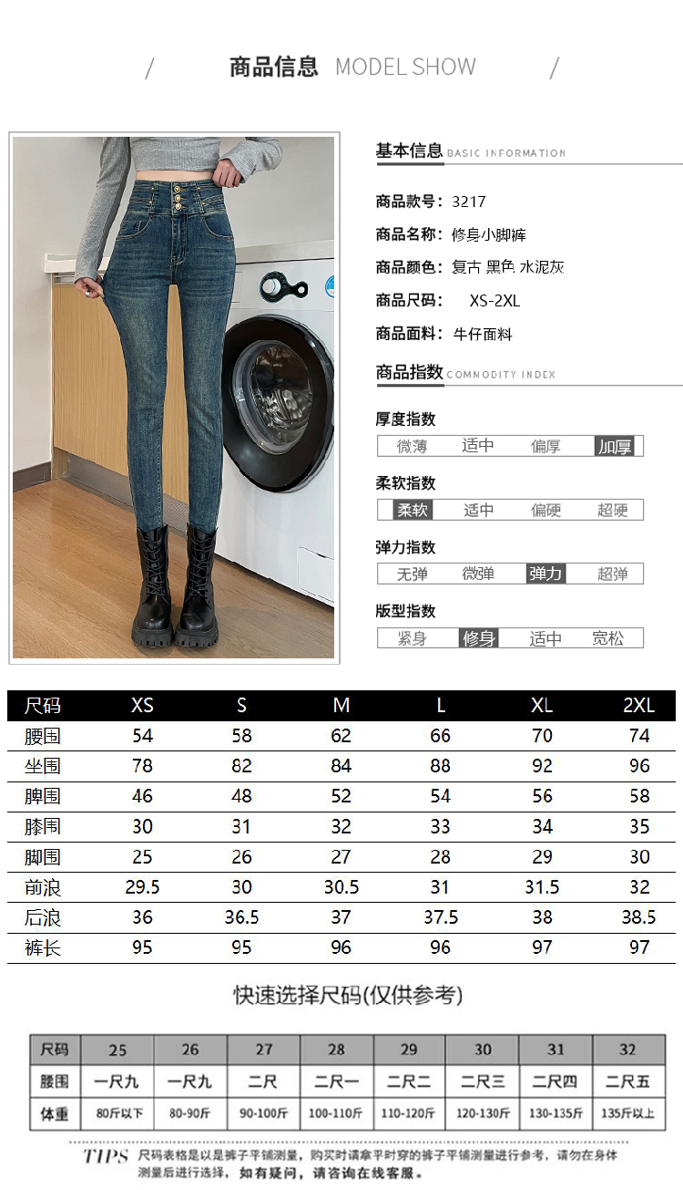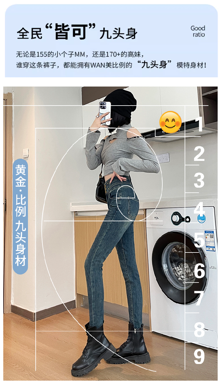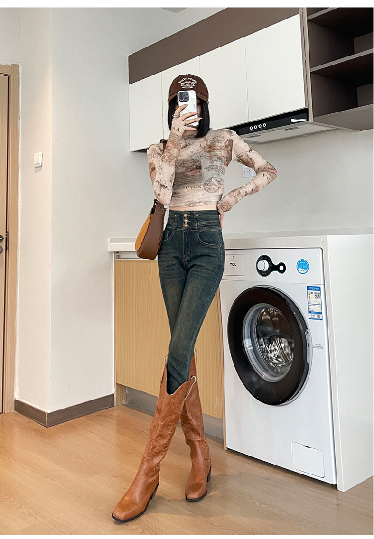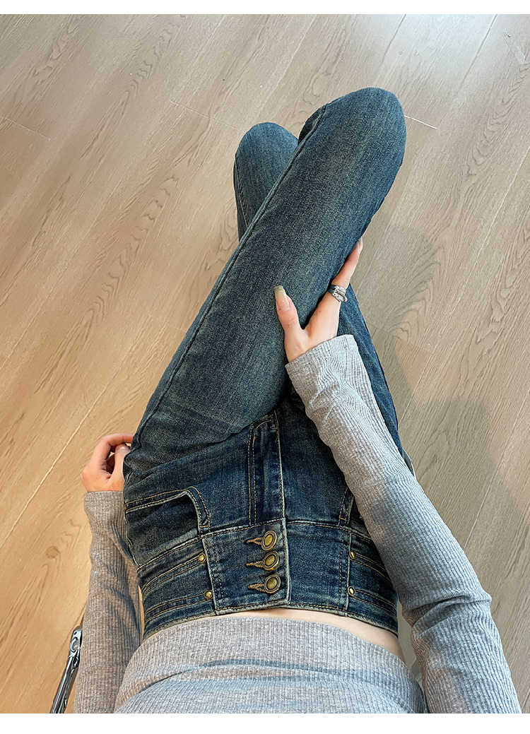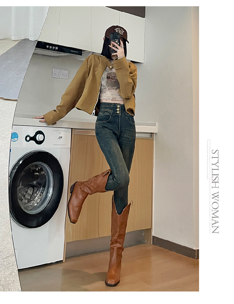 水泥灰加绒加厚小脚牛仔裤女秋冬设计感紧身显瘦弹力高腰铅笔裤子