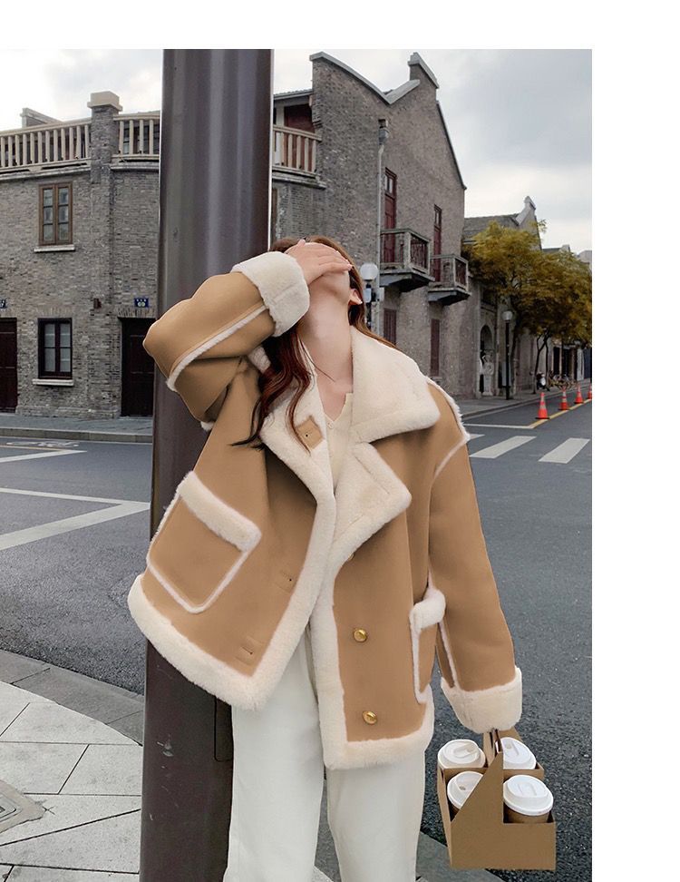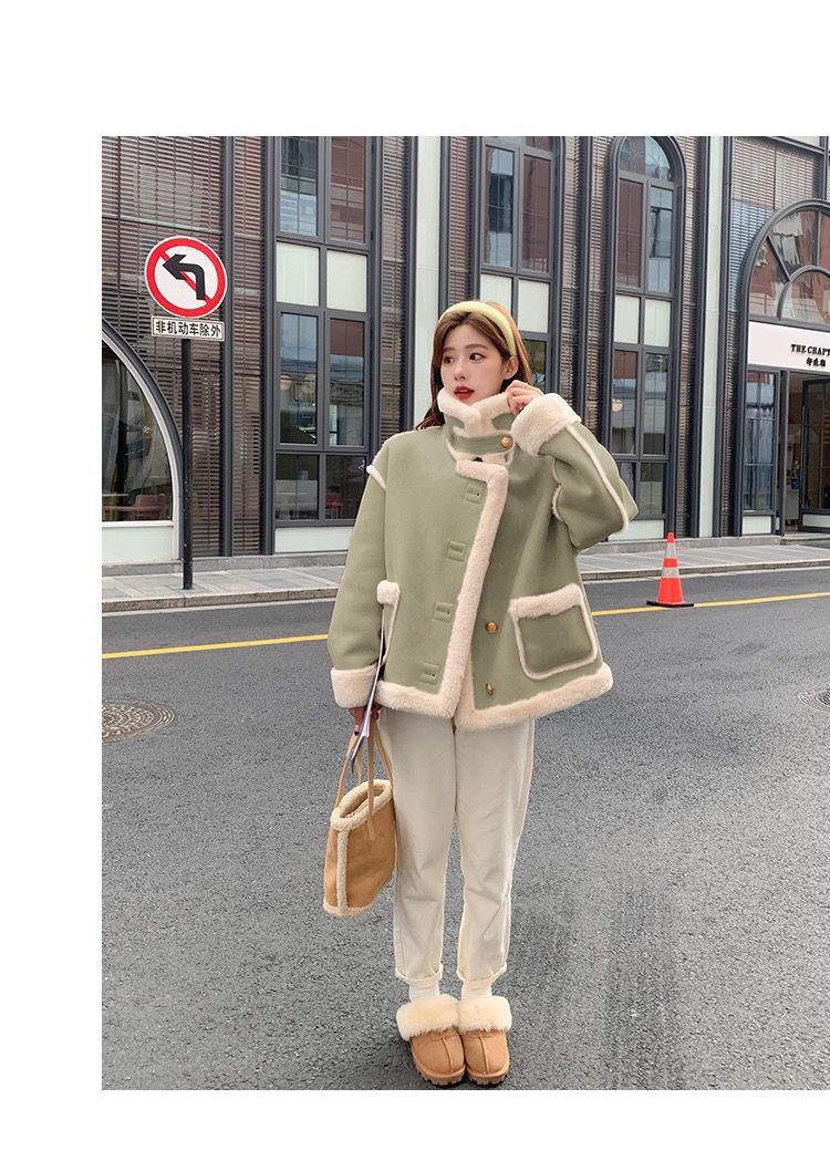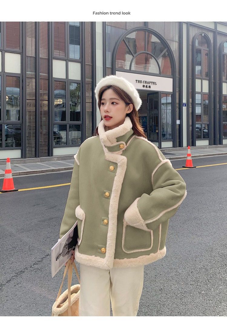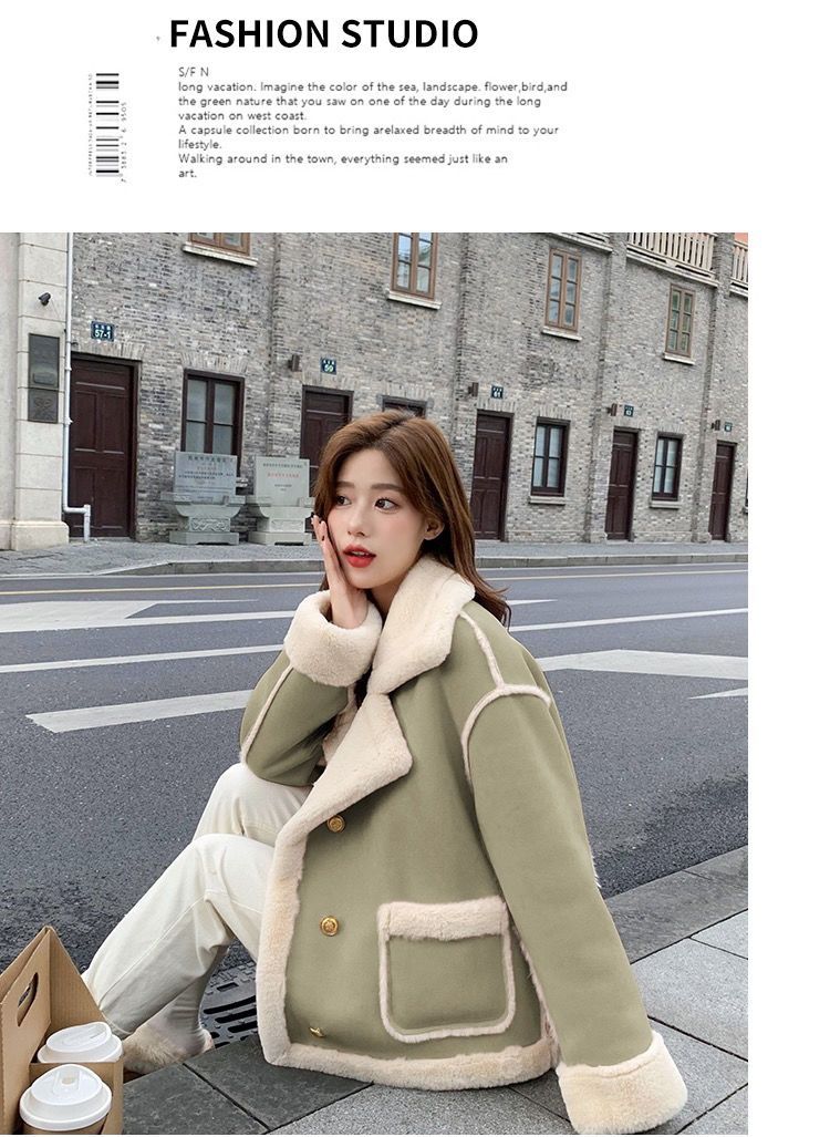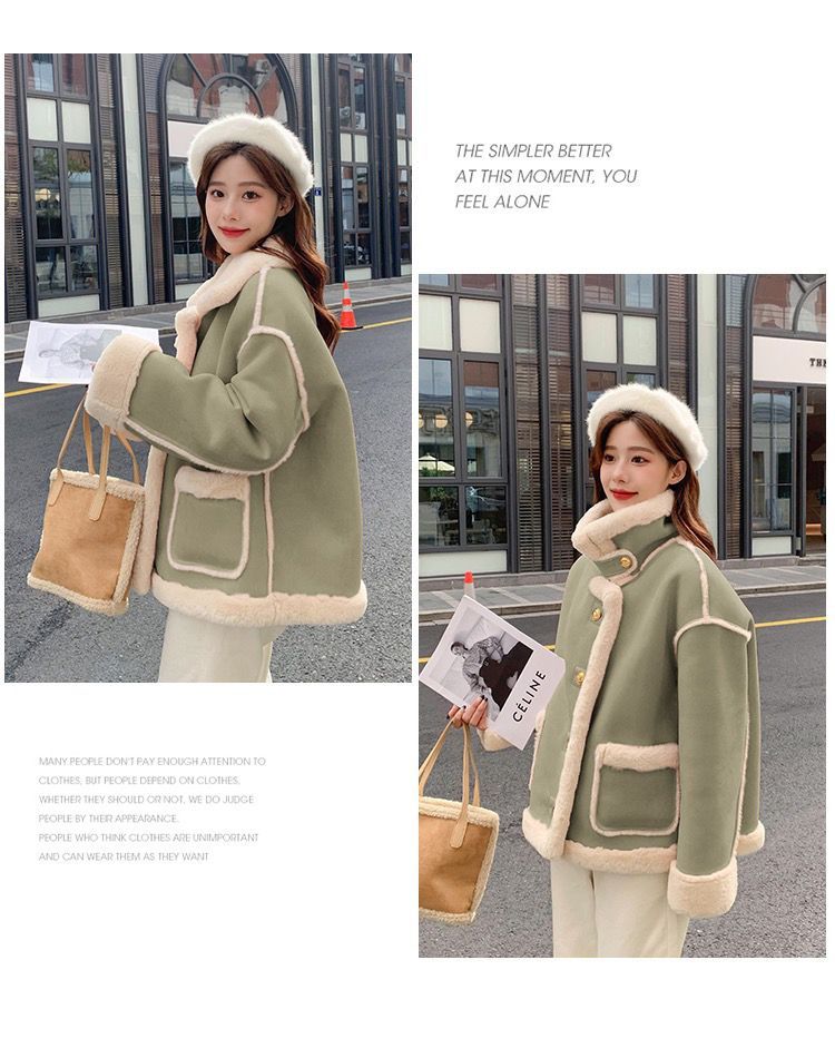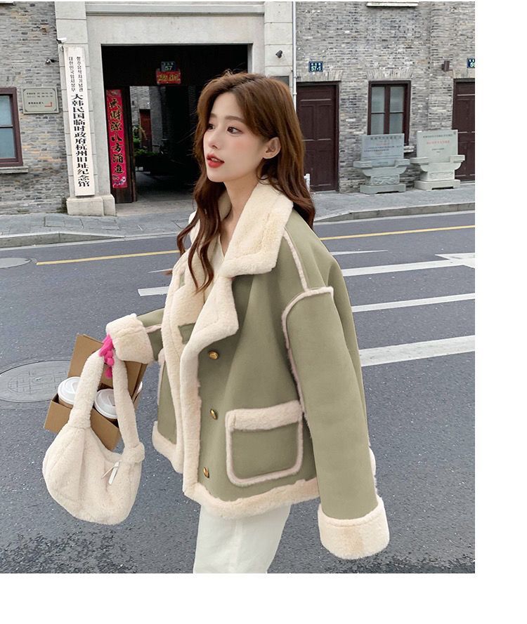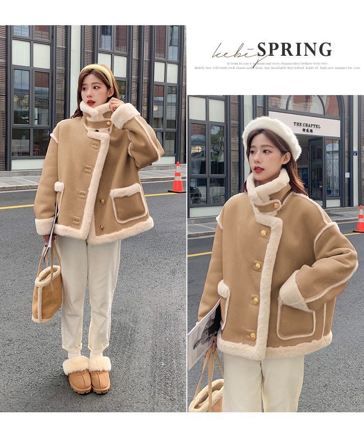 粉色皮毛一体羊羔毛外套女2024冬季新款加绒厚小香风机车服鹿皮绒