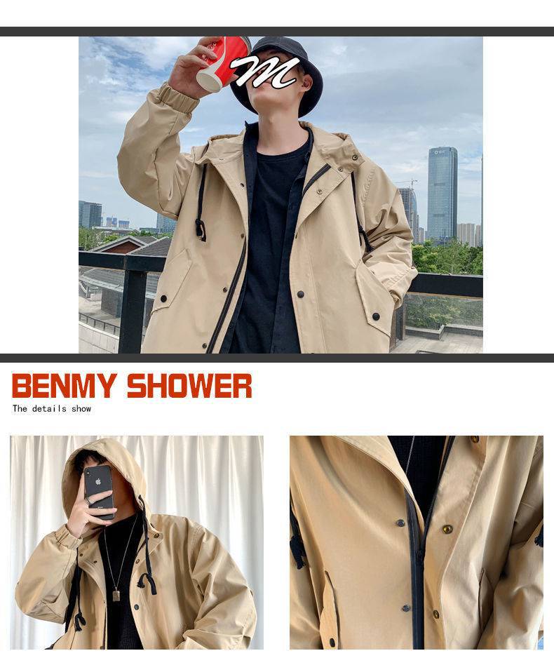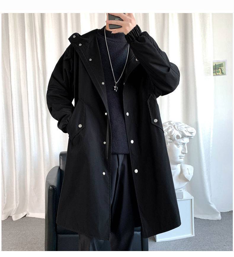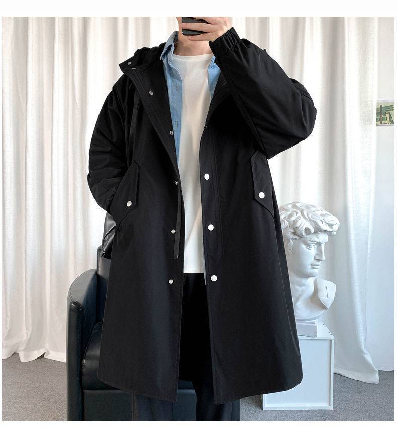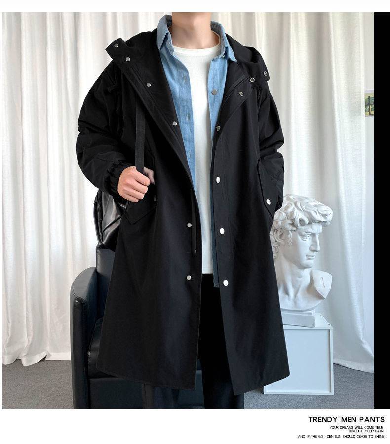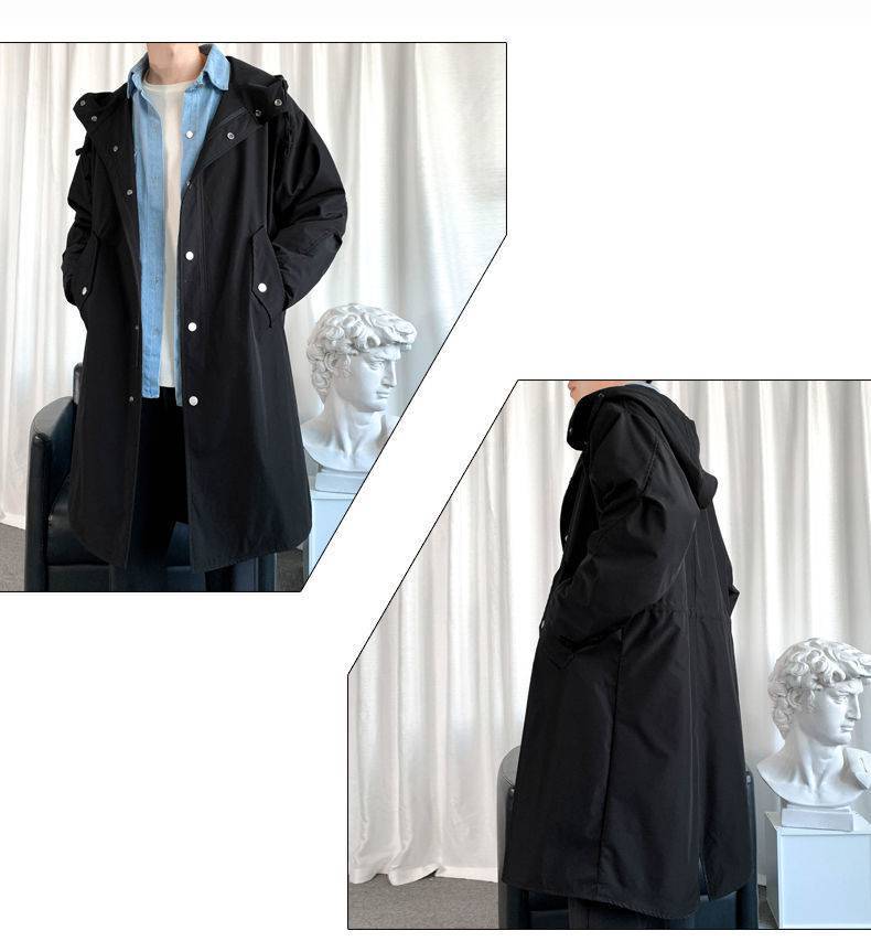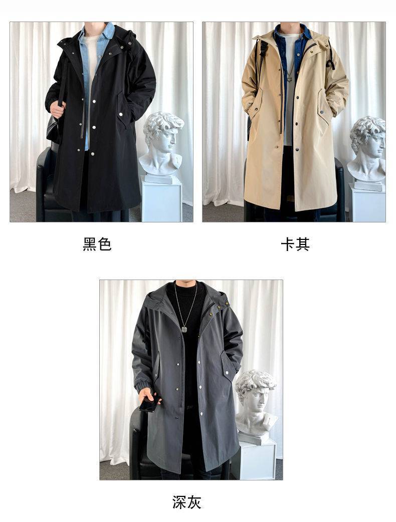 风衣男中长款秋季长款过膝连帽大衣春秋款韩版宽松男士披风外套潮