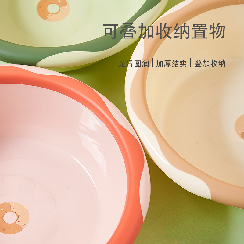 新款甜甜圈双色脸盆塑料盆家用大号盆子学生盆儿童婴儿洗脸盆