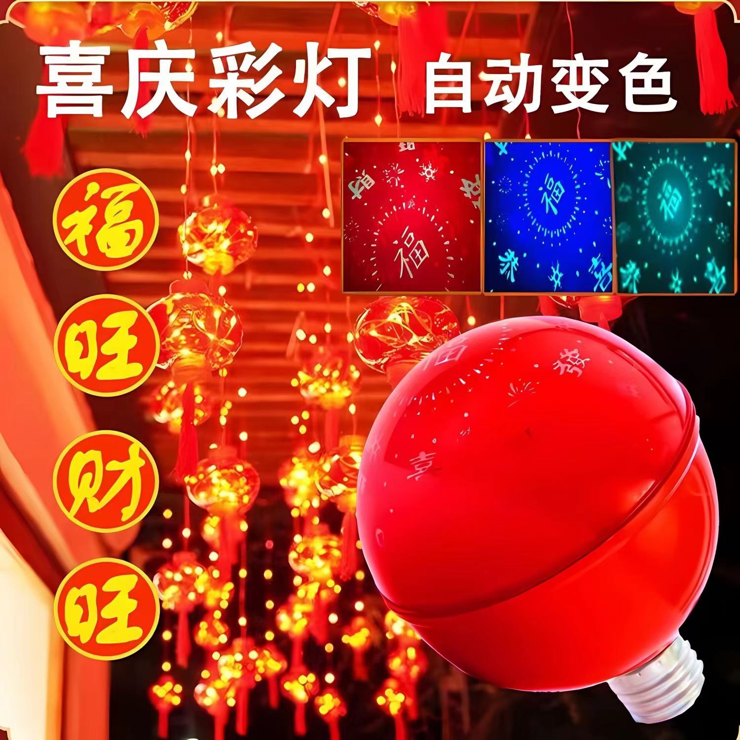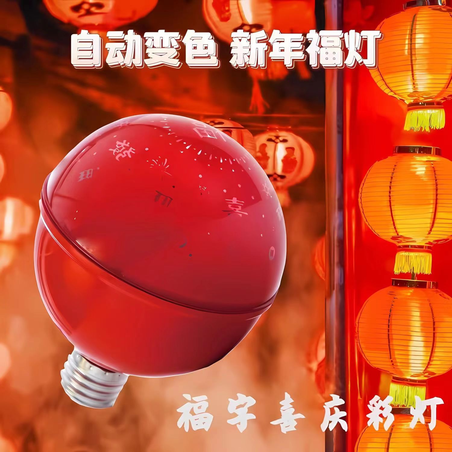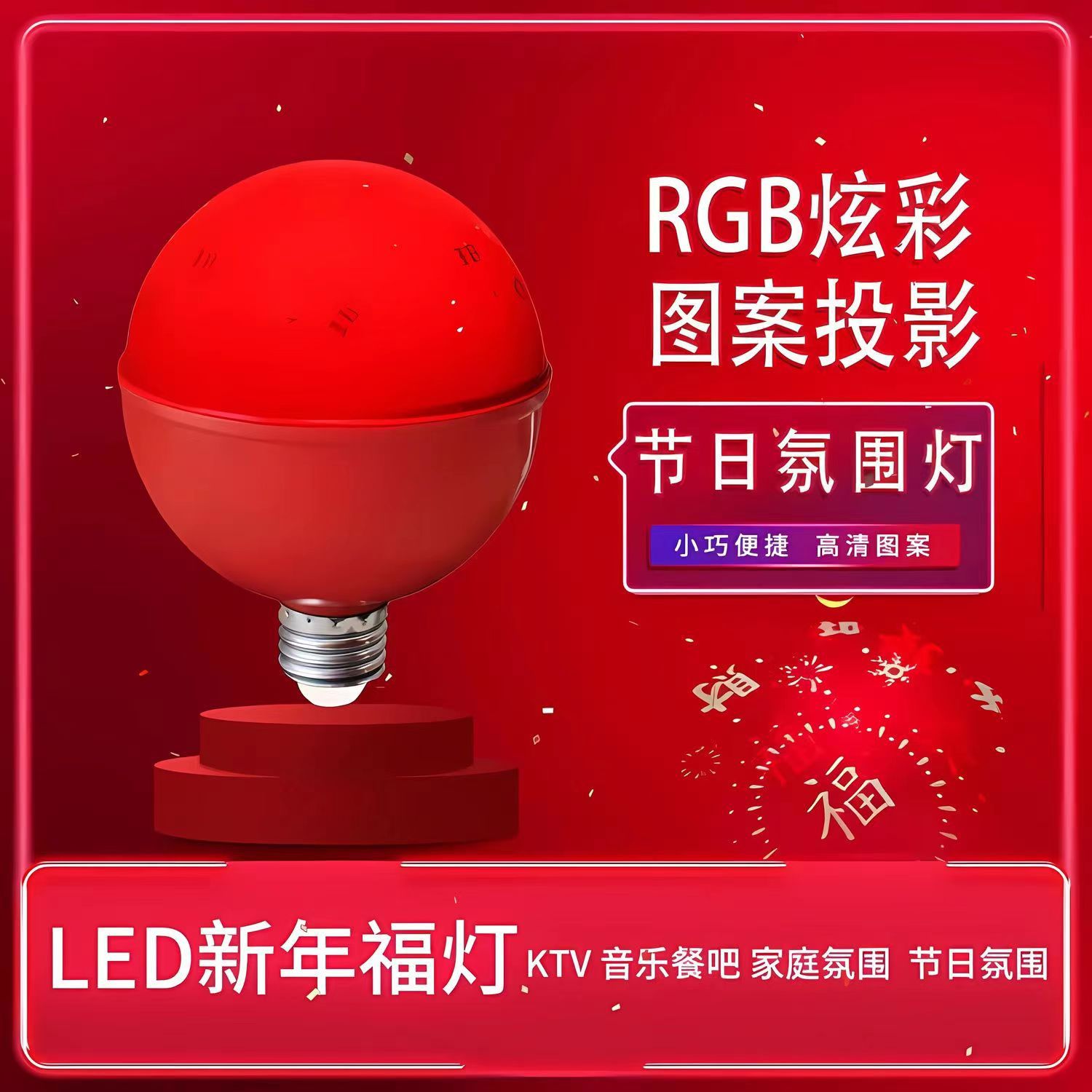网红款新年福字投影灯福字喜庆彩灯RGB自动变色福字灯