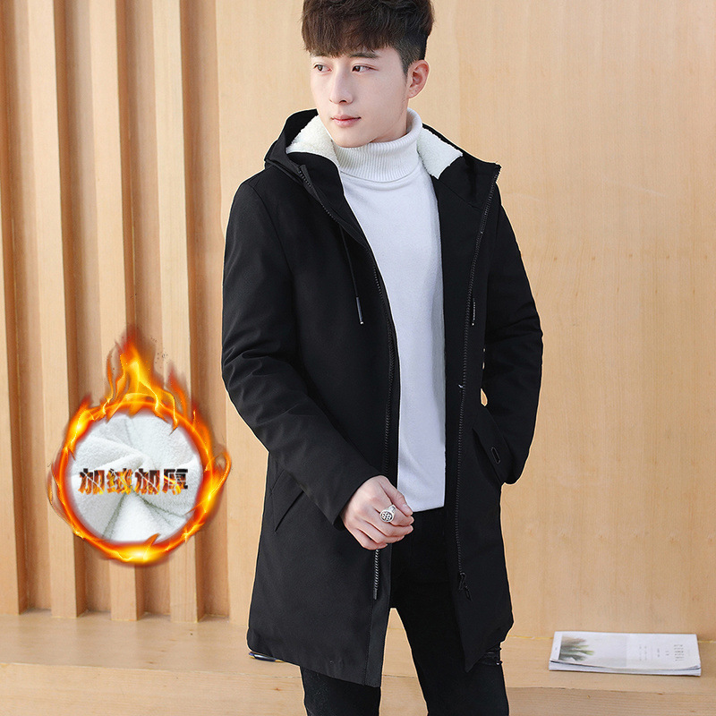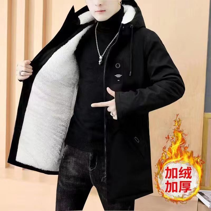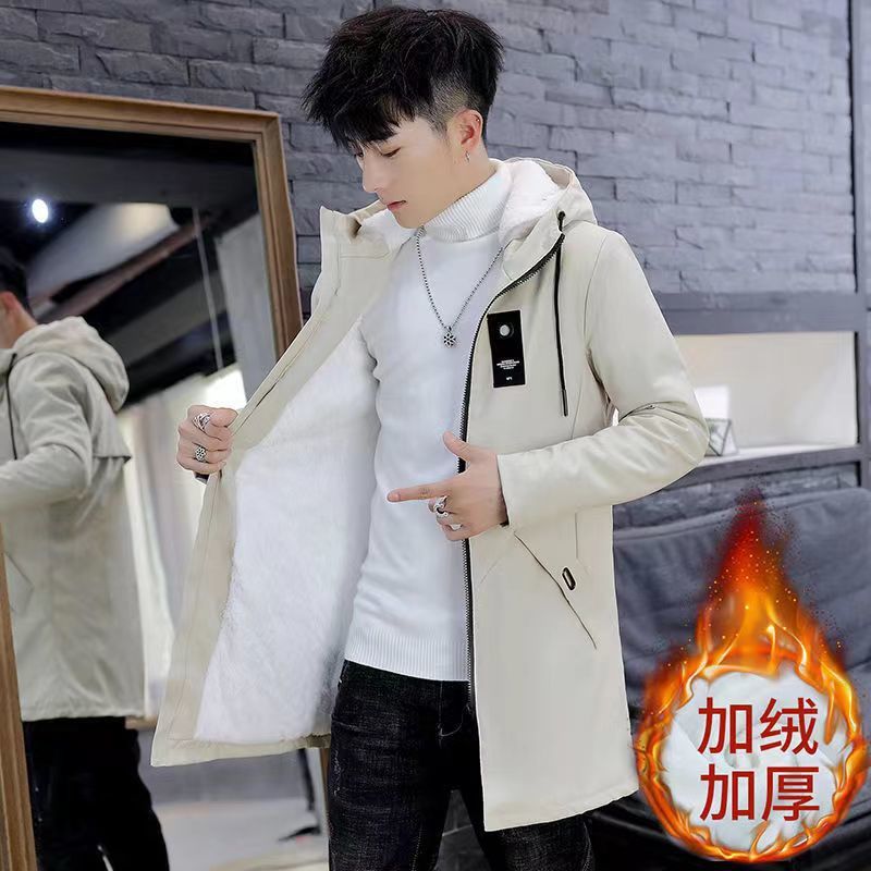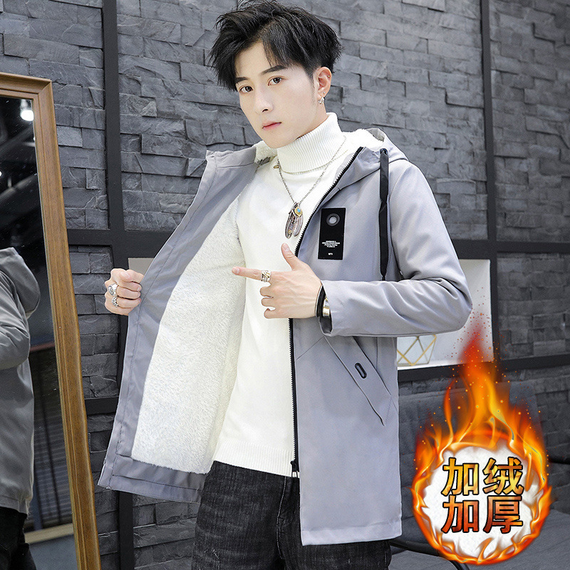 加绒加厚外套男秋冬款男士风衣中长款休闲韩版百搭男棉衣薄厚可选