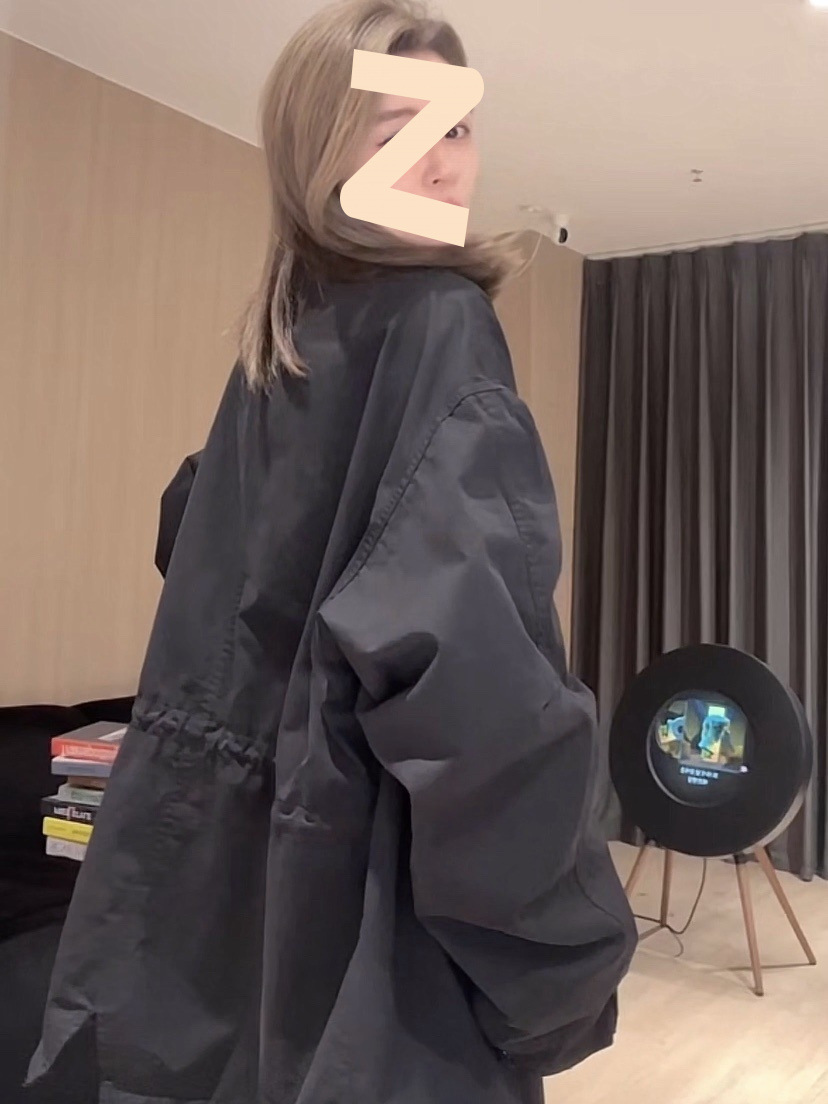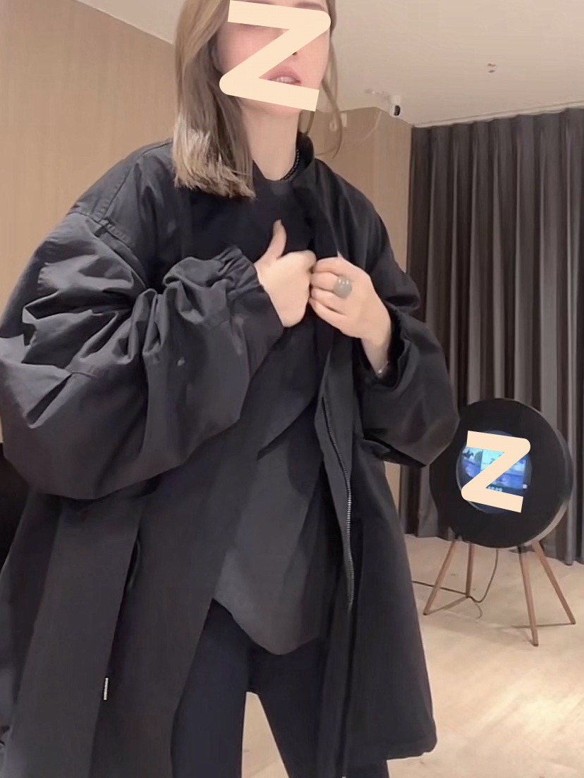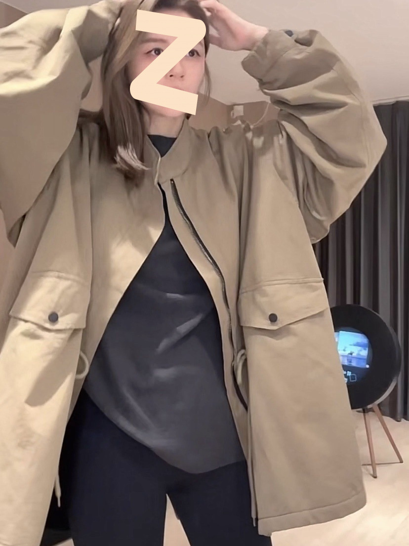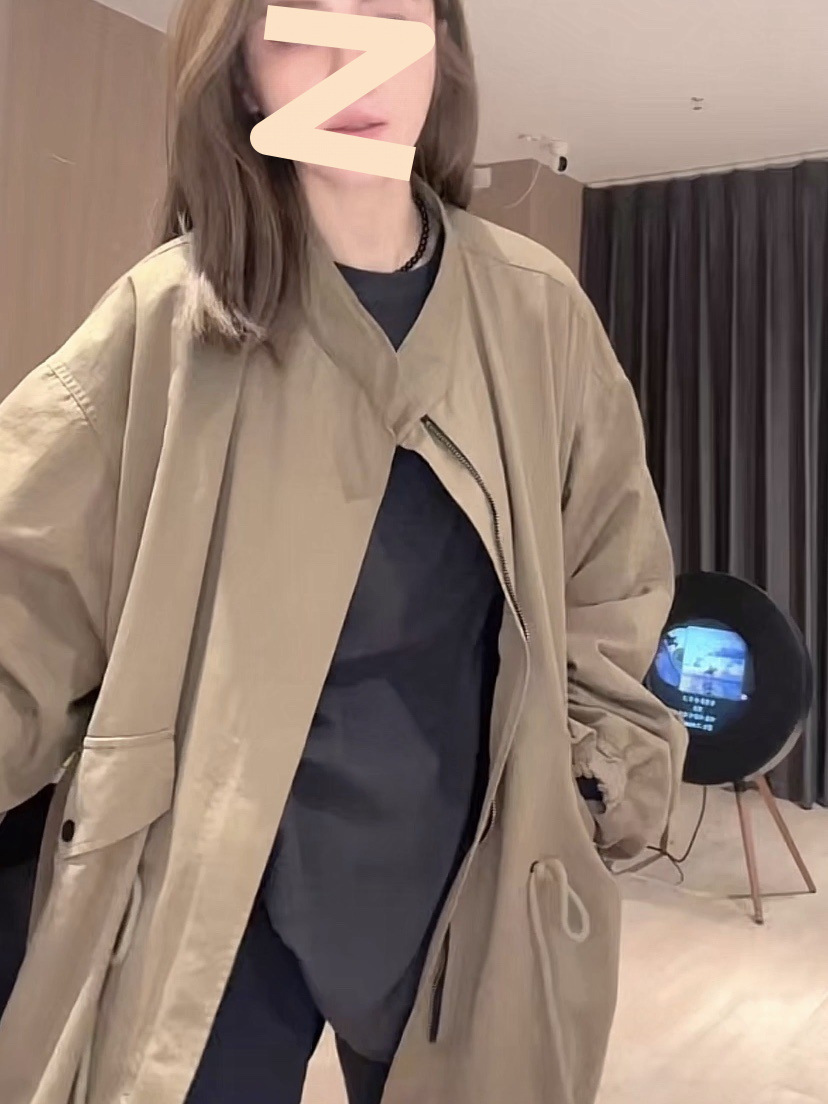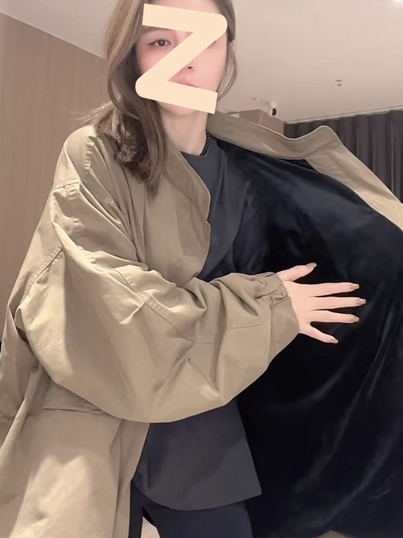 梦坊中长款纯色立领设计感美拉德加绒加厚风衣2024春秋新款遮肉派