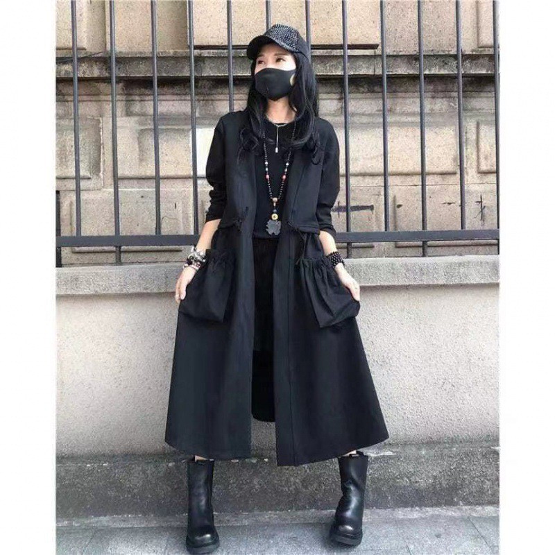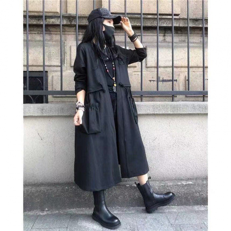 欧货黑色气质时尚风衣女秋季新款欧洲站宽松大码百搭长款外套