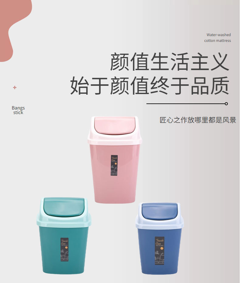 创意时尚带盖客厅垃圾桶新款厂家批发北欧风家用厕所摇盖式垃圾桶
