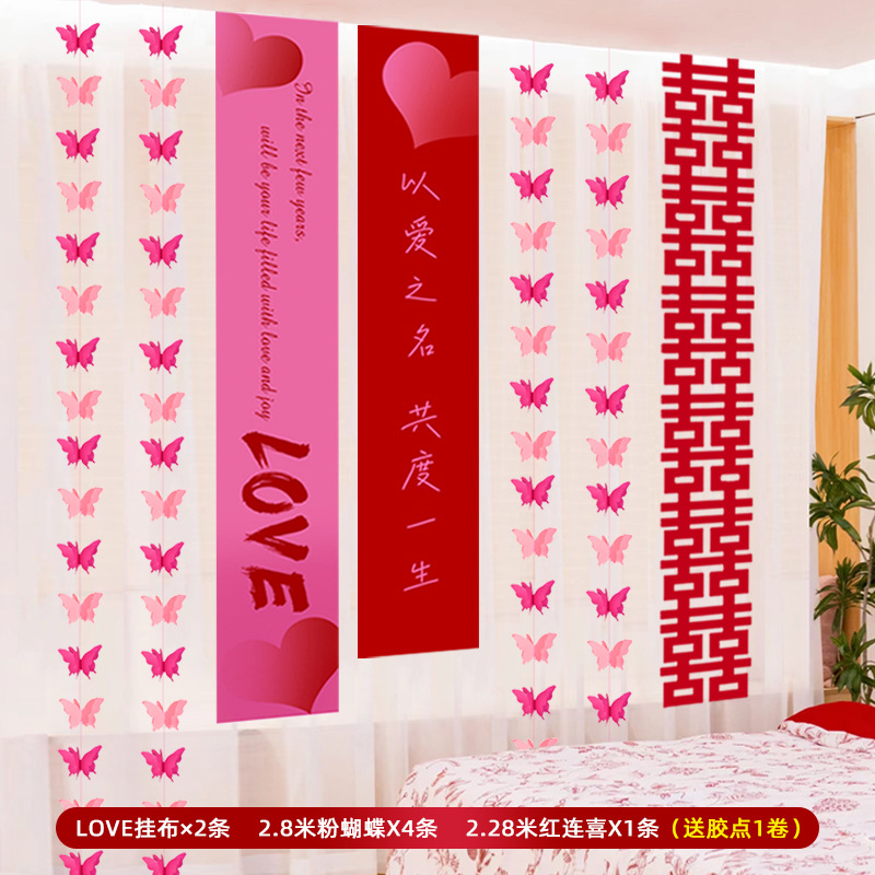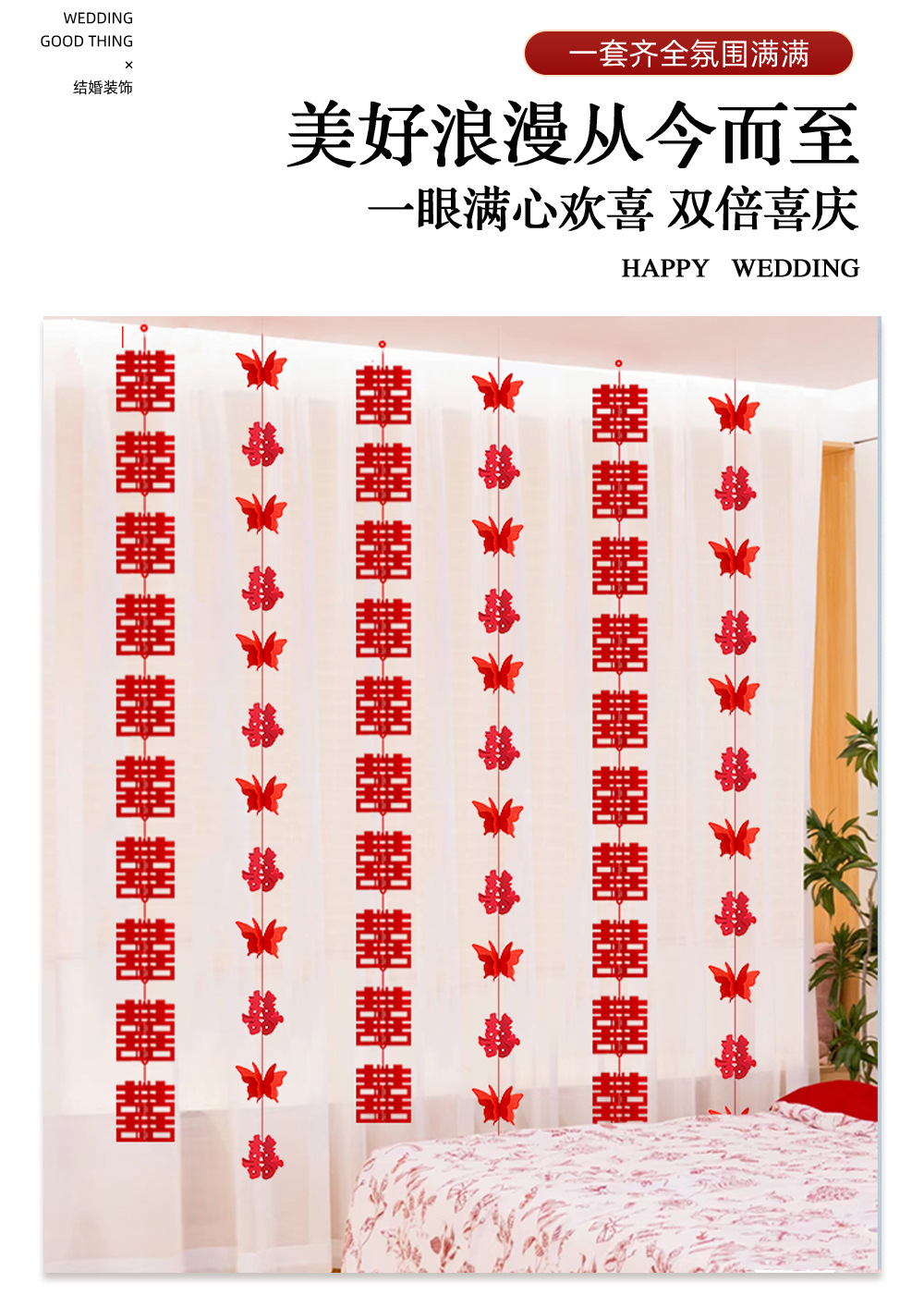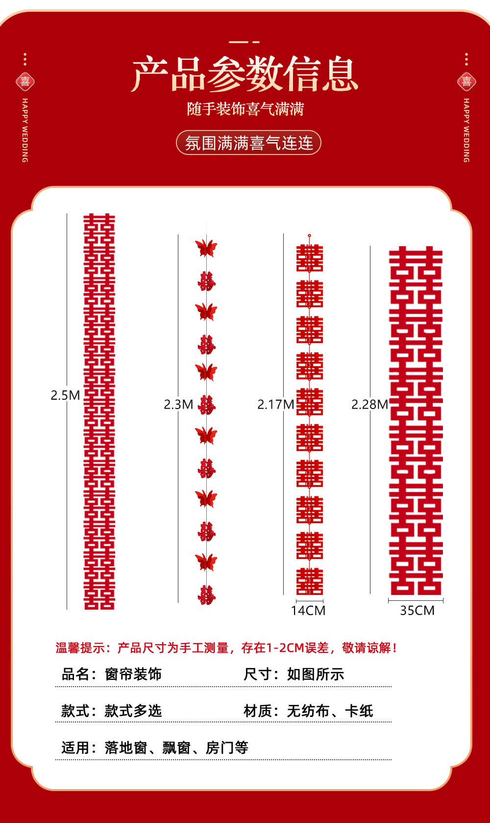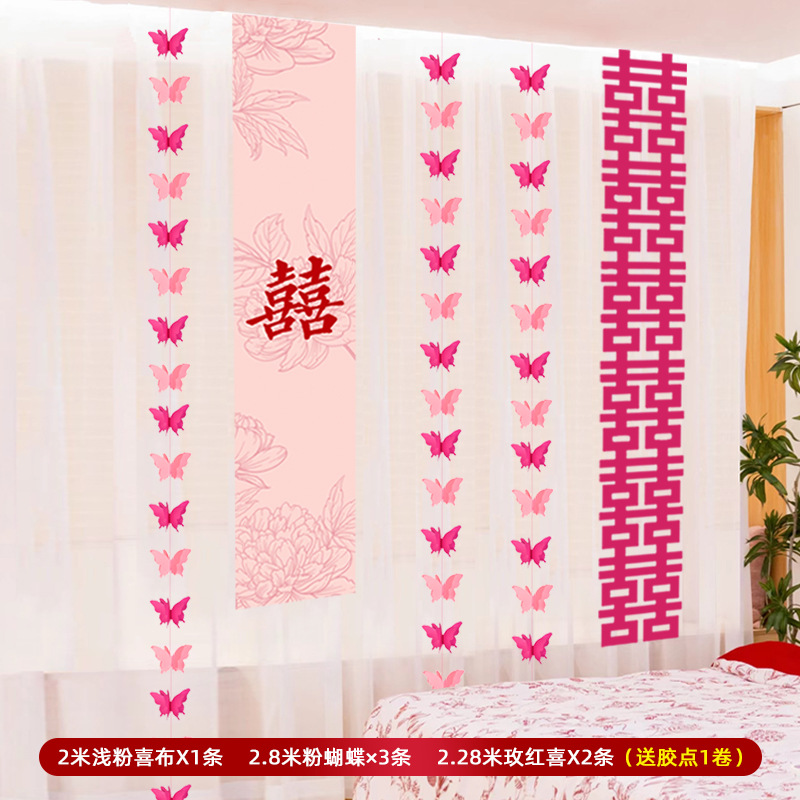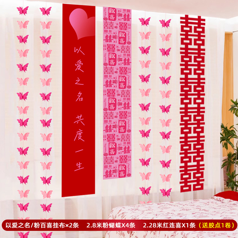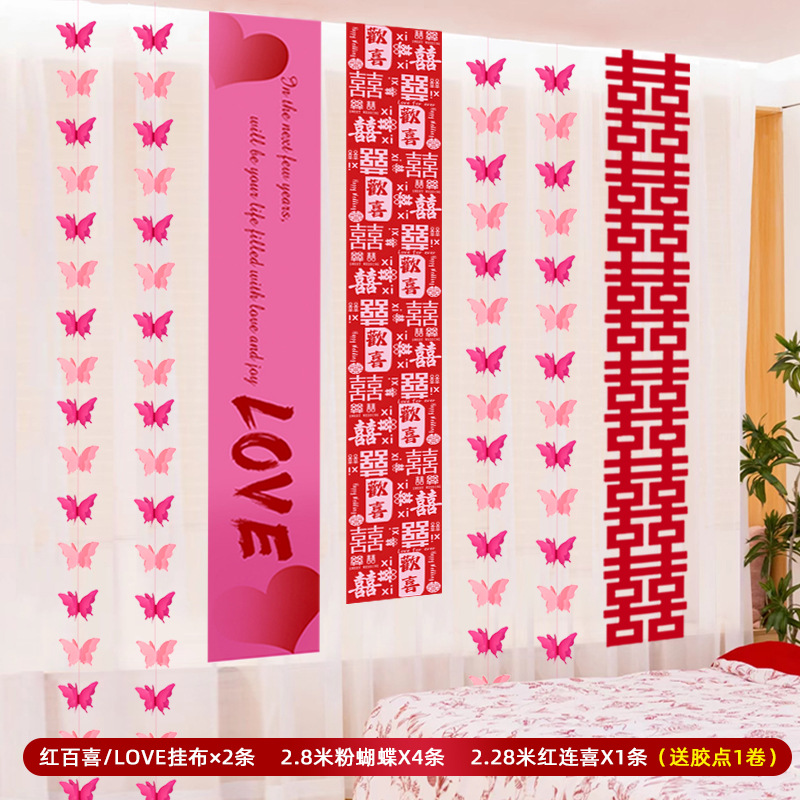 结婚婚房布置喜庆装饰男方女方喜字拉花窗帘挂饰客厅卧室喜字套装