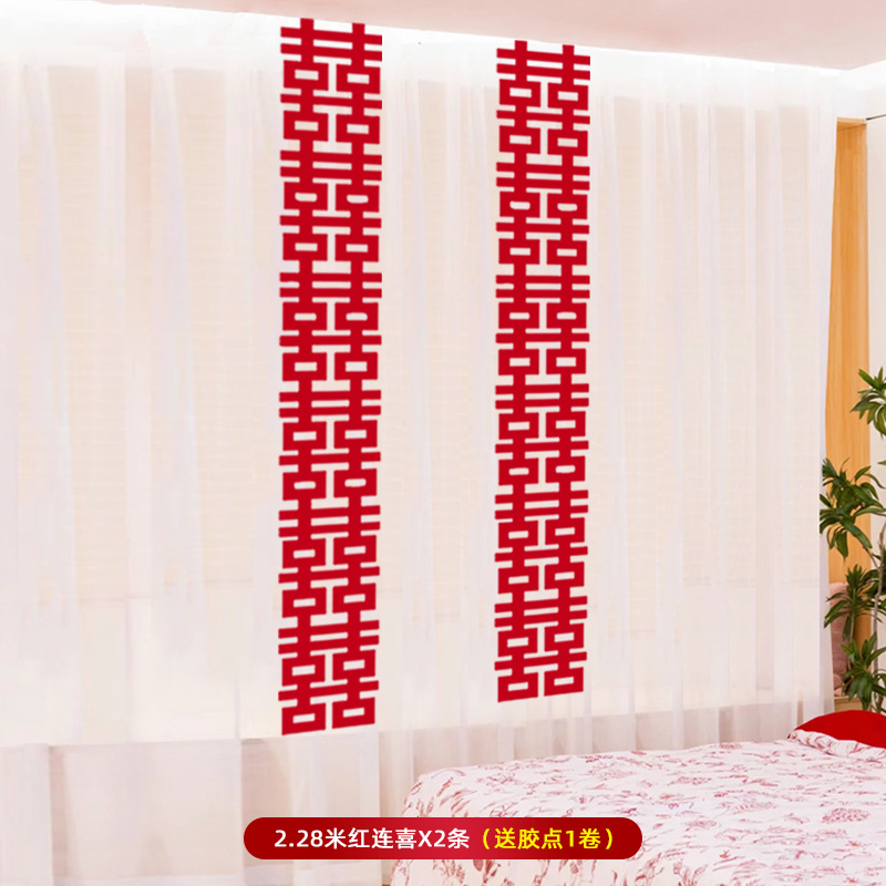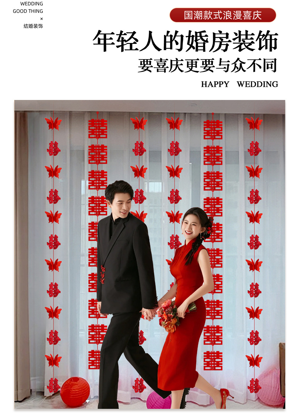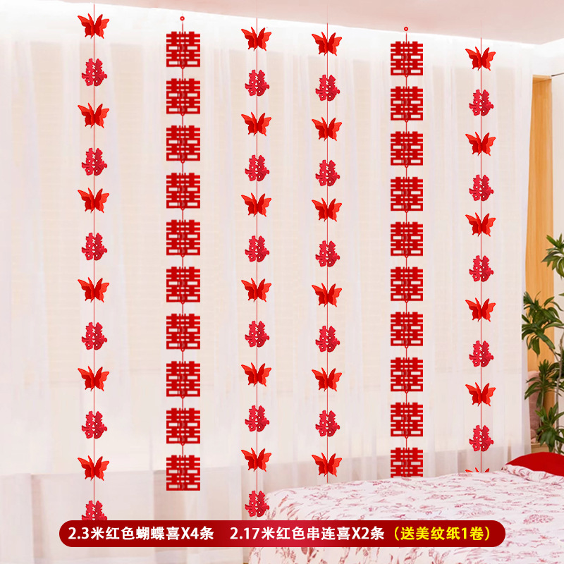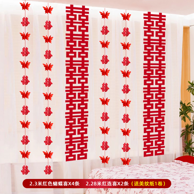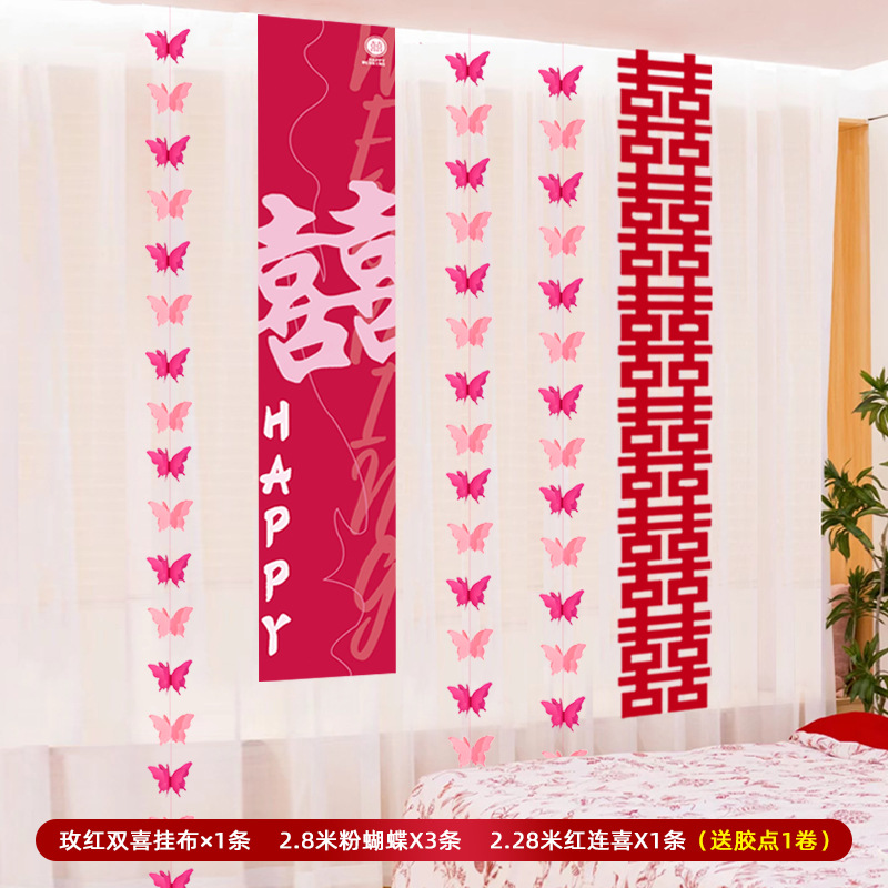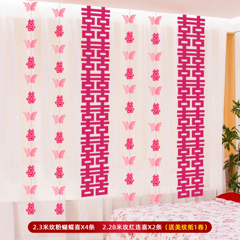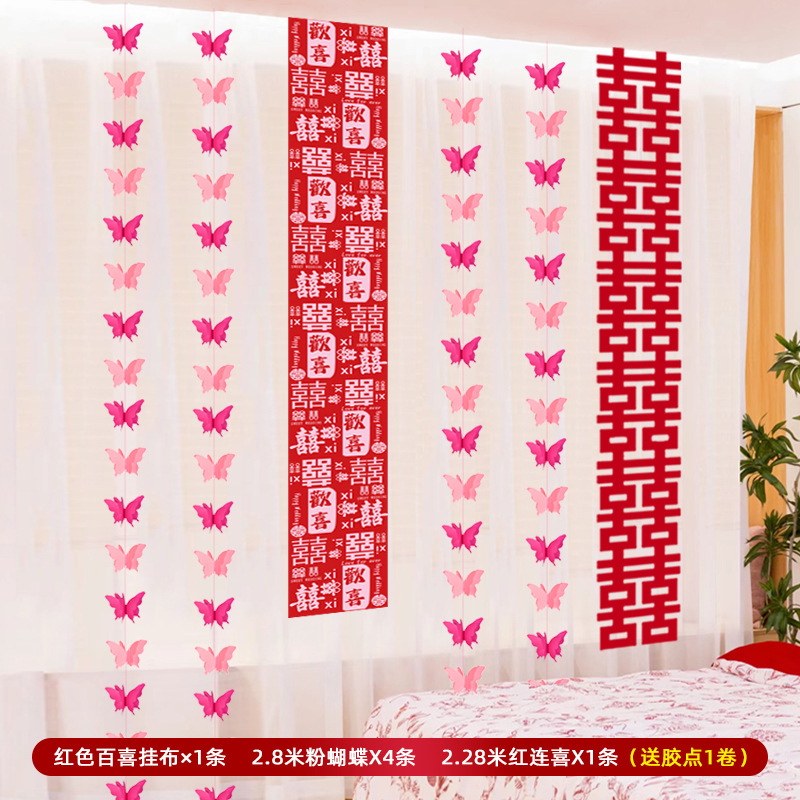 结婚婚房布置喜庆装饰男方女方喜字拉花窗帘挂饰客厅卧室喜字套装