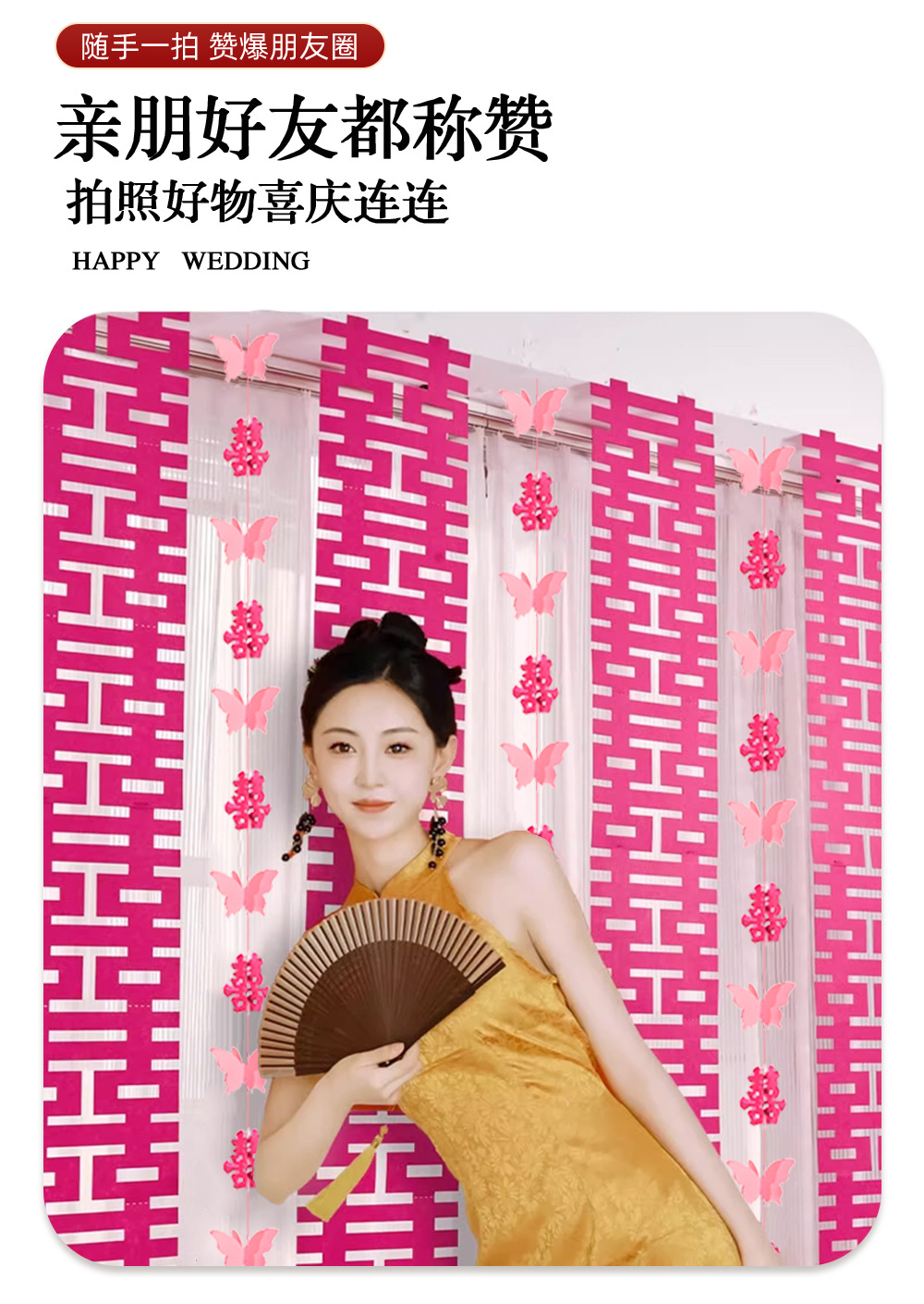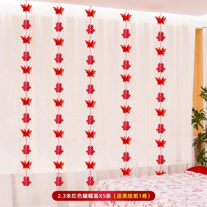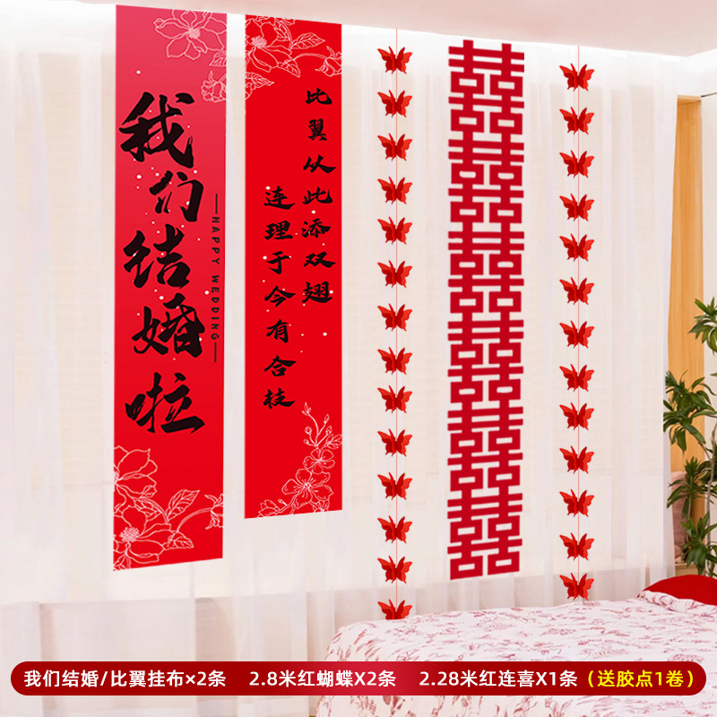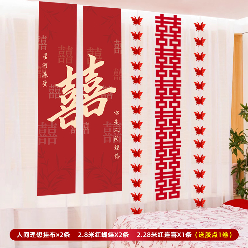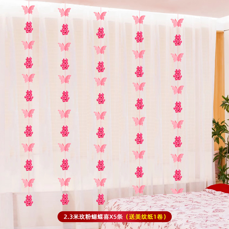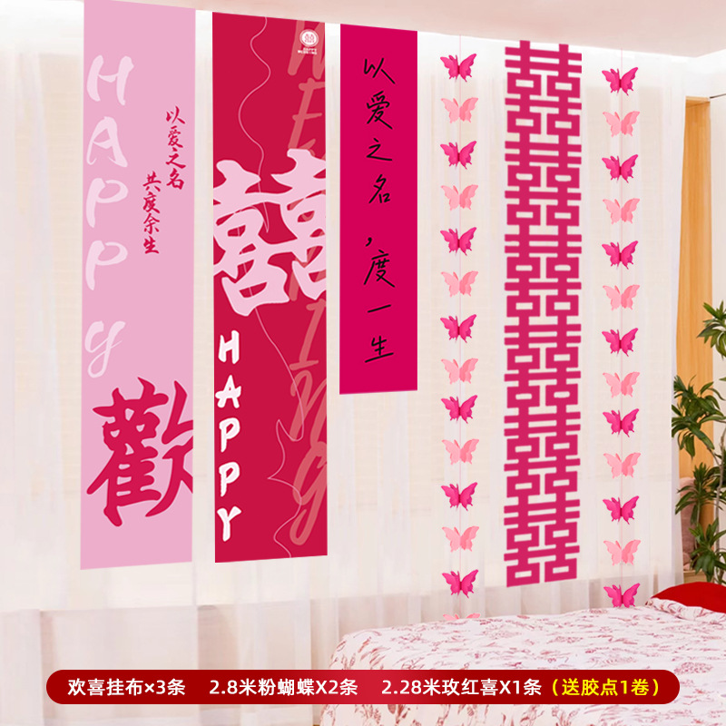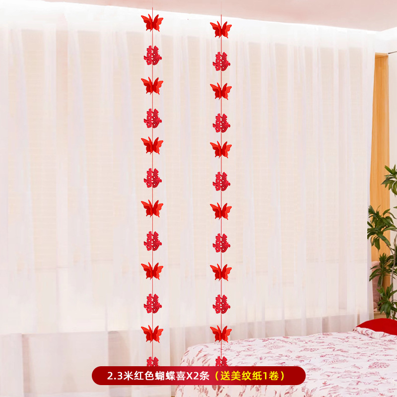 结婚婚房布置喜庆装饰男方女方喜字拉花窗帘挂饰客厅卧室喜字套装
