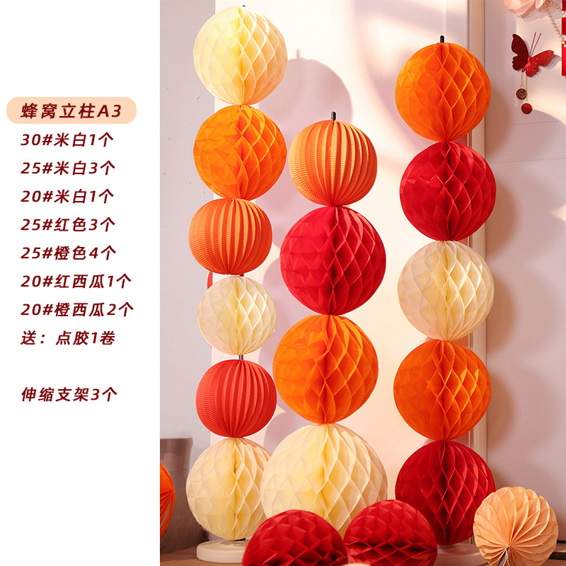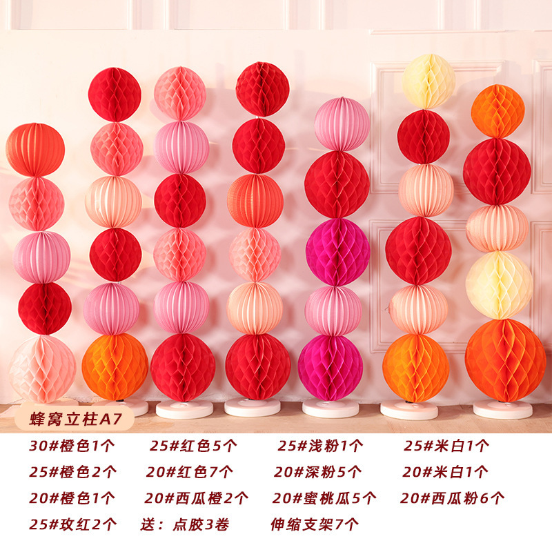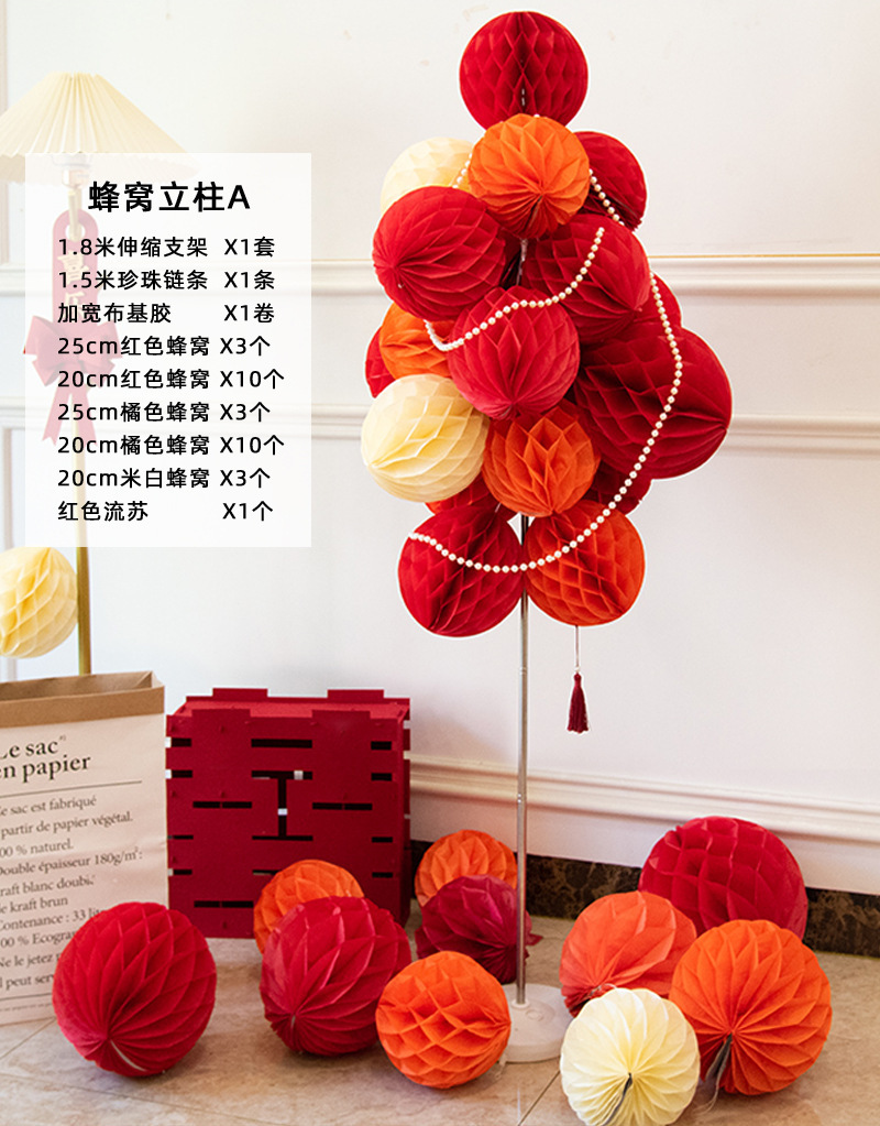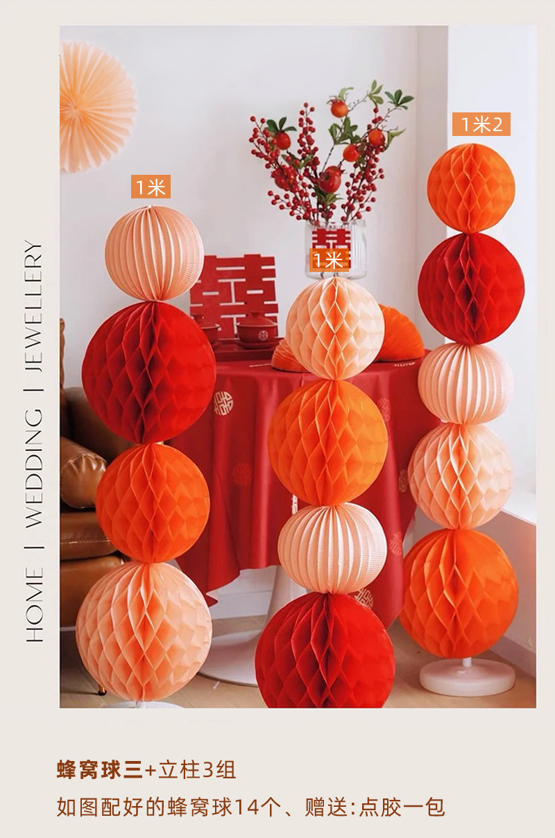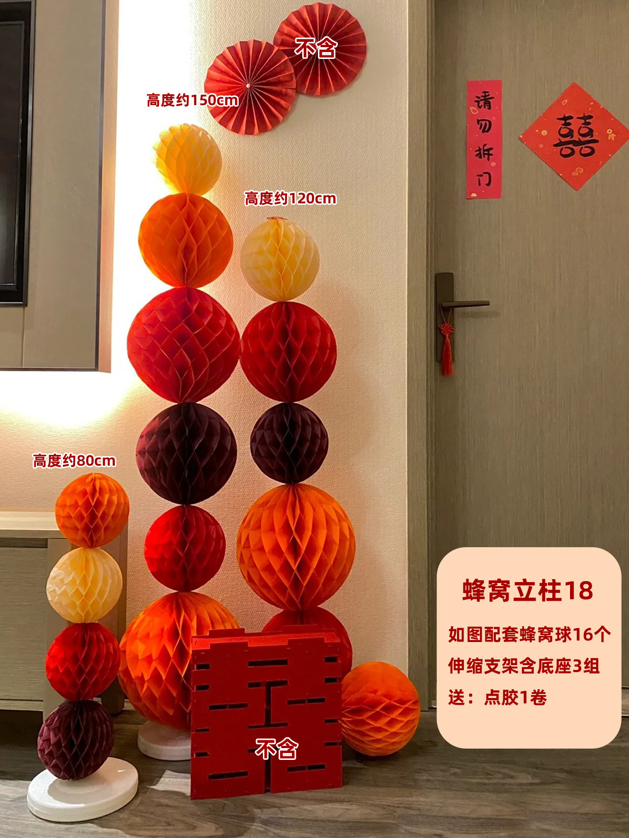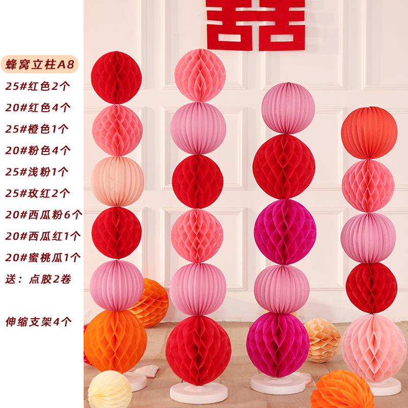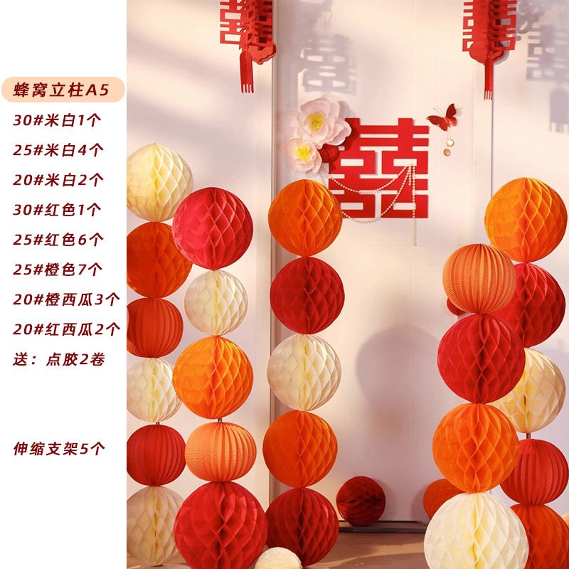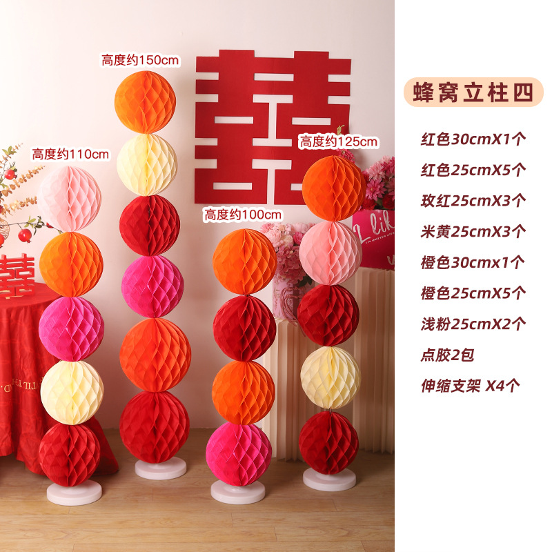 蜂窝球结婚立柱婚房布置套装新房卧室房间女方订婚礼灯笼背景装饰