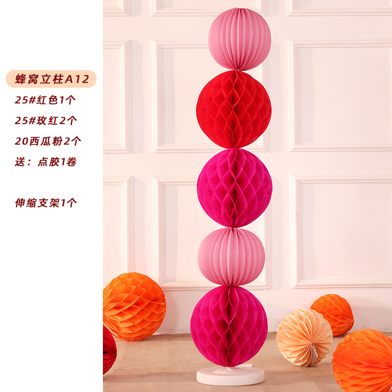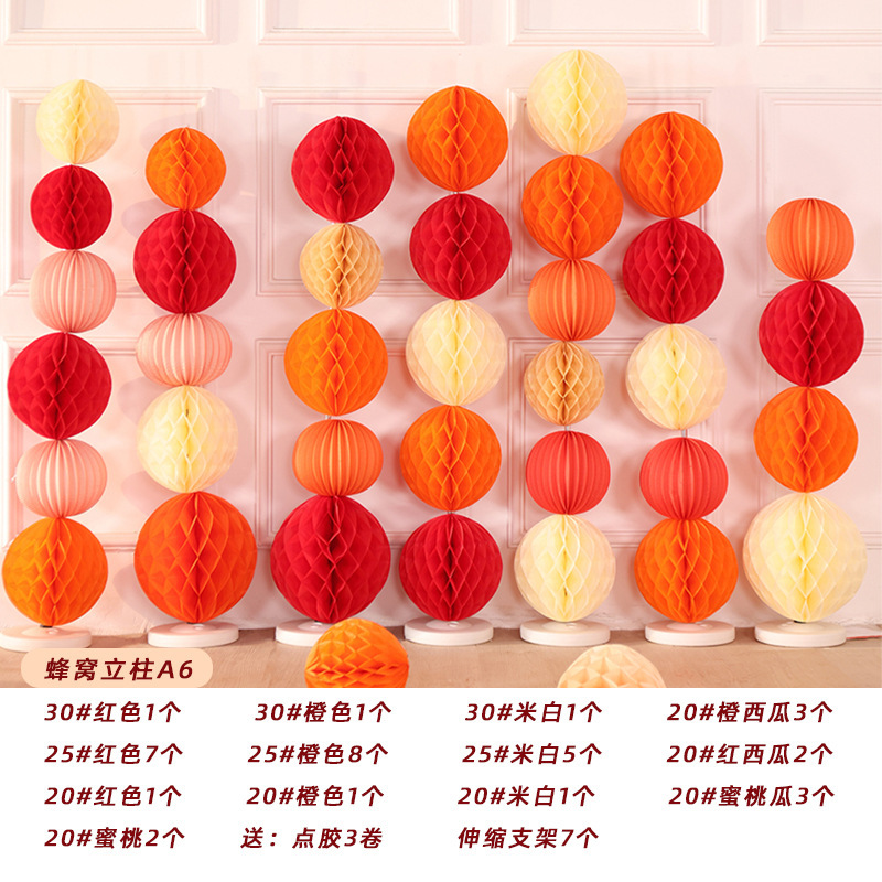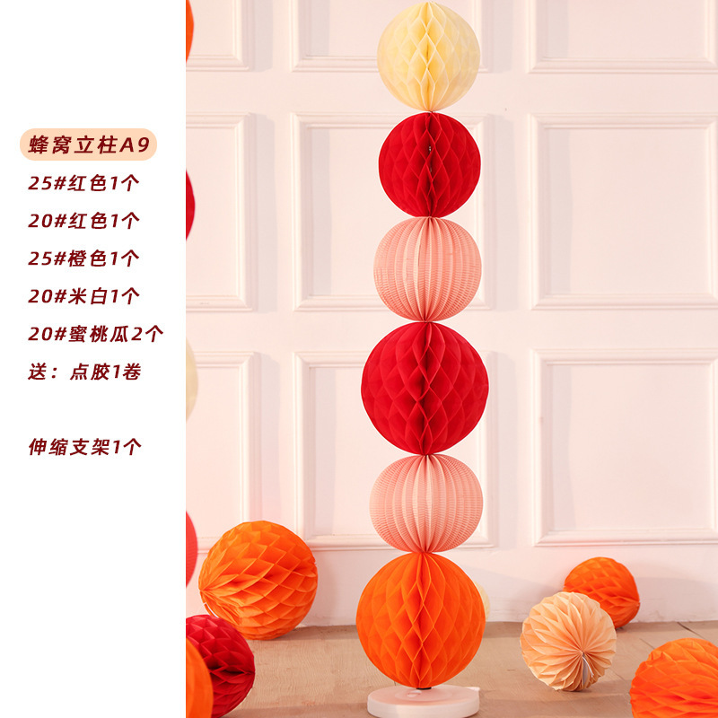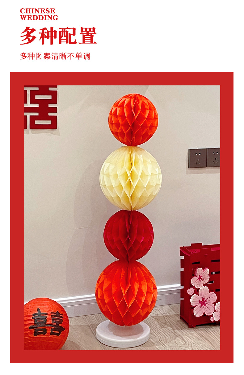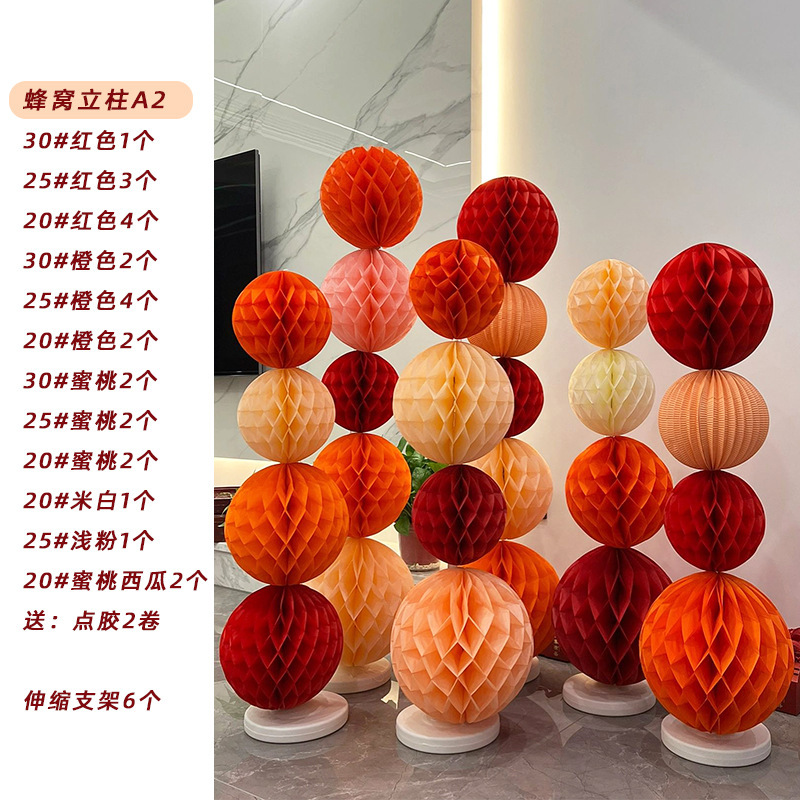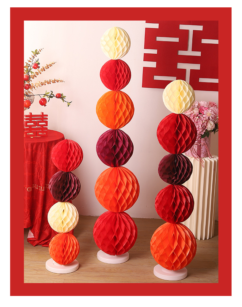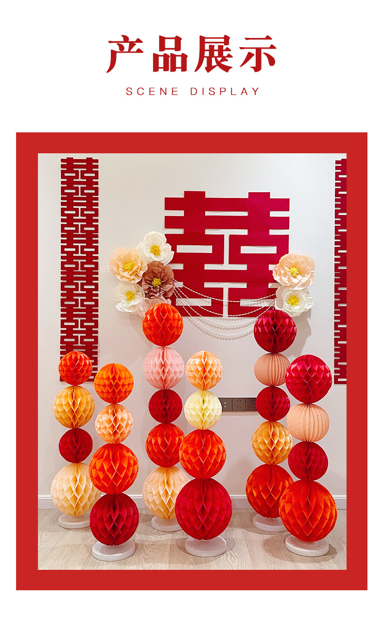 蜂窝球结婚立柱婚房布置套装新房卧室房间女方订婚礼灯笼背景装饰