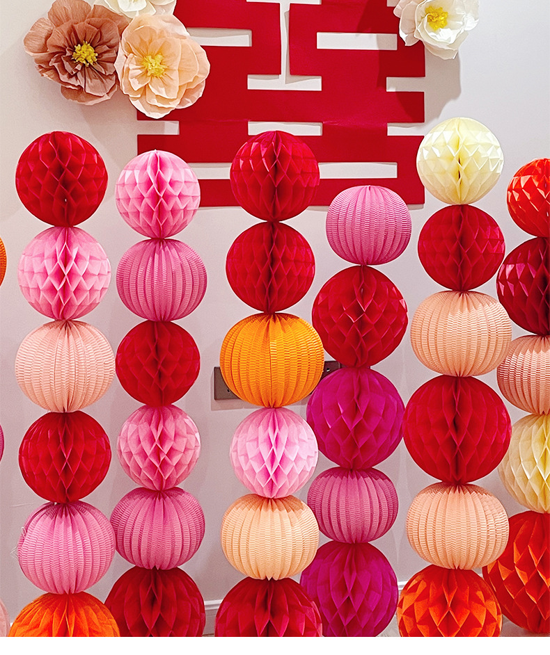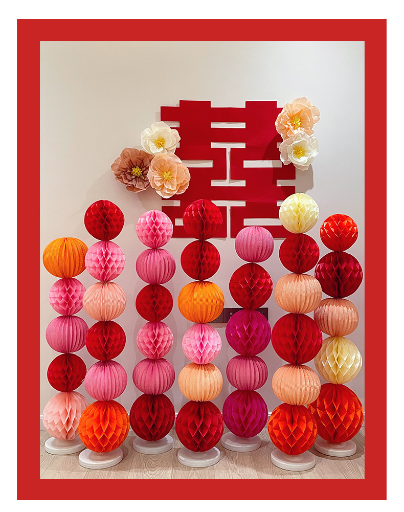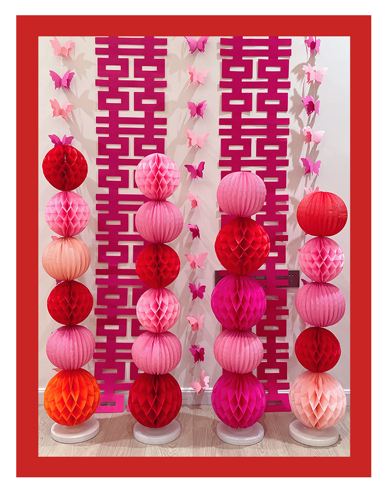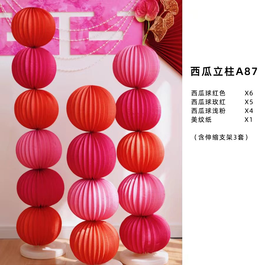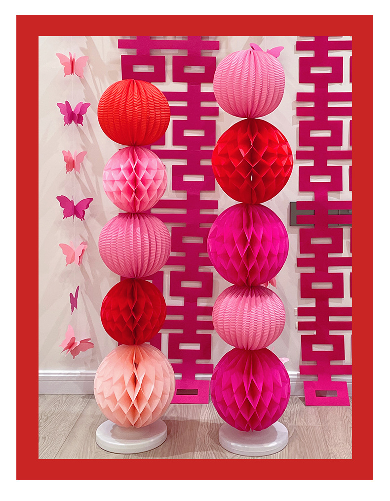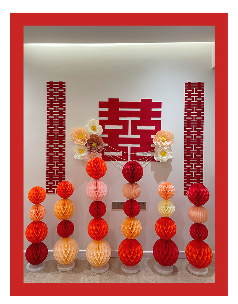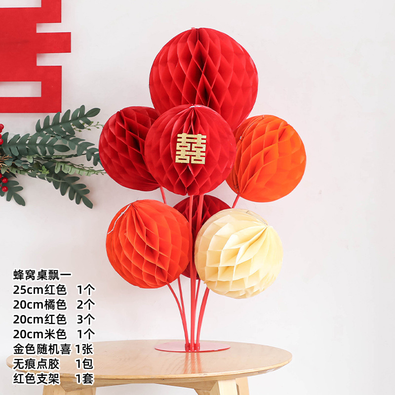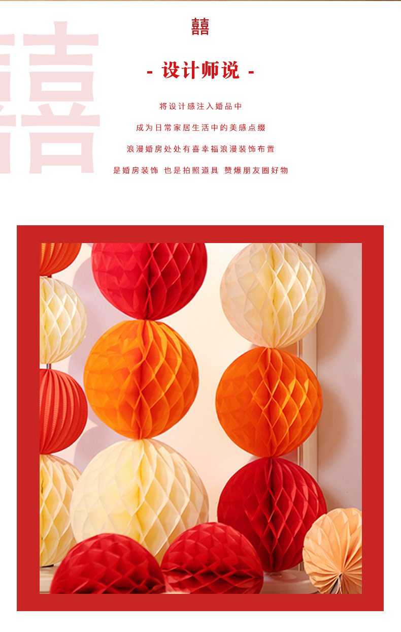 蜂窝球结婚立柱婚房布置套装新房卧室房间女方订婚礼灯笼背景装饰