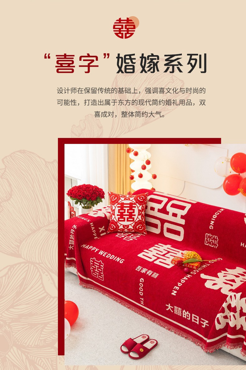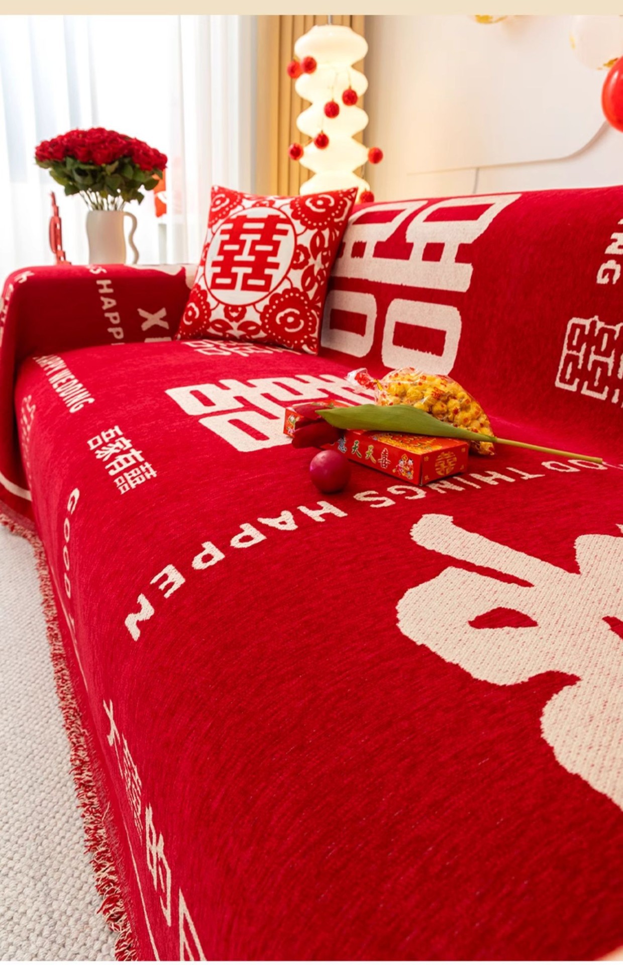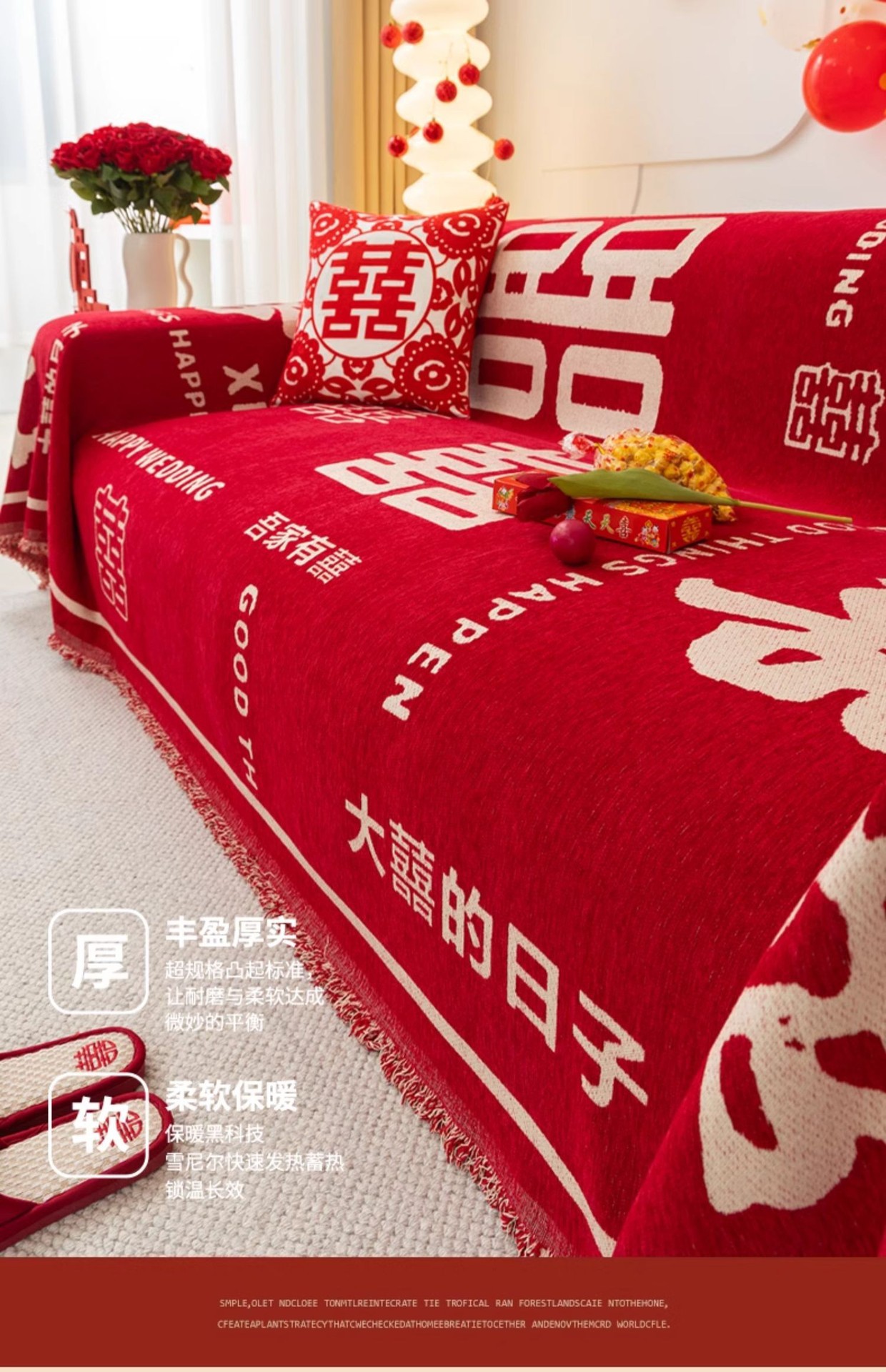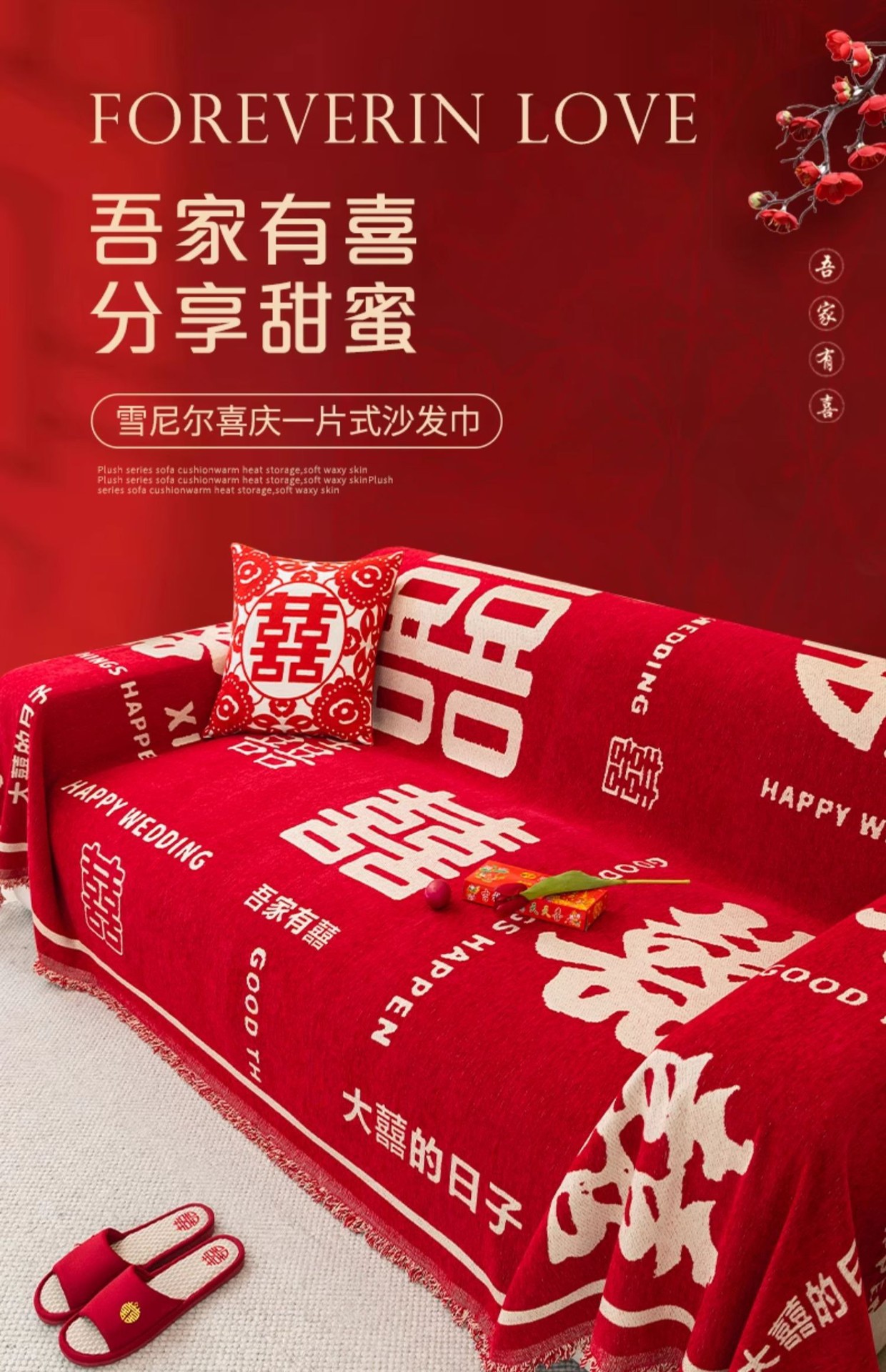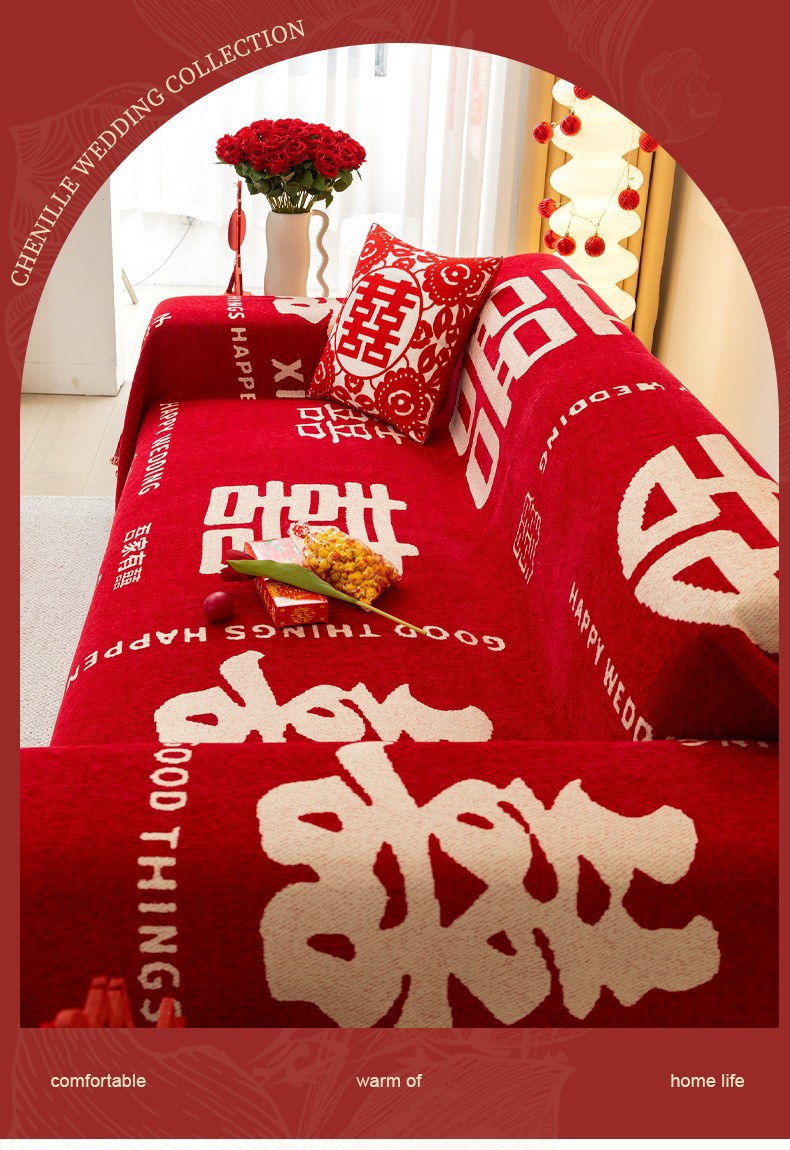 新中式大红沙发垫结婚喜庆沙发垫四季通用防滑婚房装饰沙发盖布巾
