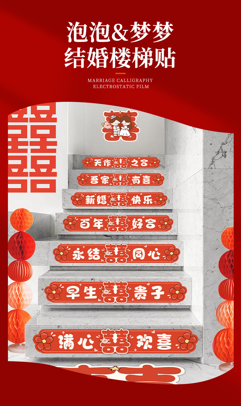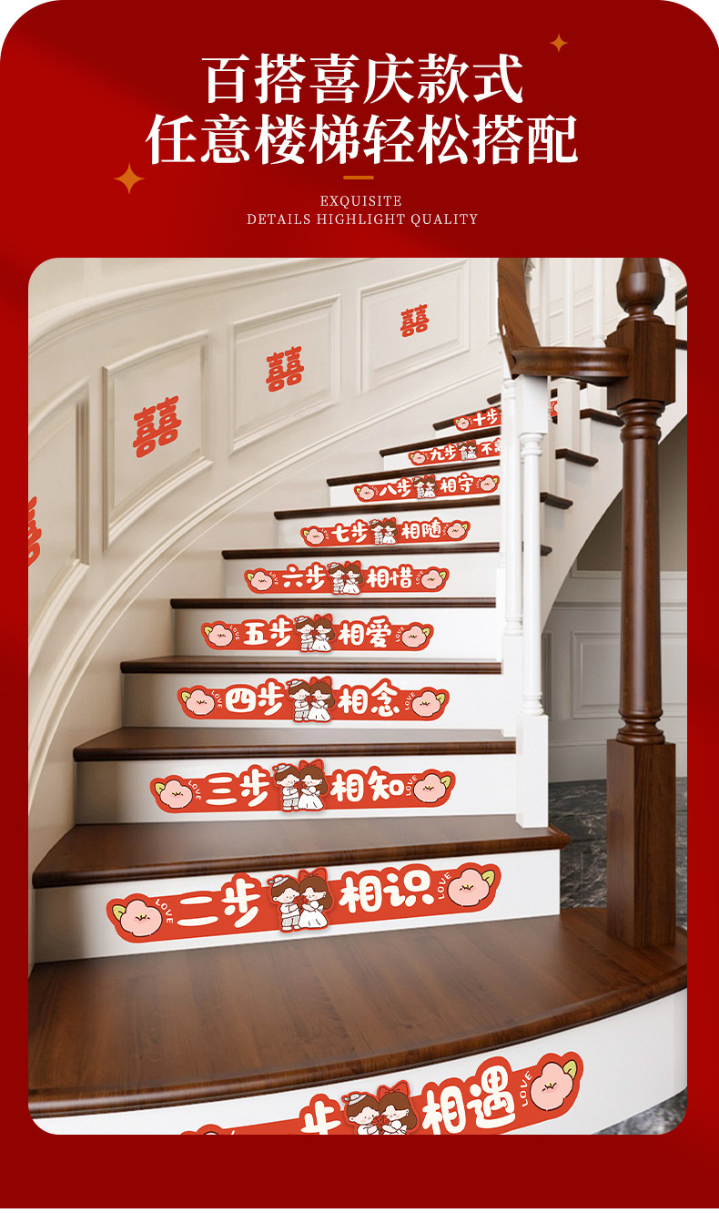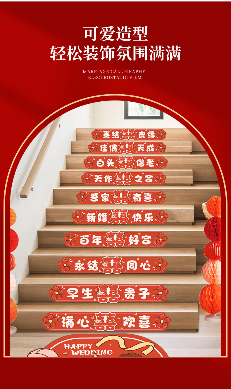 结婚装饰楼梯台阶喜贴婚房布置卡通贴纸套装婚礼场景扶梯喜庆用品