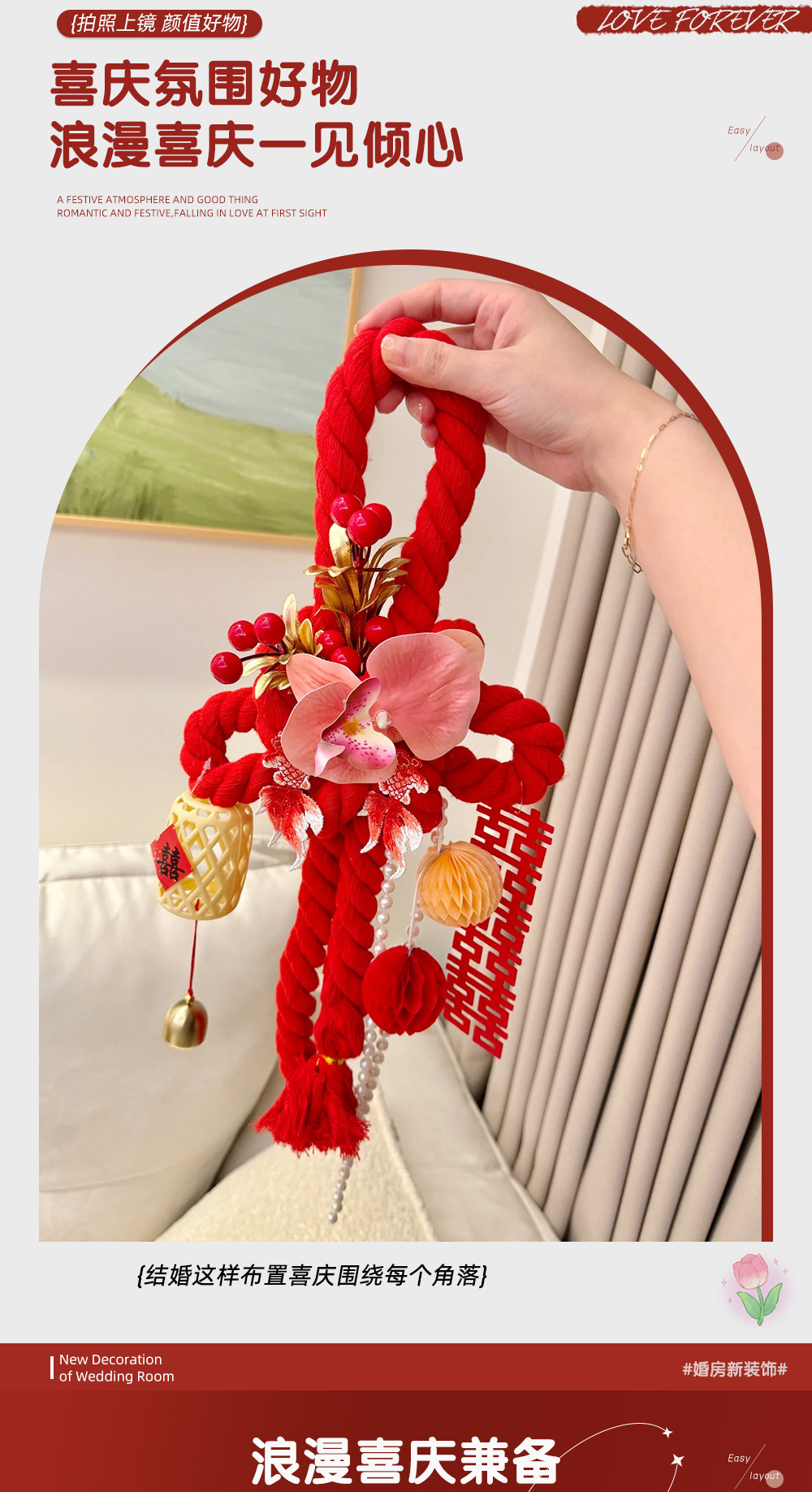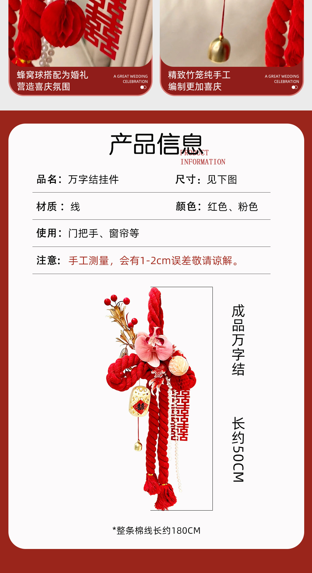 婚房布置万字结挂饰结婚礼新房窗帘喜字门把手挂件中国结喜庆用品