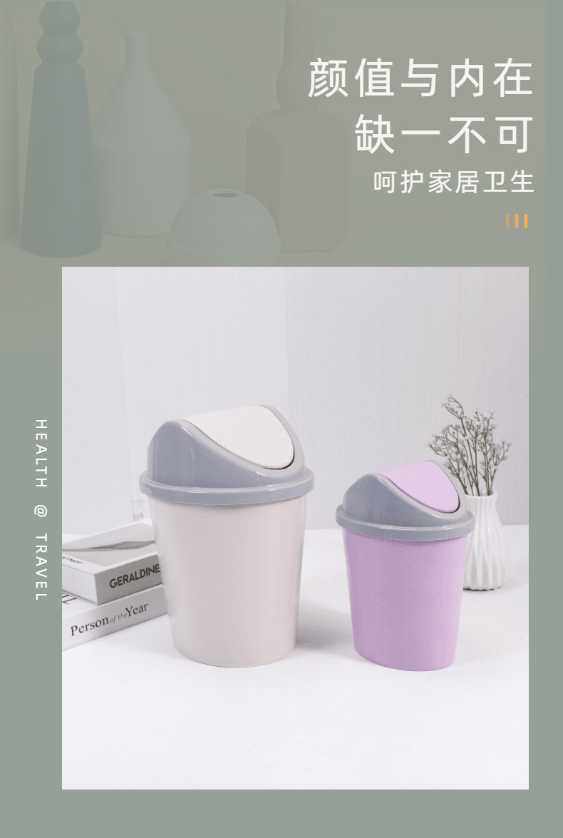有盖翻盖垃圾筒纸篓圆形创意摇盖垃圾桶家用卫生间卧室客厅