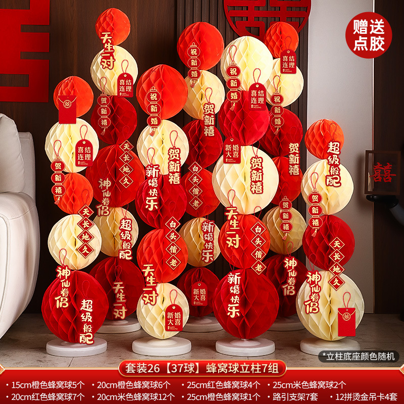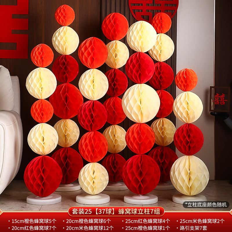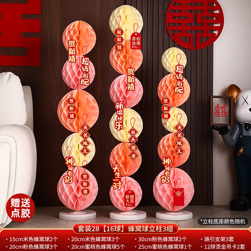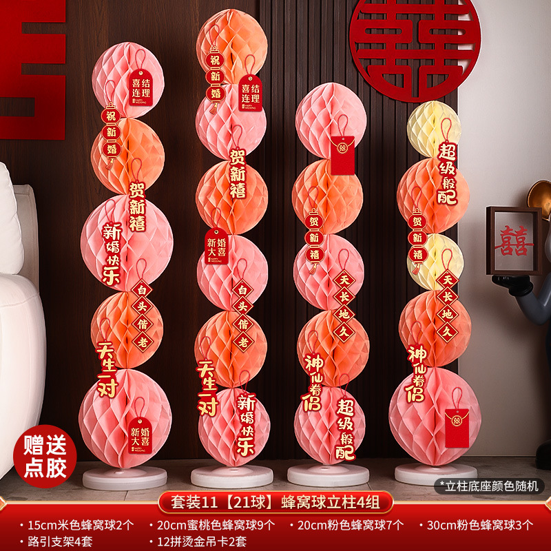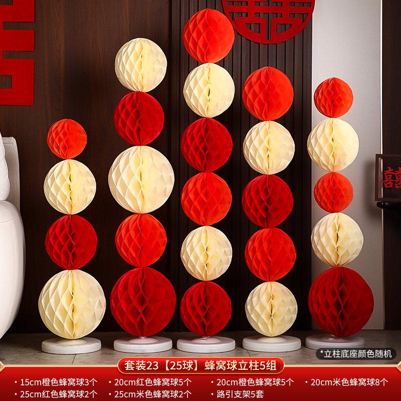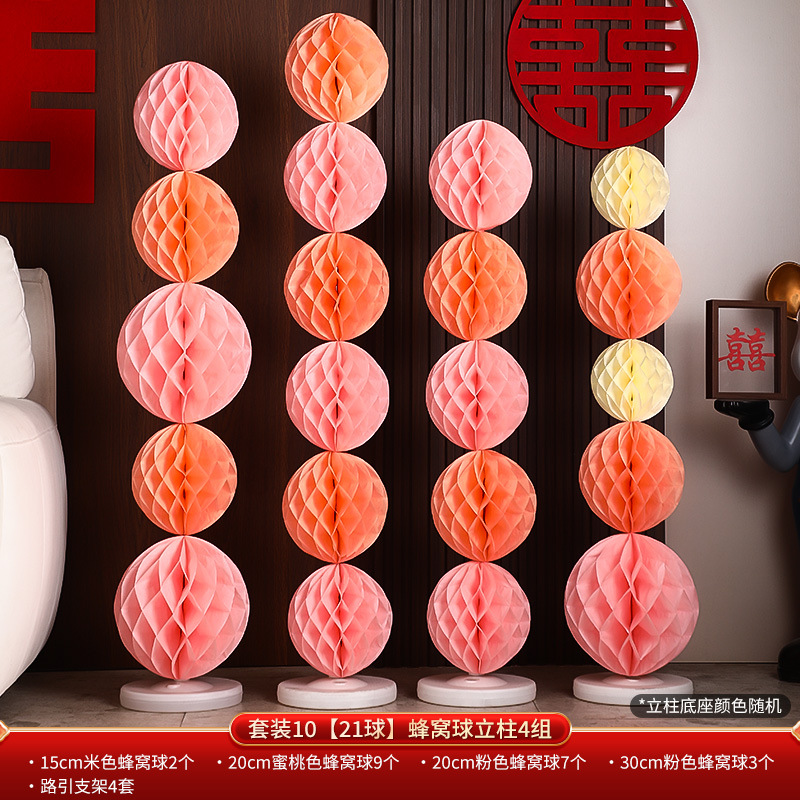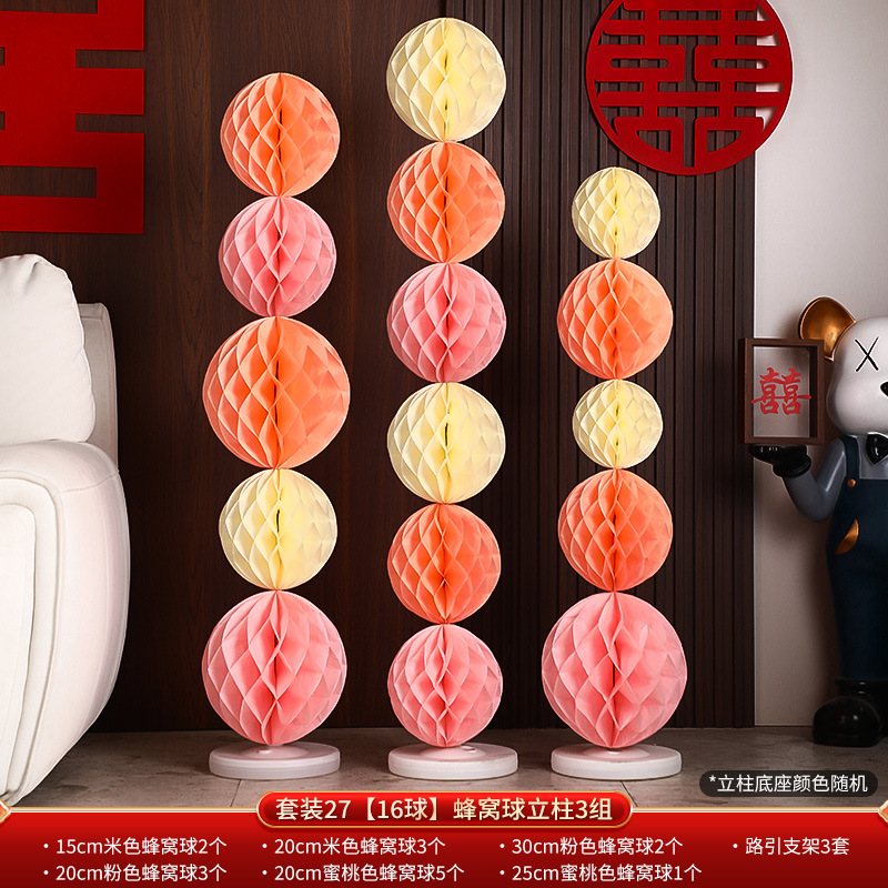 结婚礼布置派对婚庆场景布置装饰用品蜂窝球立柱蜂窝灯笼纸蜂巢球