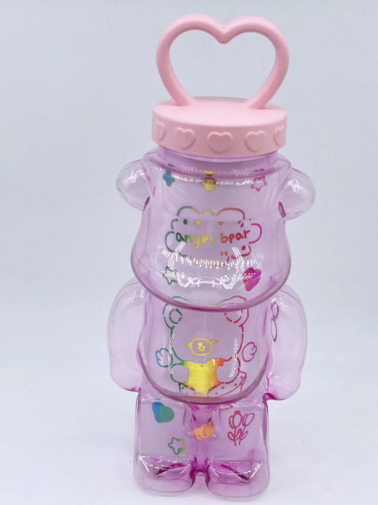 带戴皇冠pet水杯 小熊奶茶杯 卡通异形加厚饮料瓶塑料果汁杯