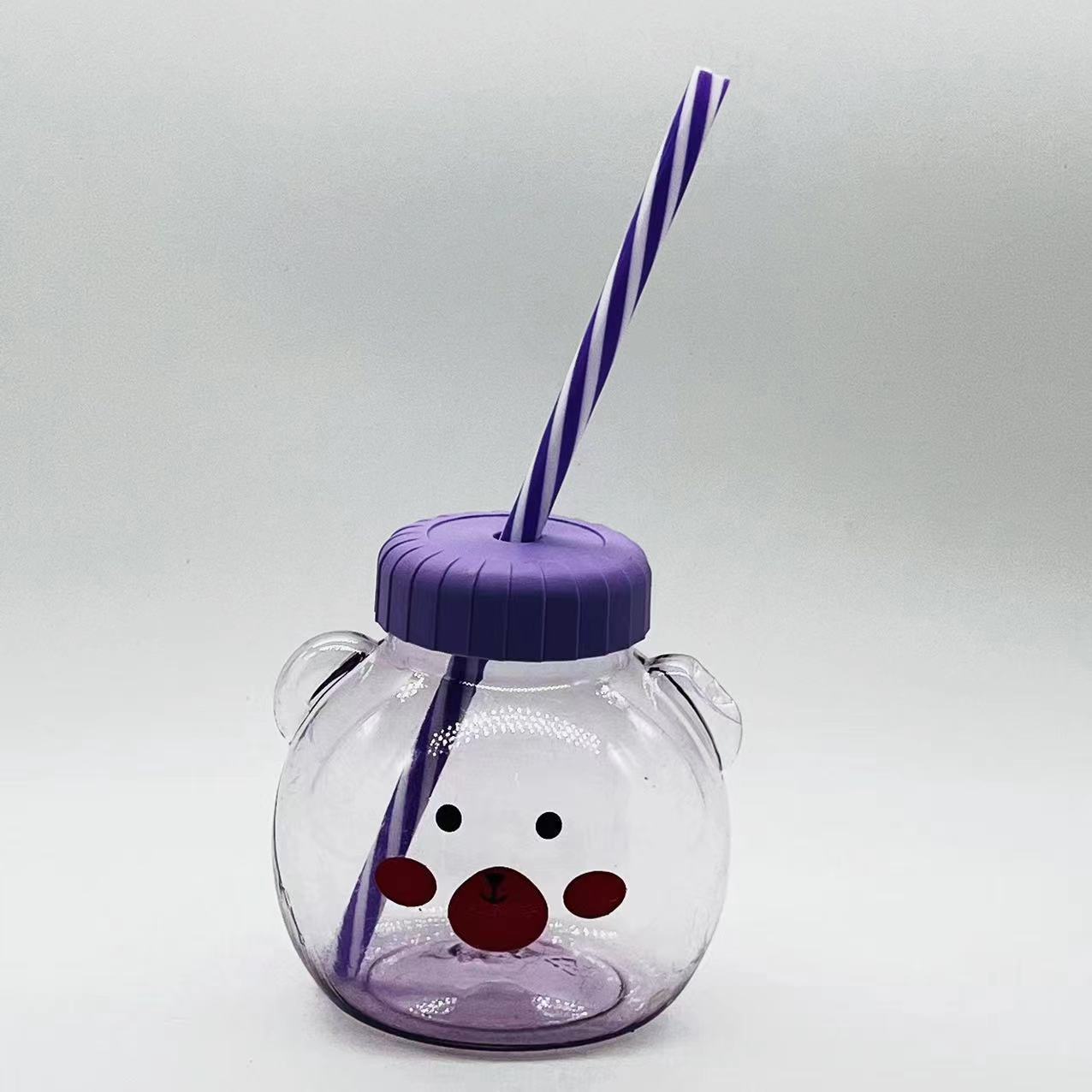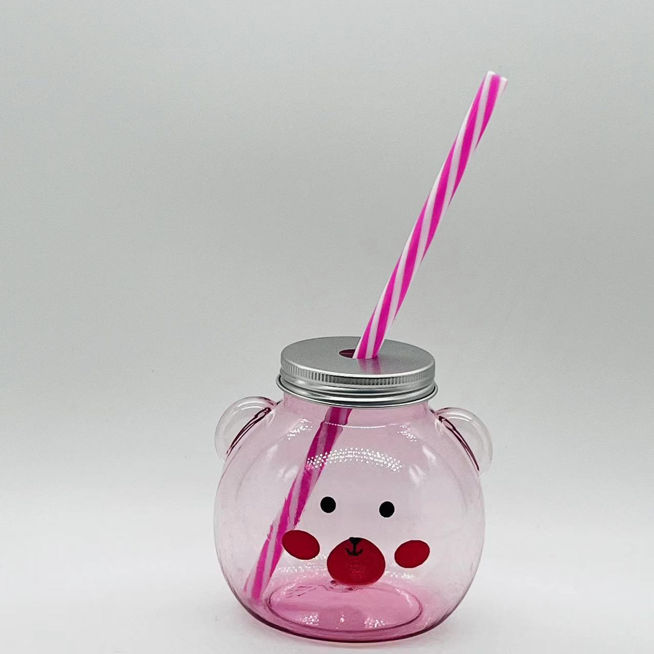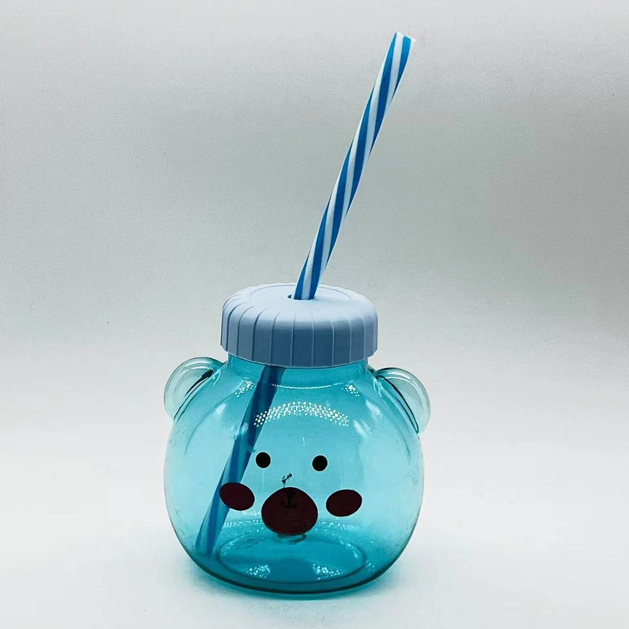 超萌小熊儿童成人礼品杯 新款卡通动物塑料杯奶茶果汁饮料瓶吸管