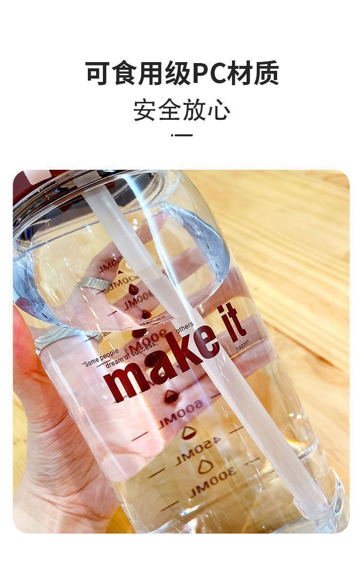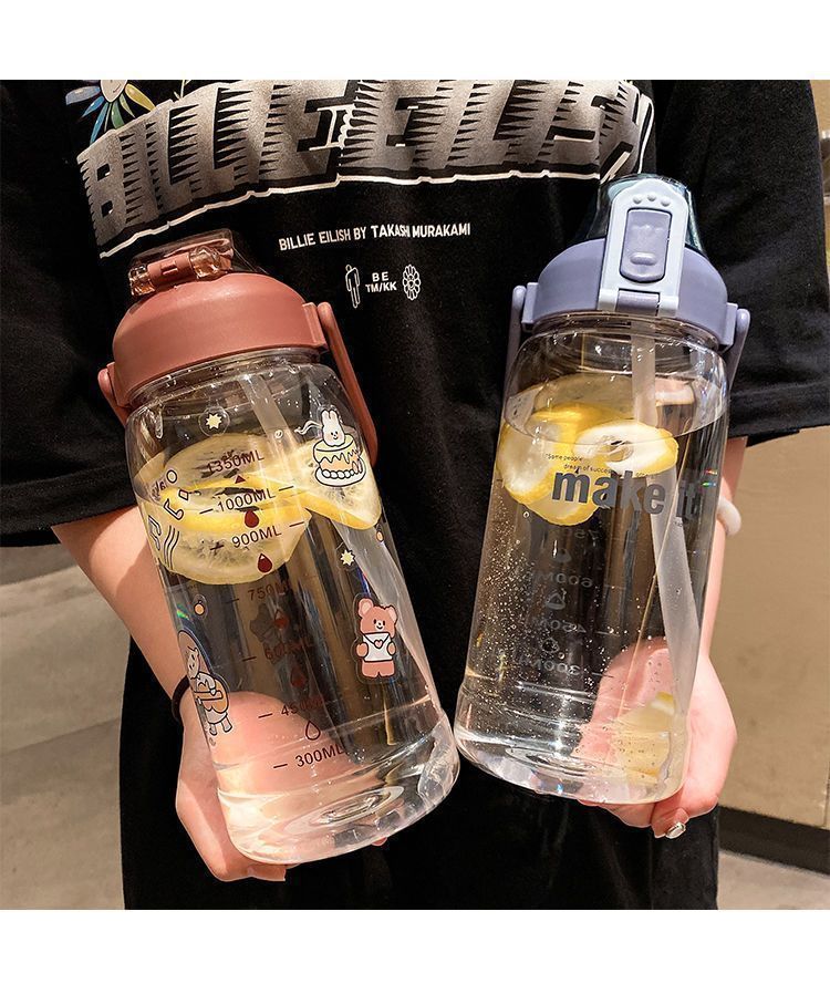 新款超大容量高颜值小众水杯桶运动水壶瓶弹盖手提吸管杯太空杯子