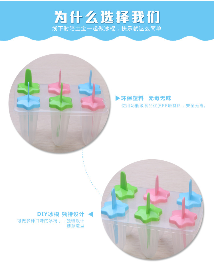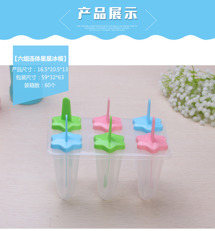 棒冰模具冰棍自制雪糕厂家批发 创意DIY冰格 六组连体星星冰模