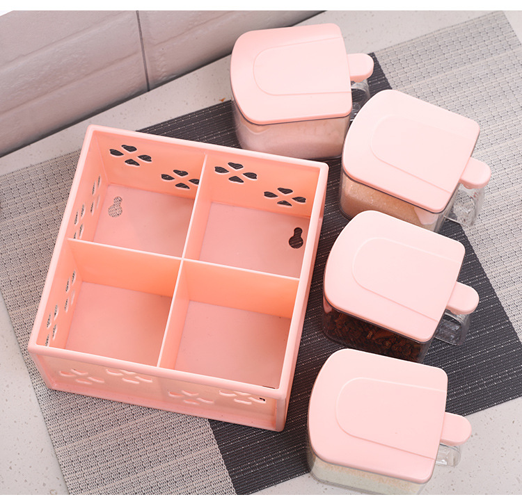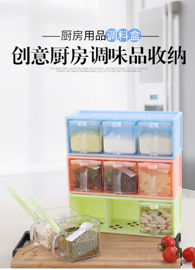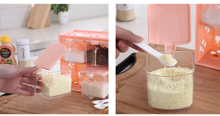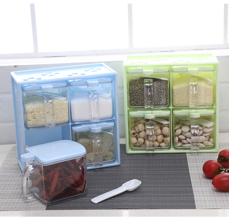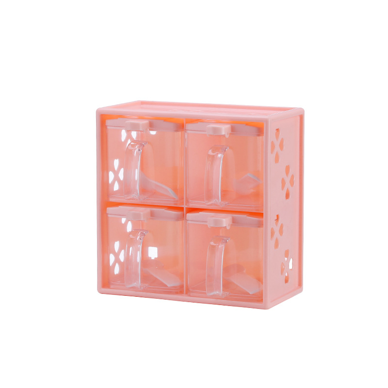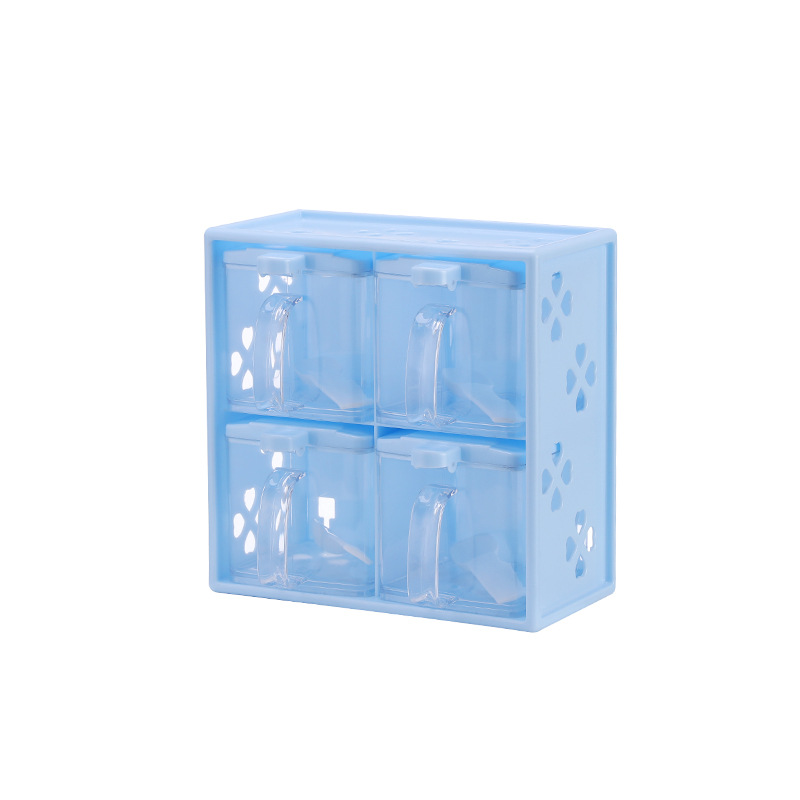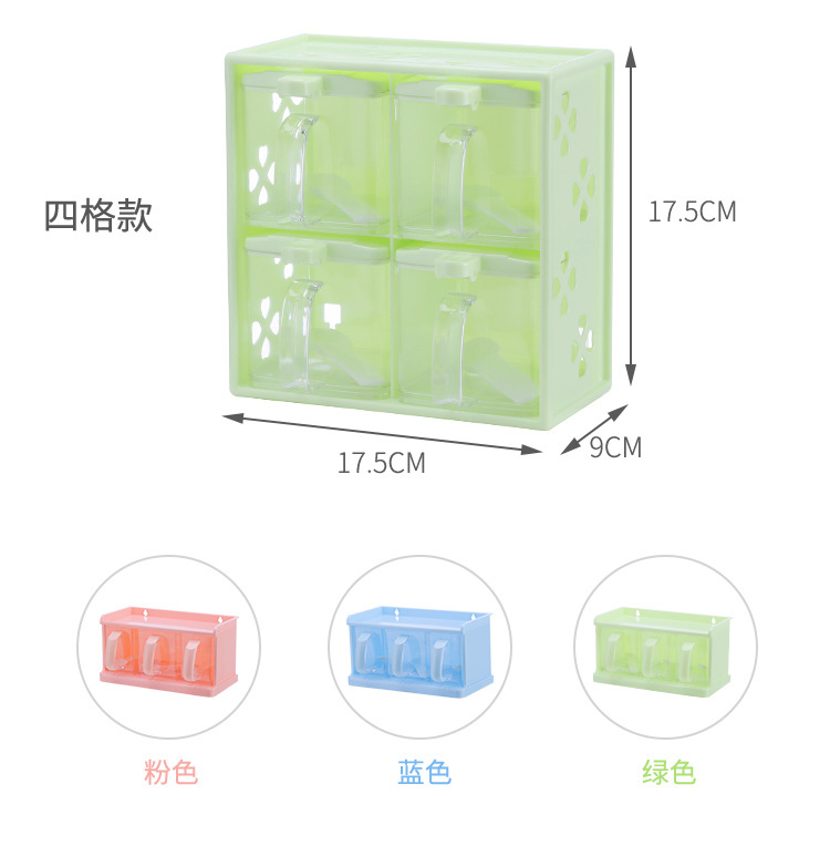 household kitchen wall-mounted drawer-style four-grid condiment dispenser transparent with spoon moisture-proof seasoning box suit japanese style