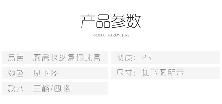 抽屉式四组调味盒:产品尺寸:17.5*9*17.5cm