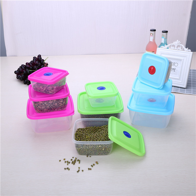 便当正方形套装饭盒密封盒扣子厂家批发塑料食品午餐保鲜盒收纳盒