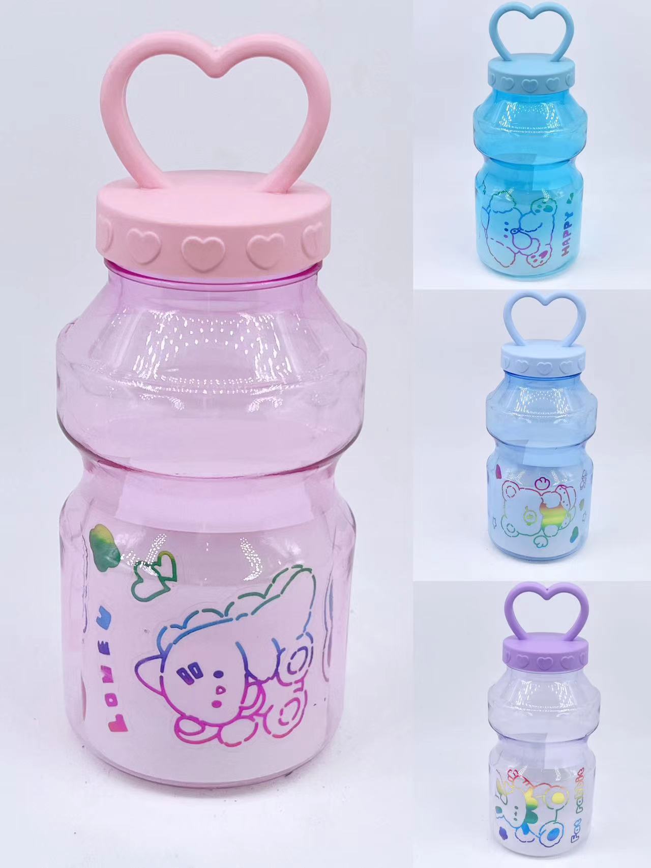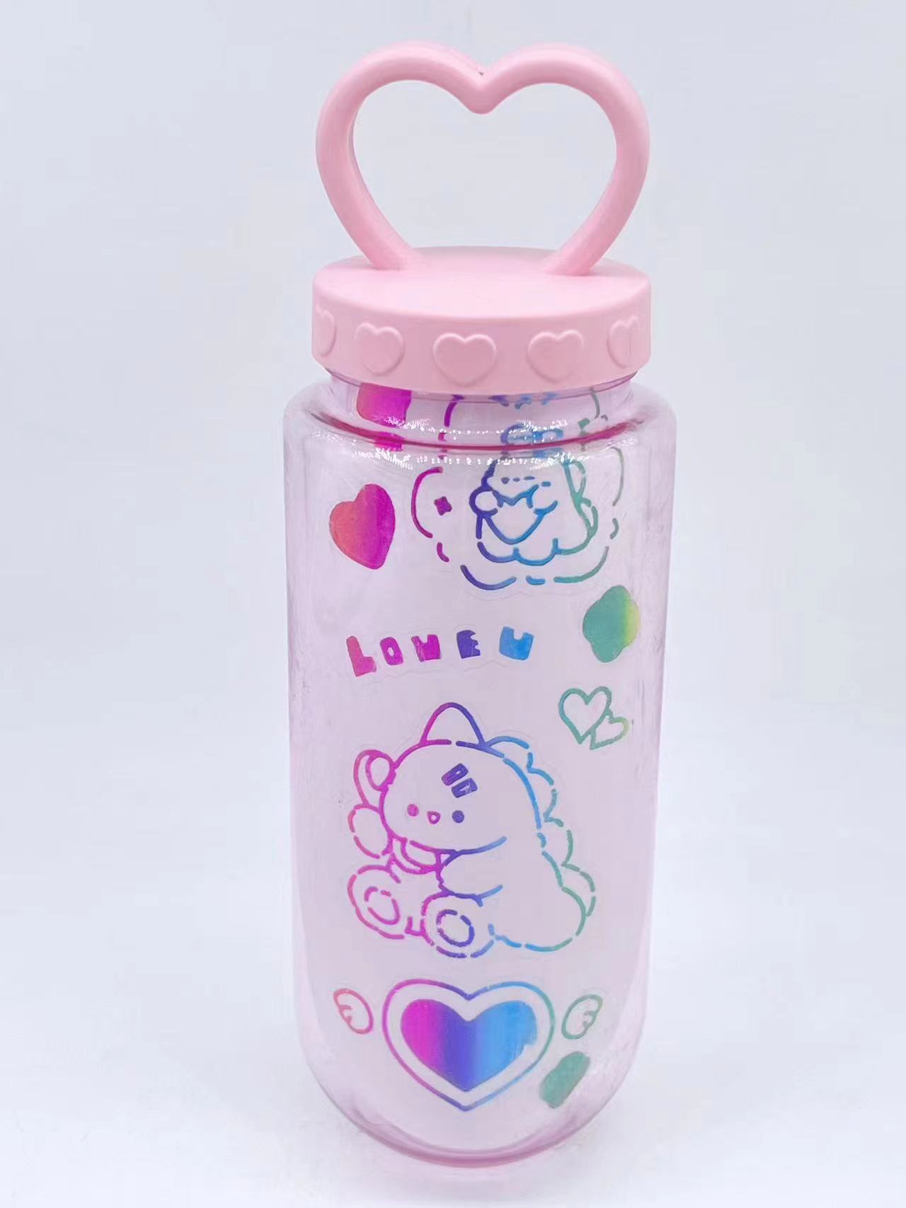 爱心提手 新款方形饮料瓶pet果汁外带一次性塑料杯脏脏奶茶杯