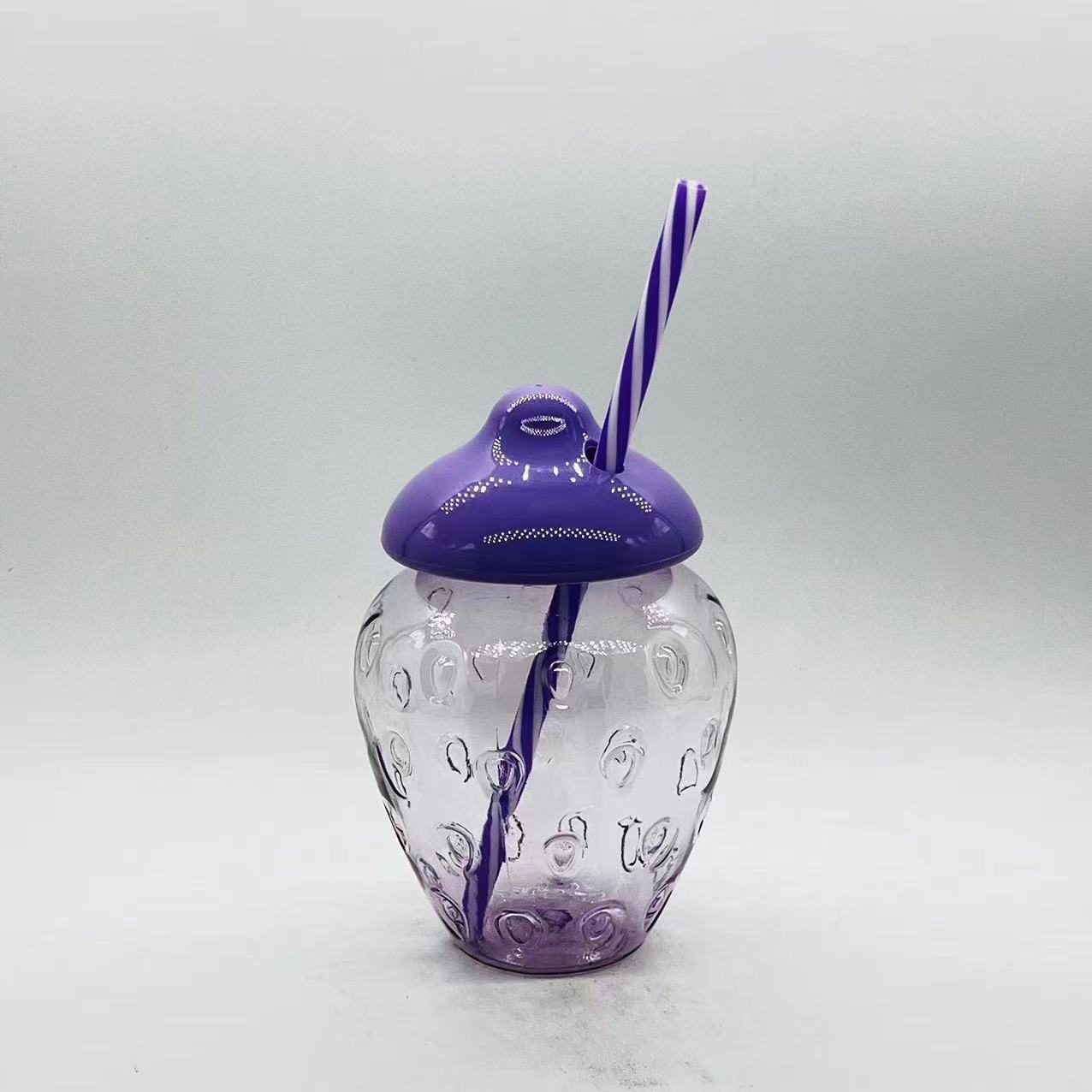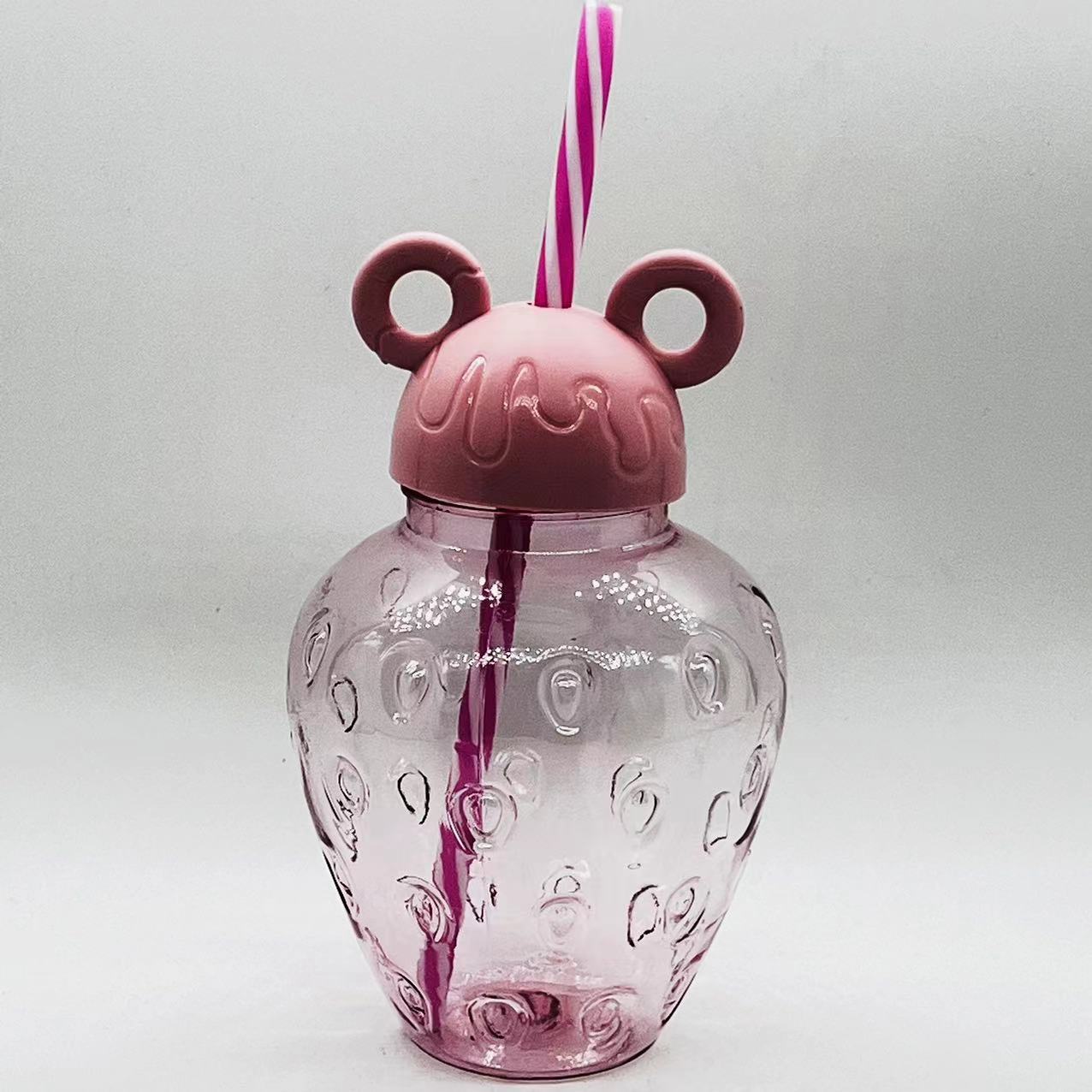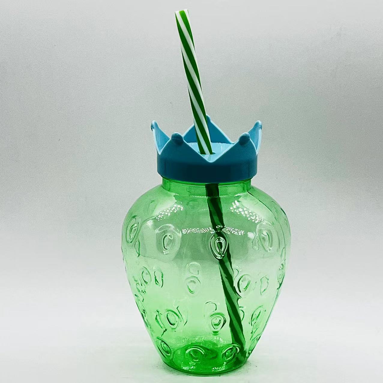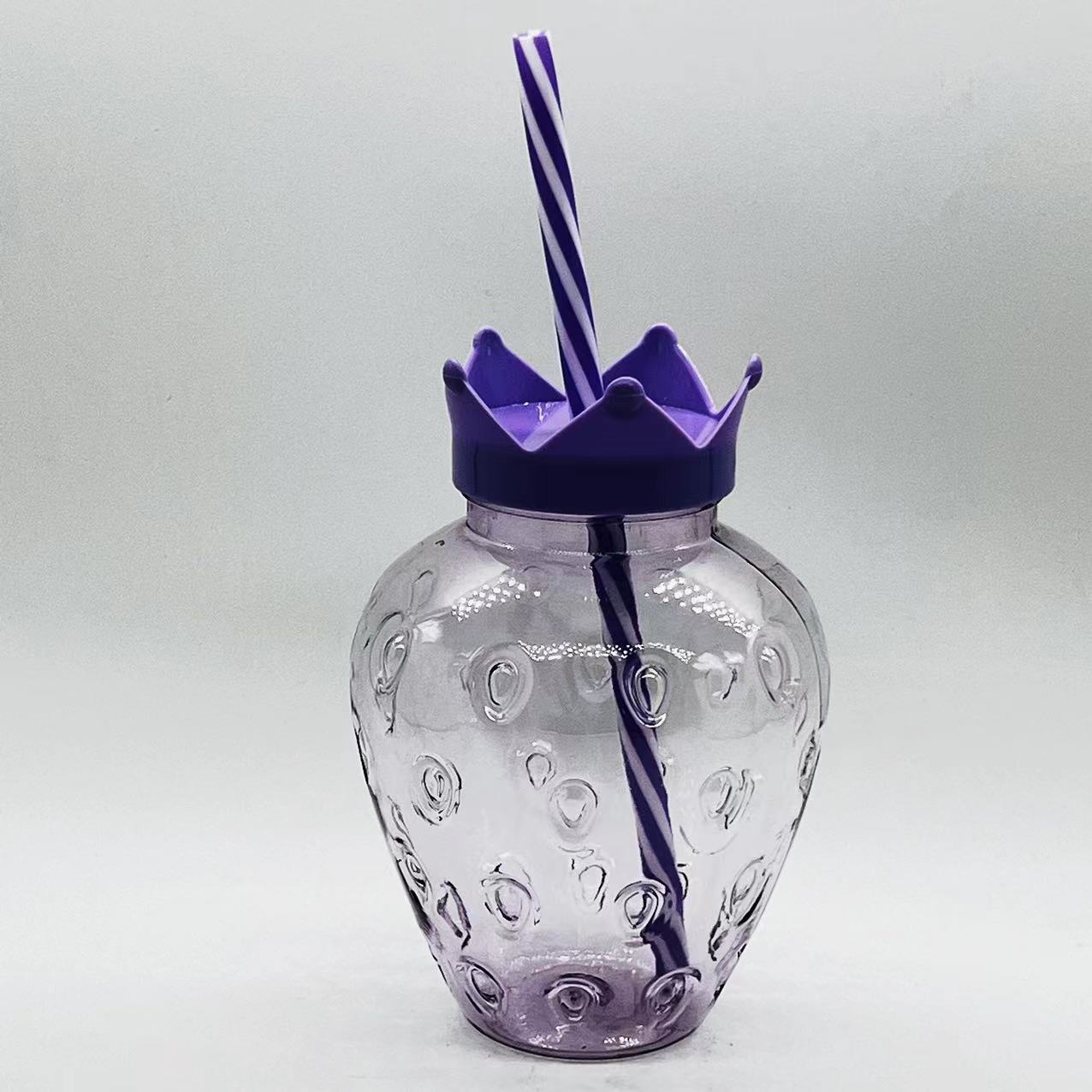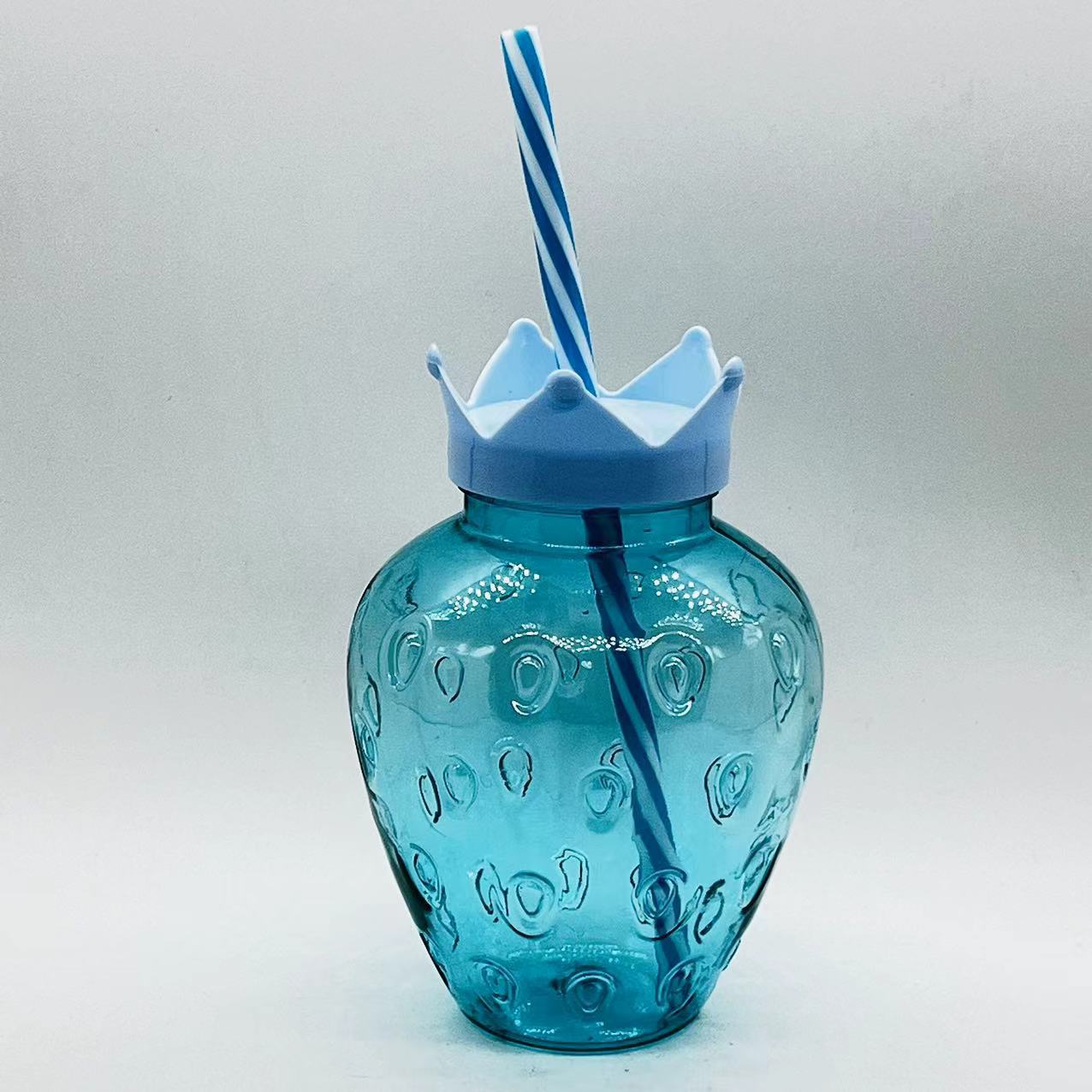 草莓杯水果造型pet500毫升吸管杯皇冠吸水杯果汁茶饮瓶