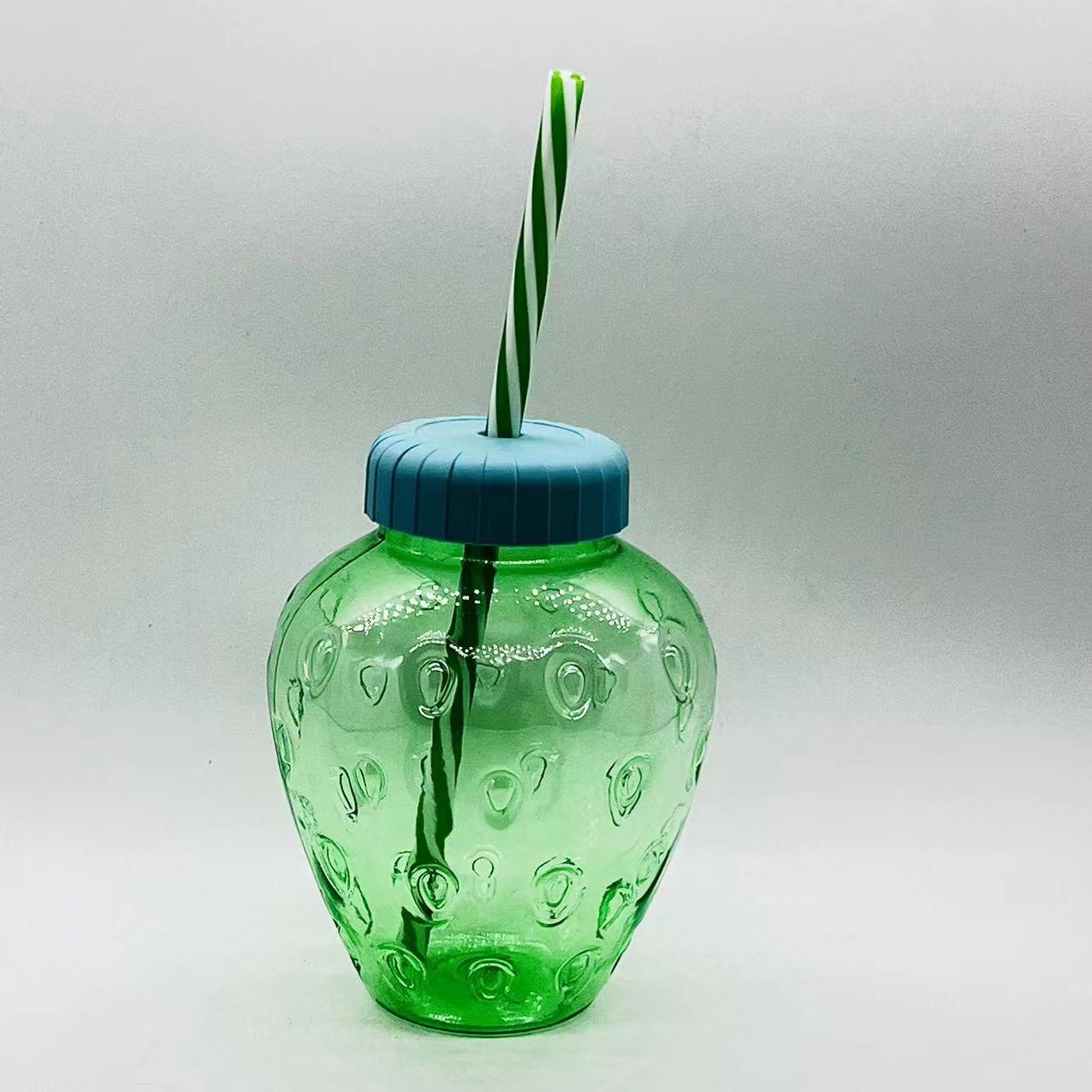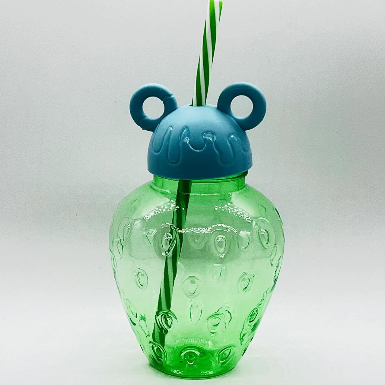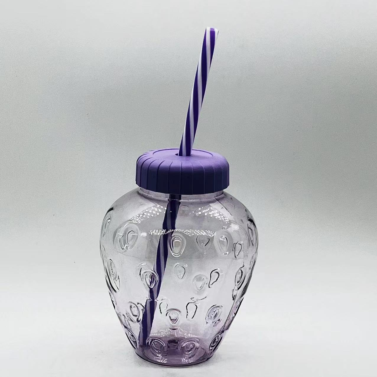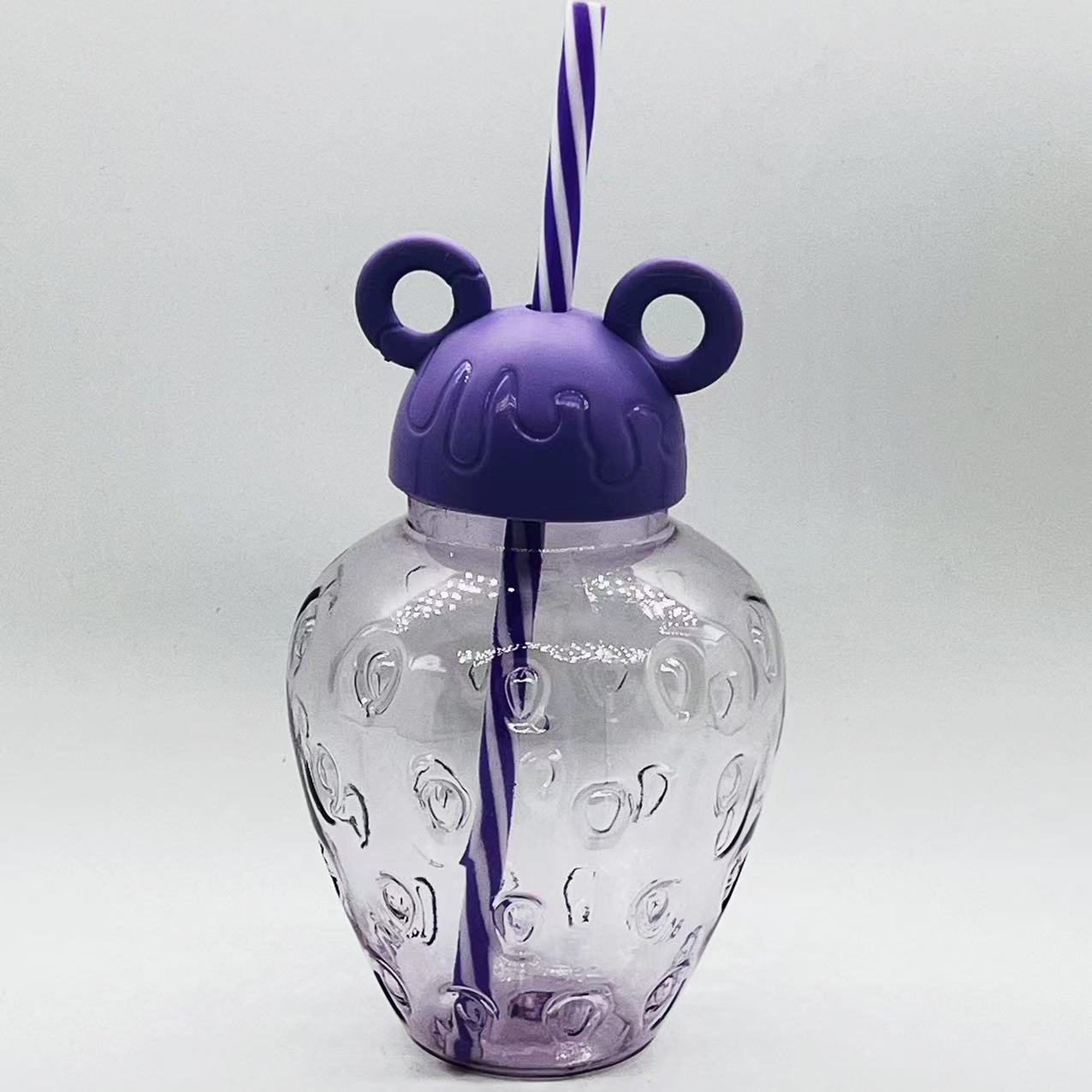 草莓杯水果造型pet500毫升吸管杯皇冠吸水杯果汁茶饮瓶