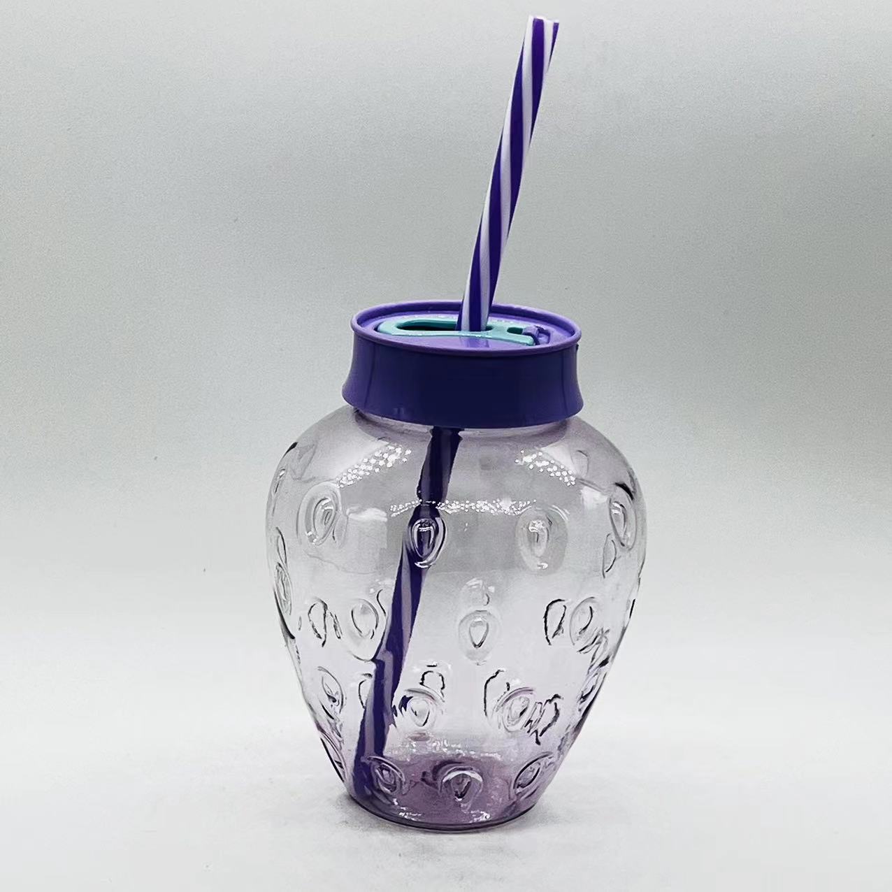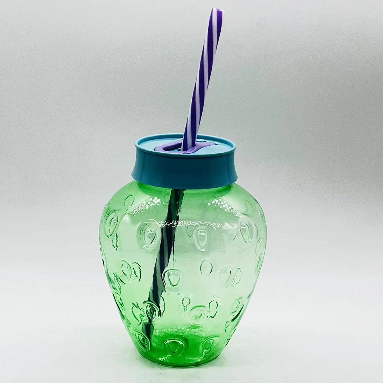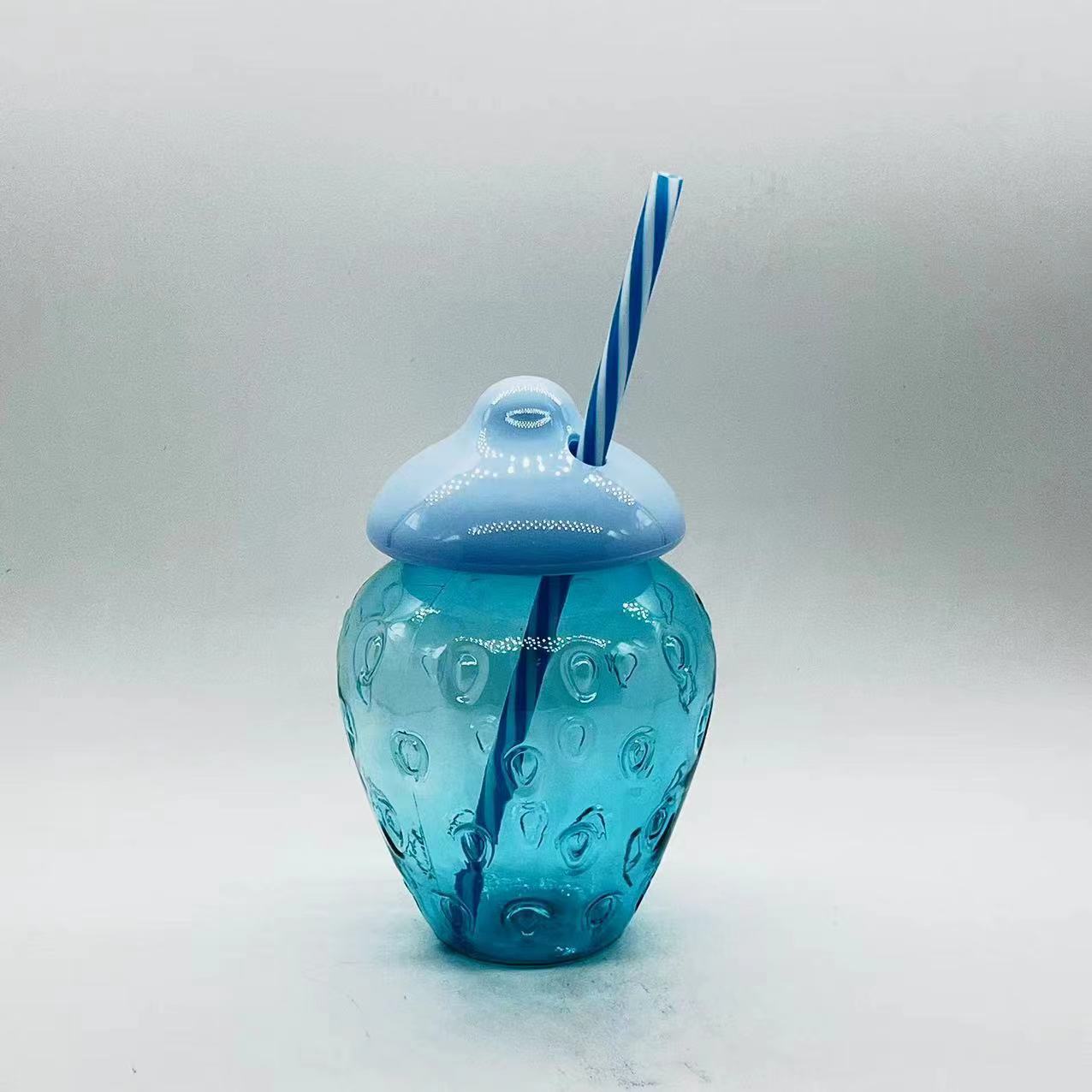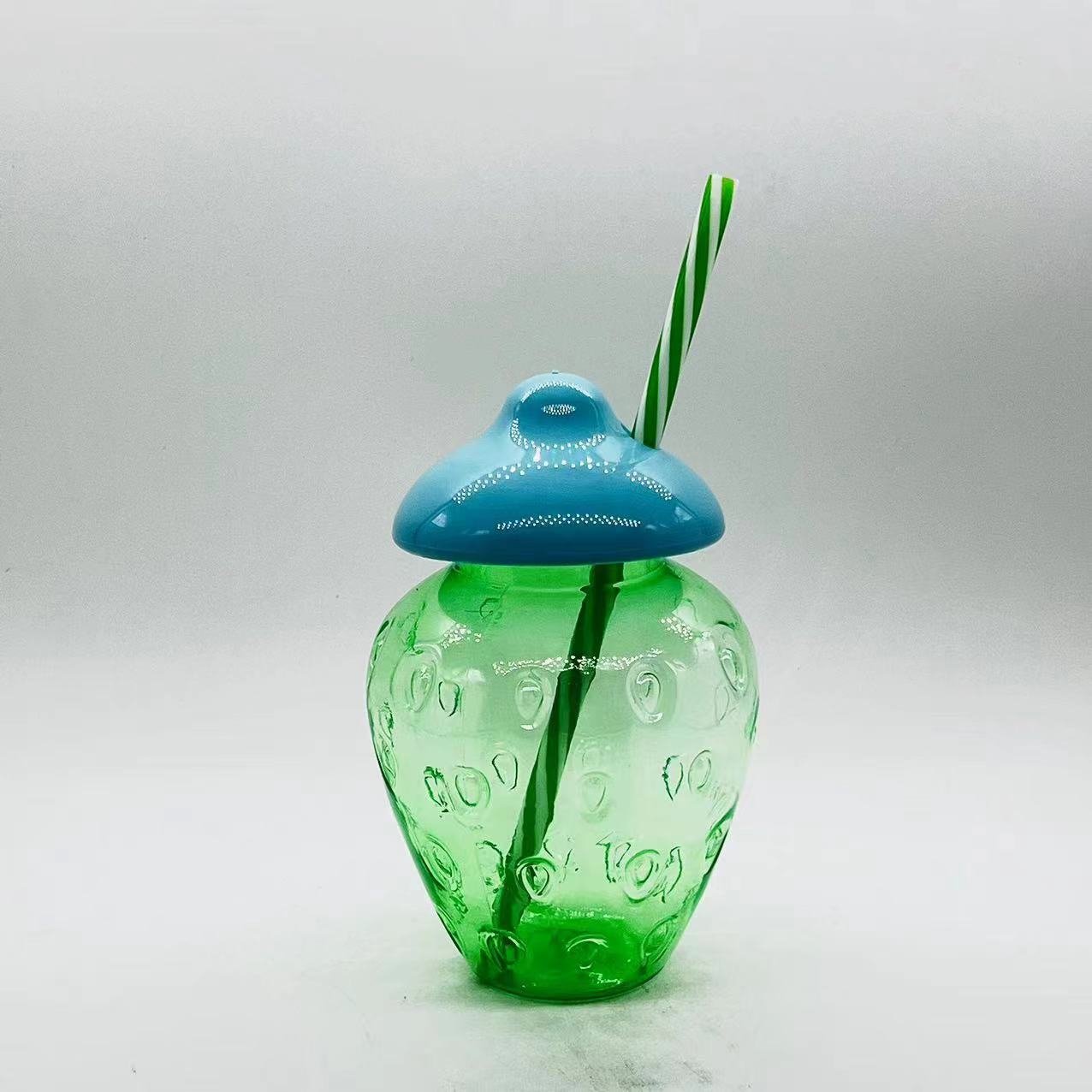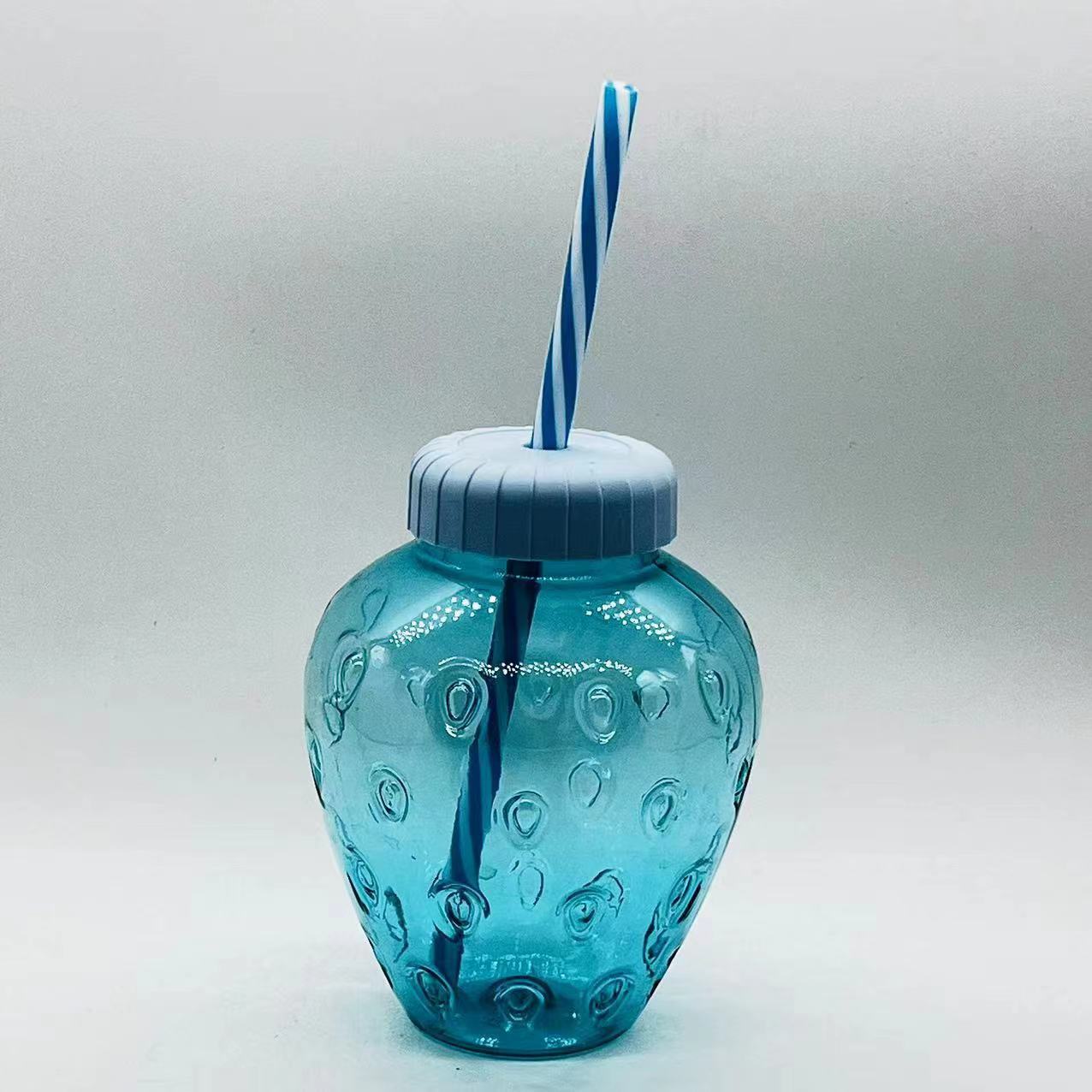 草莓杯水果造型pet500毫升吸管杯皇冠吸水杯果汁茶饮瓶