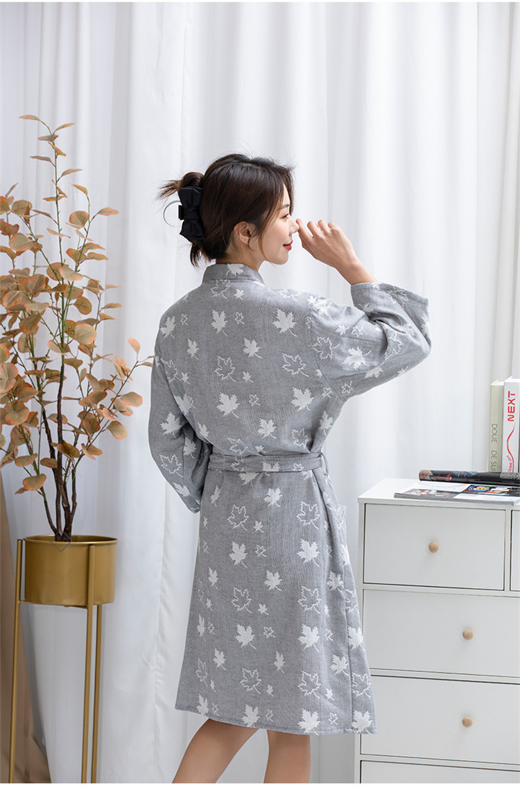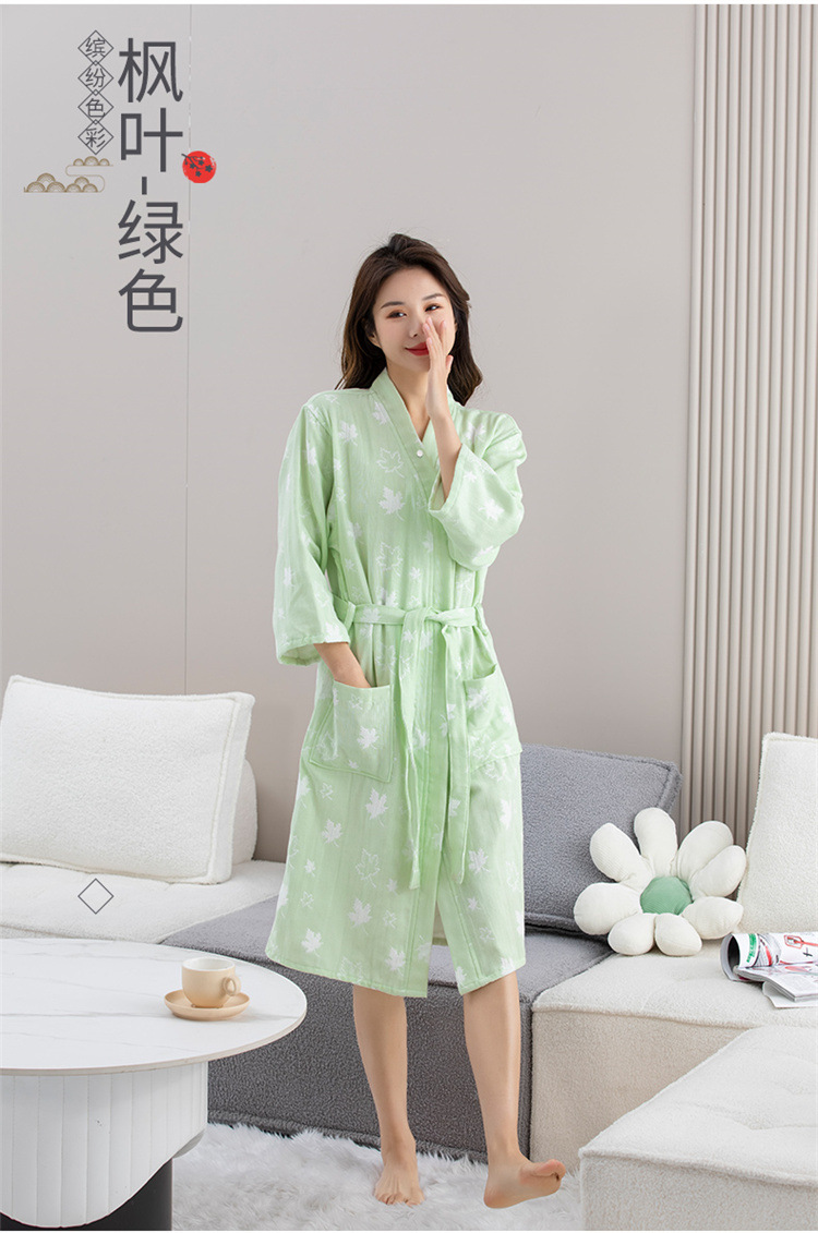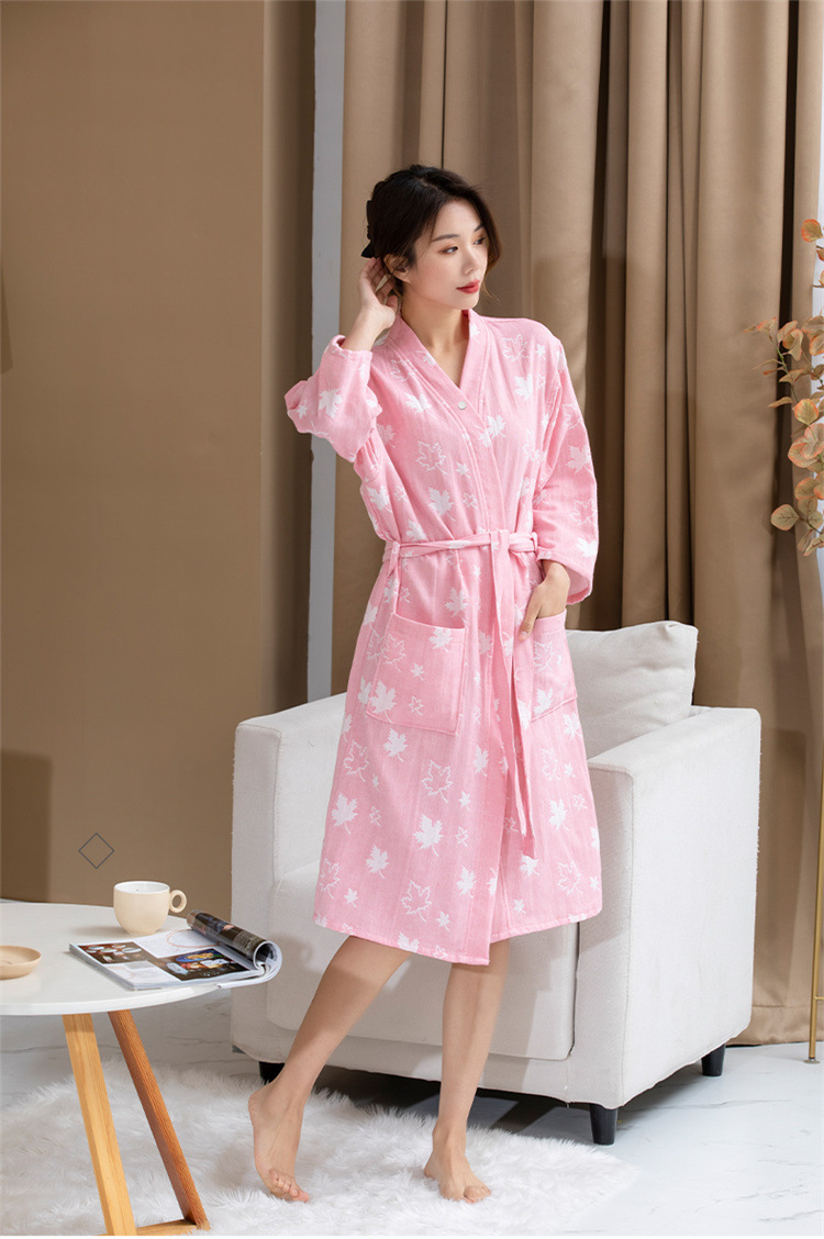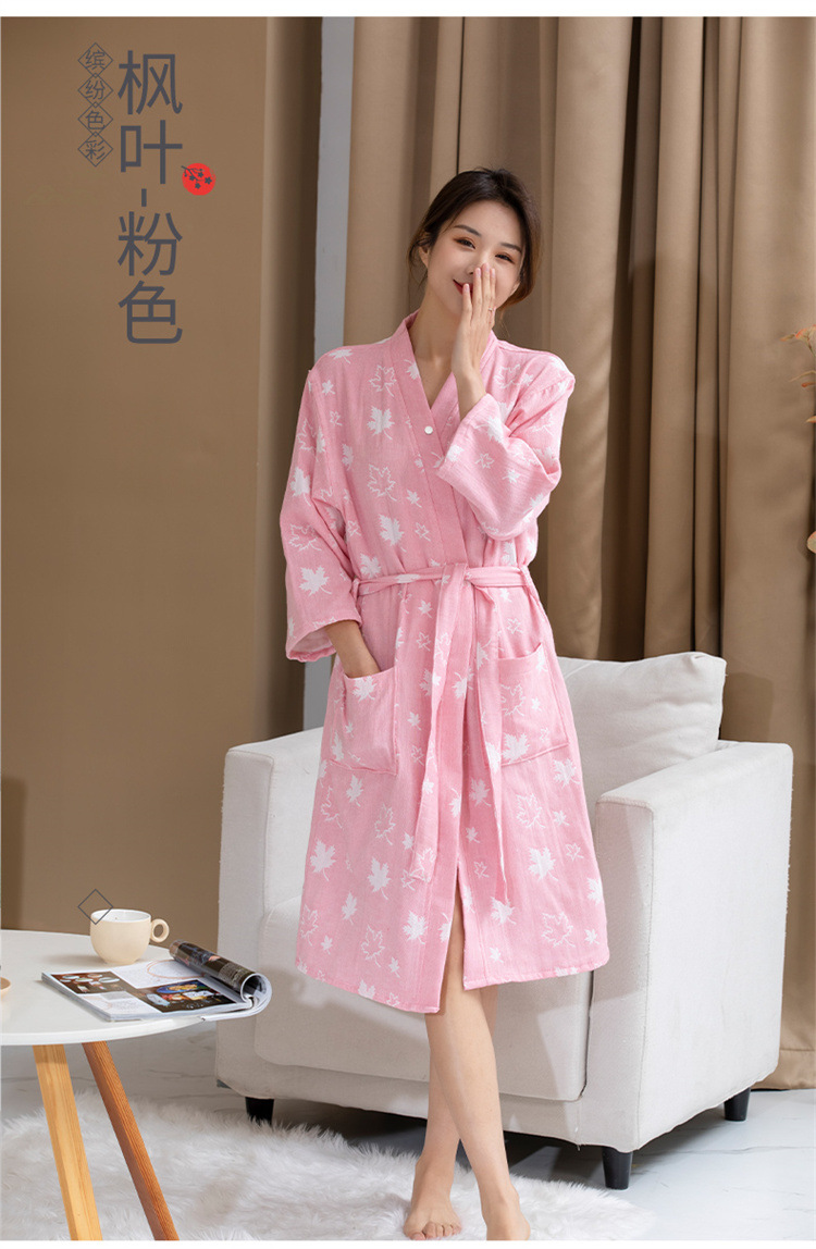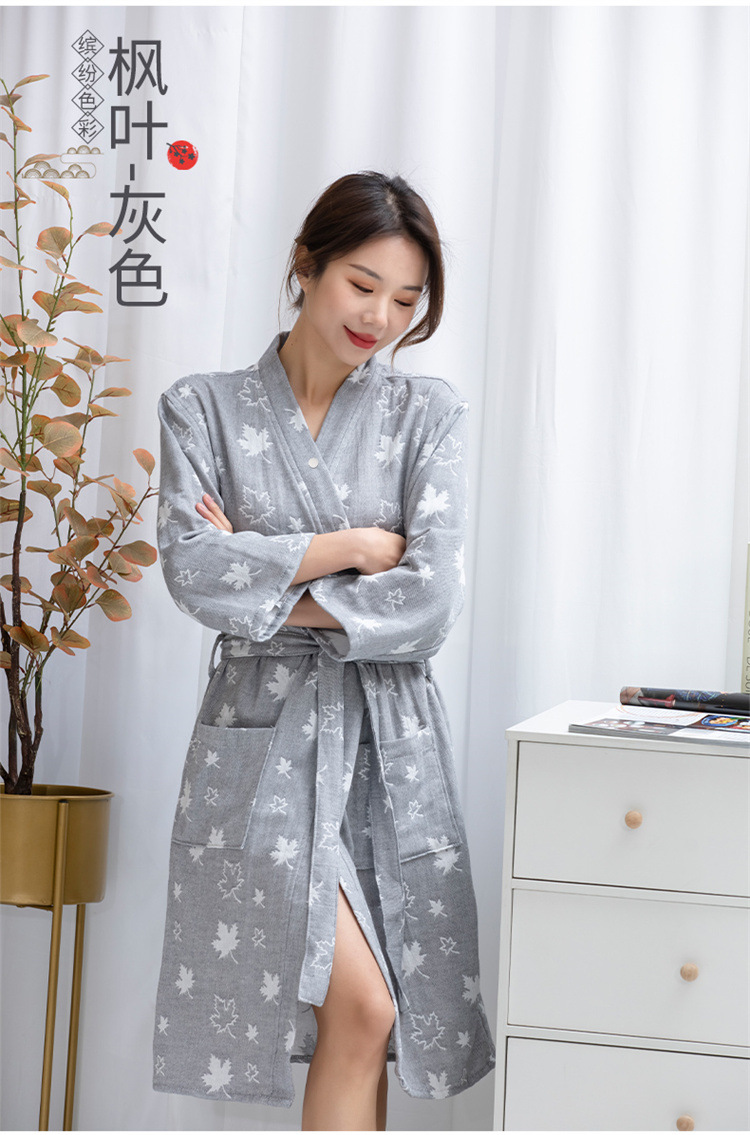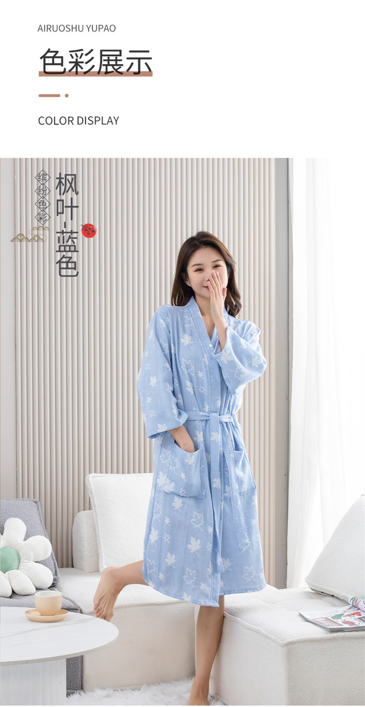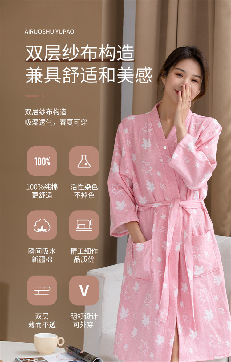 纯棉浴袍女春夏薄款高密双层纱布浴巾浴衣吸水速干美容SPA定制LOG