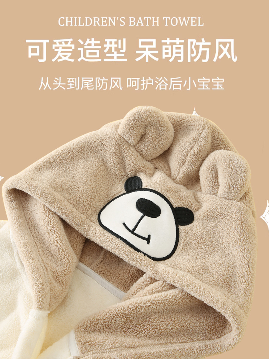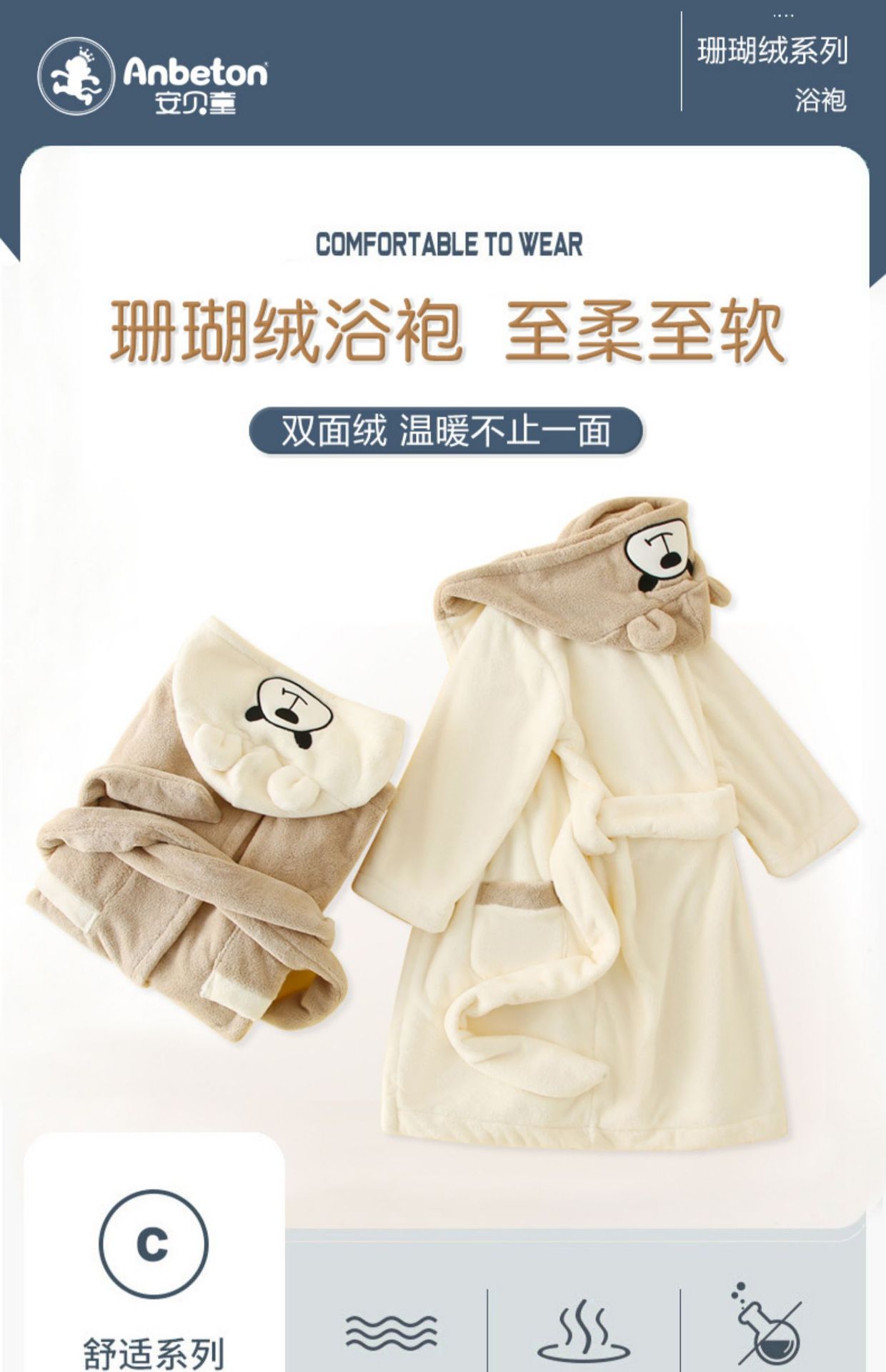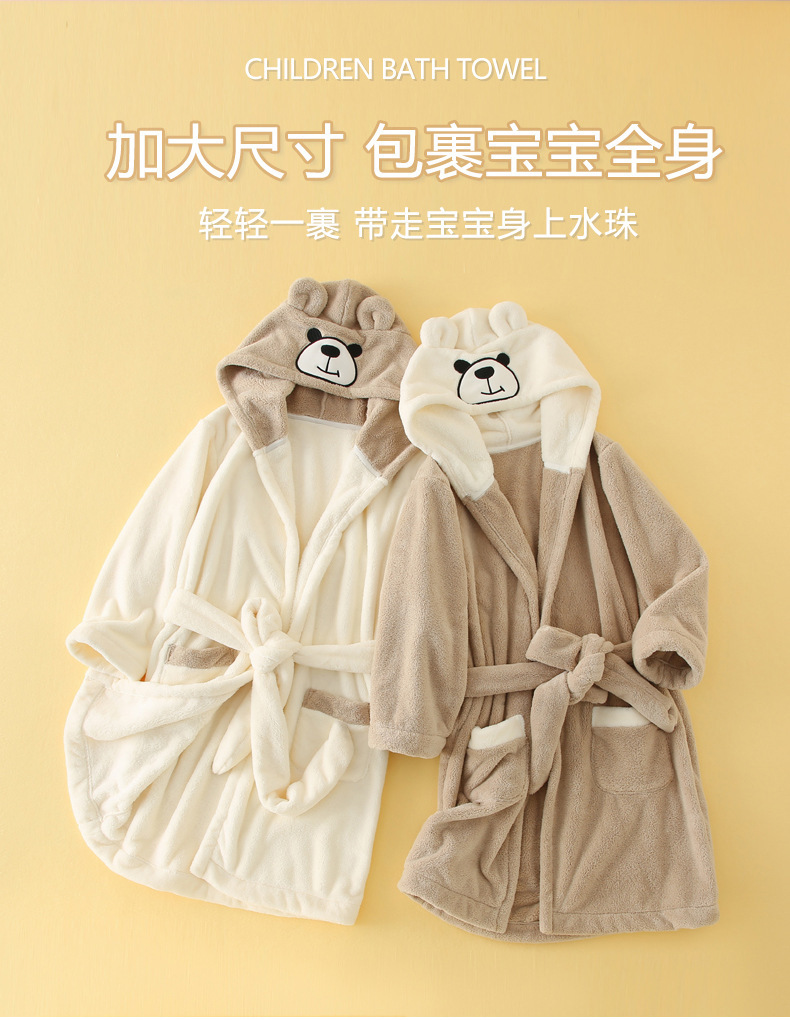 儿童浴袍男童睡袍珊瑚绒男孩浴衣吸水宝宝洗澡加绒浴巾冬天中大童