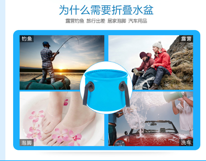 户外折叠水桶 PVC折叠钓鱼桶 折叠洗车桶泡脚桶便捷野营提水桶