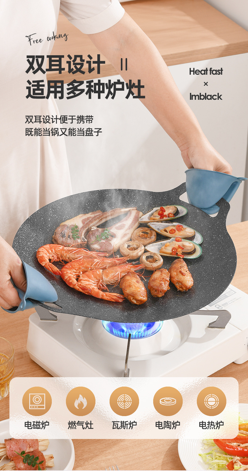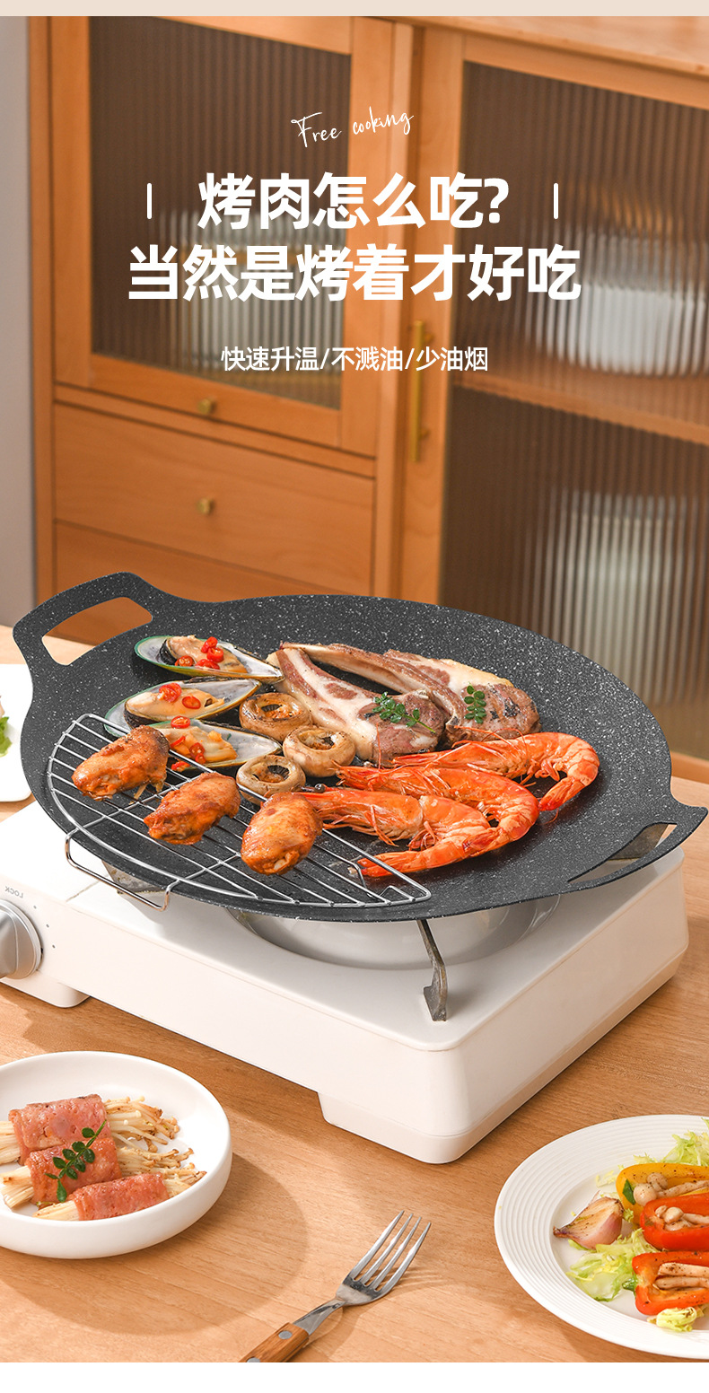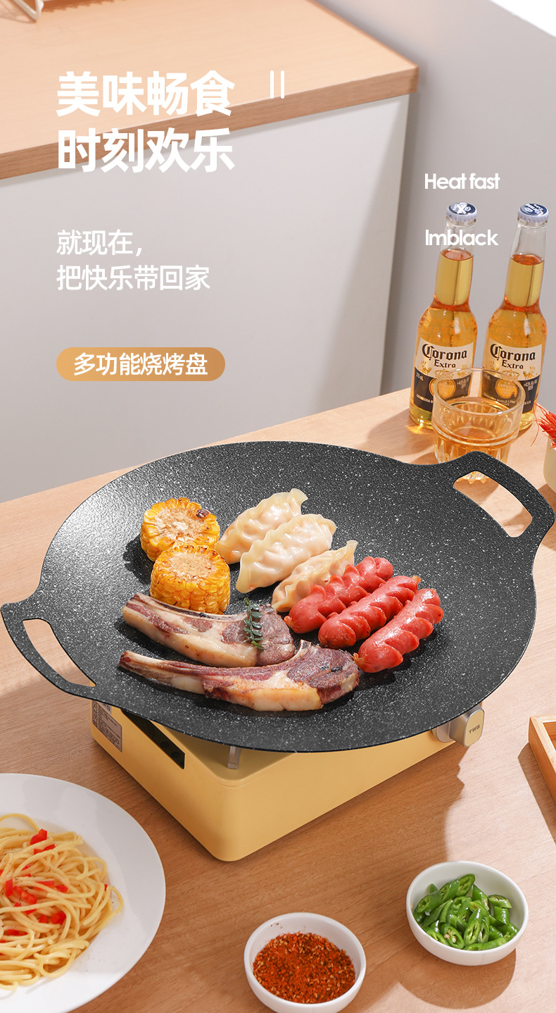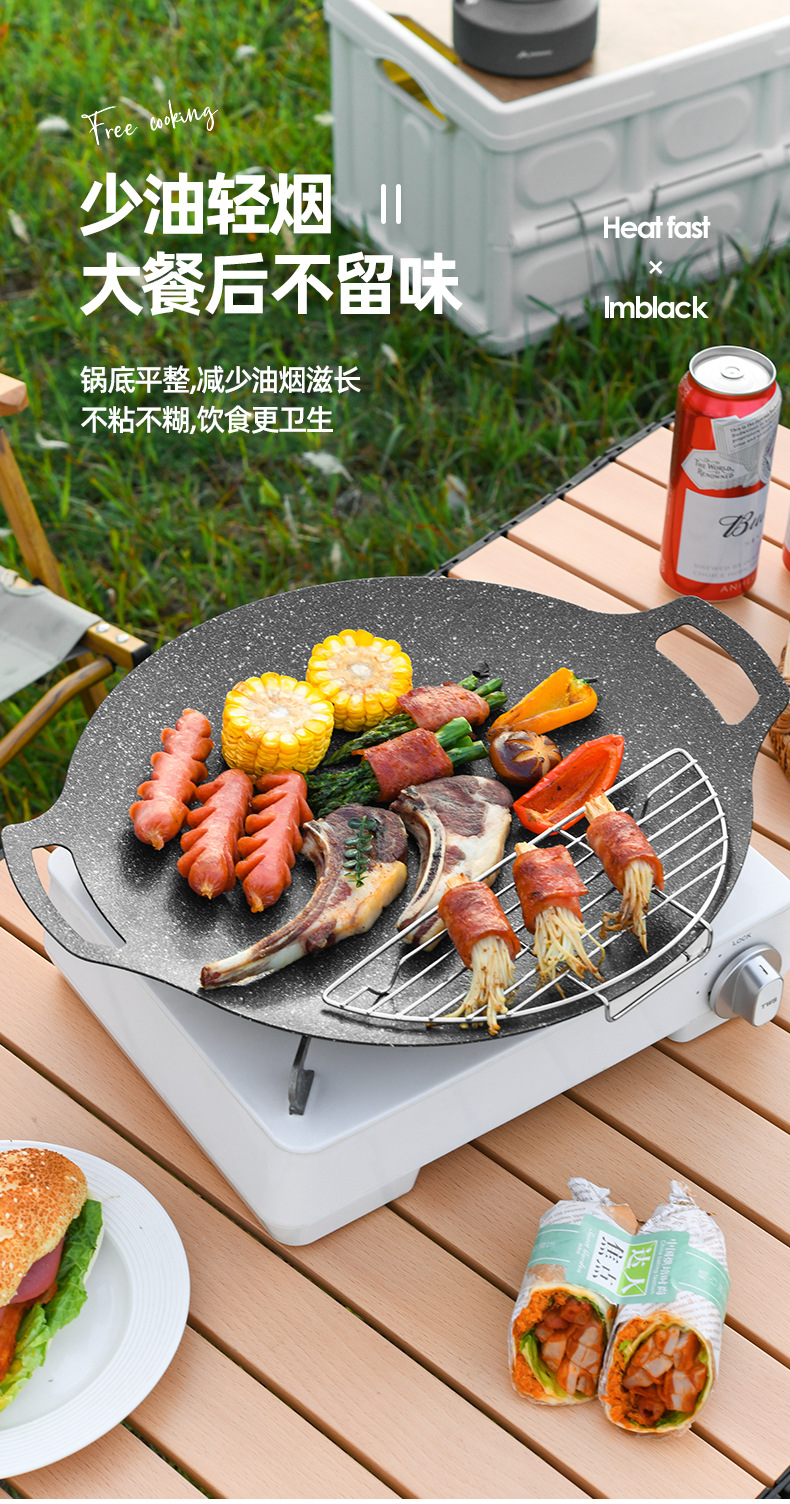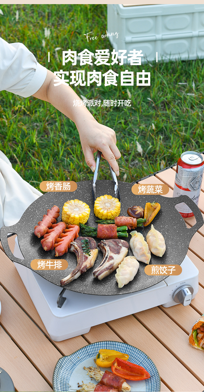 户外卡式炉铁板烧烤盘商用麦饭石不粘韩式烤肉盘露营电磁炉煎牛排