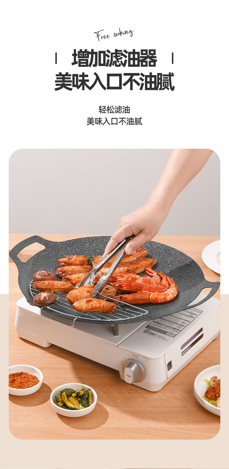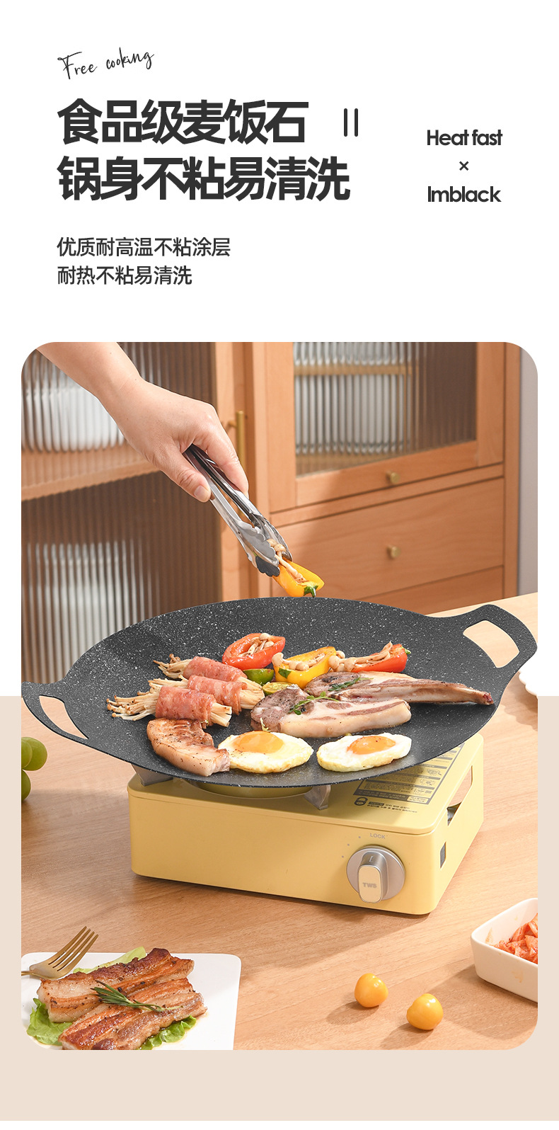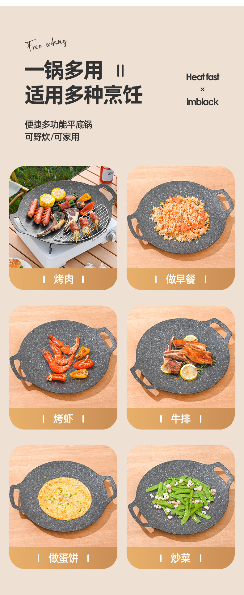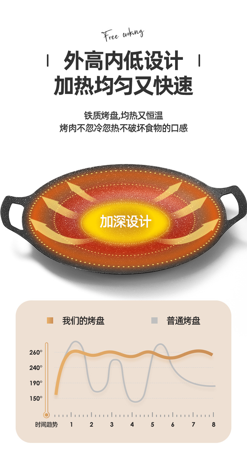户外卡式炉铁板烧烤盘商用麦饭石不粘韩式烤肉盘露营电磁炉煎牛排