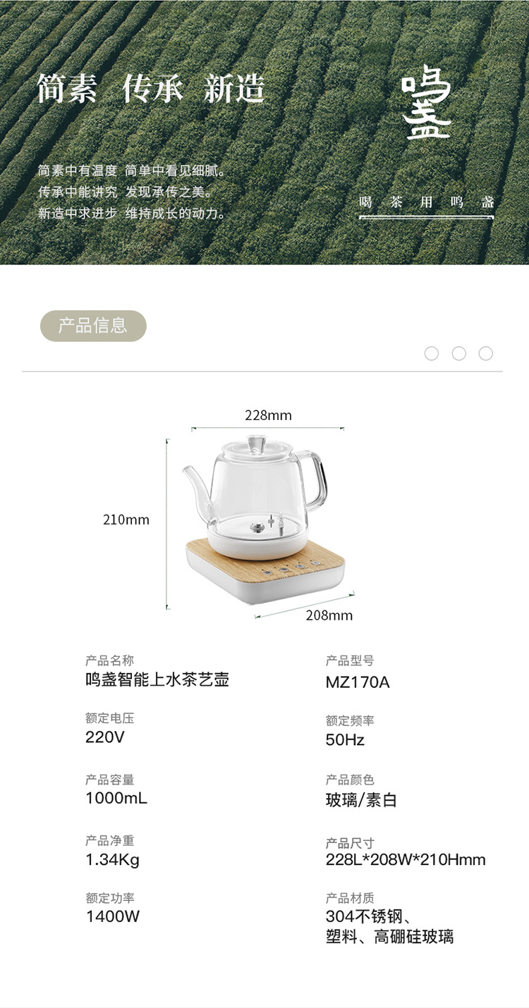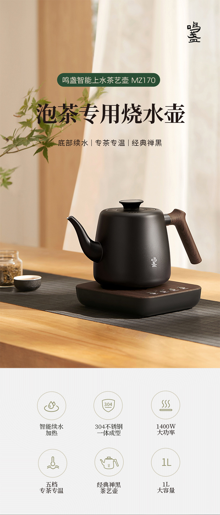 鸣盏全电水壶MZ170自动抽水上水壶热水壶煮茶壶茶艺泡茶壶