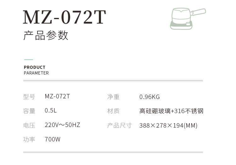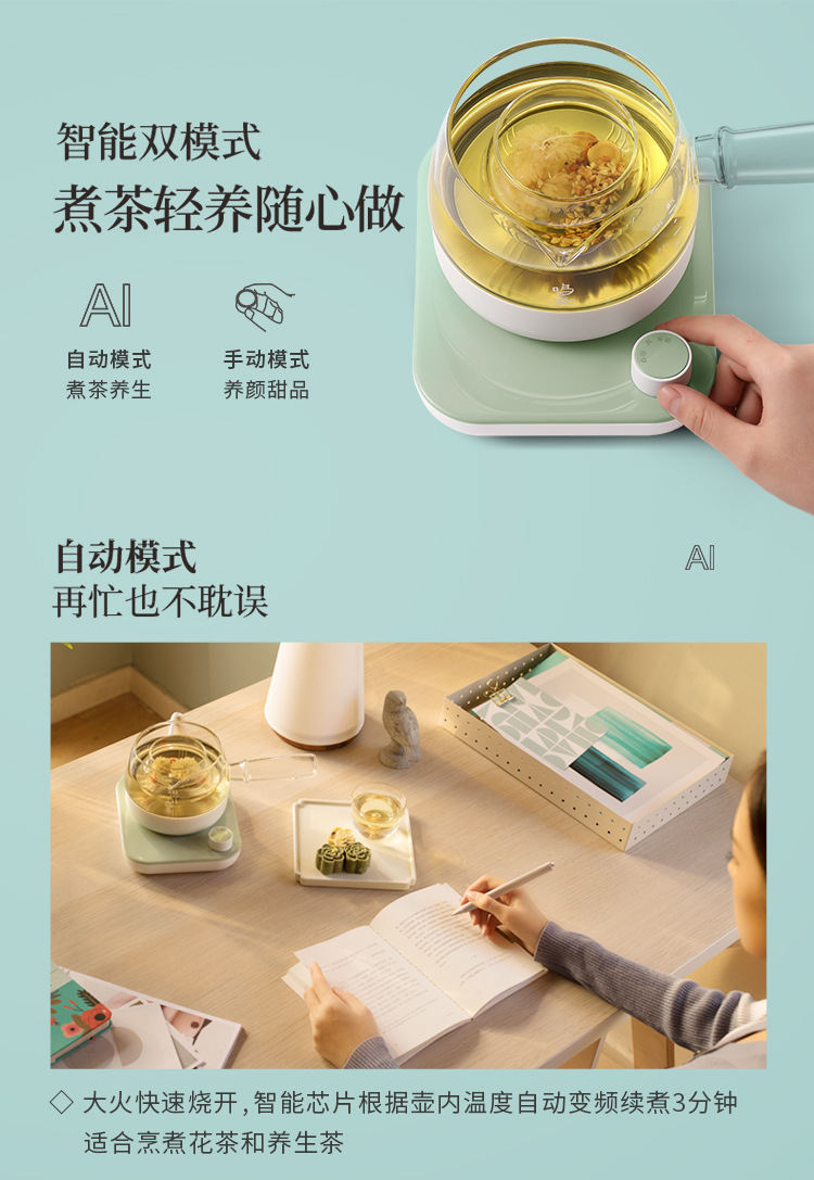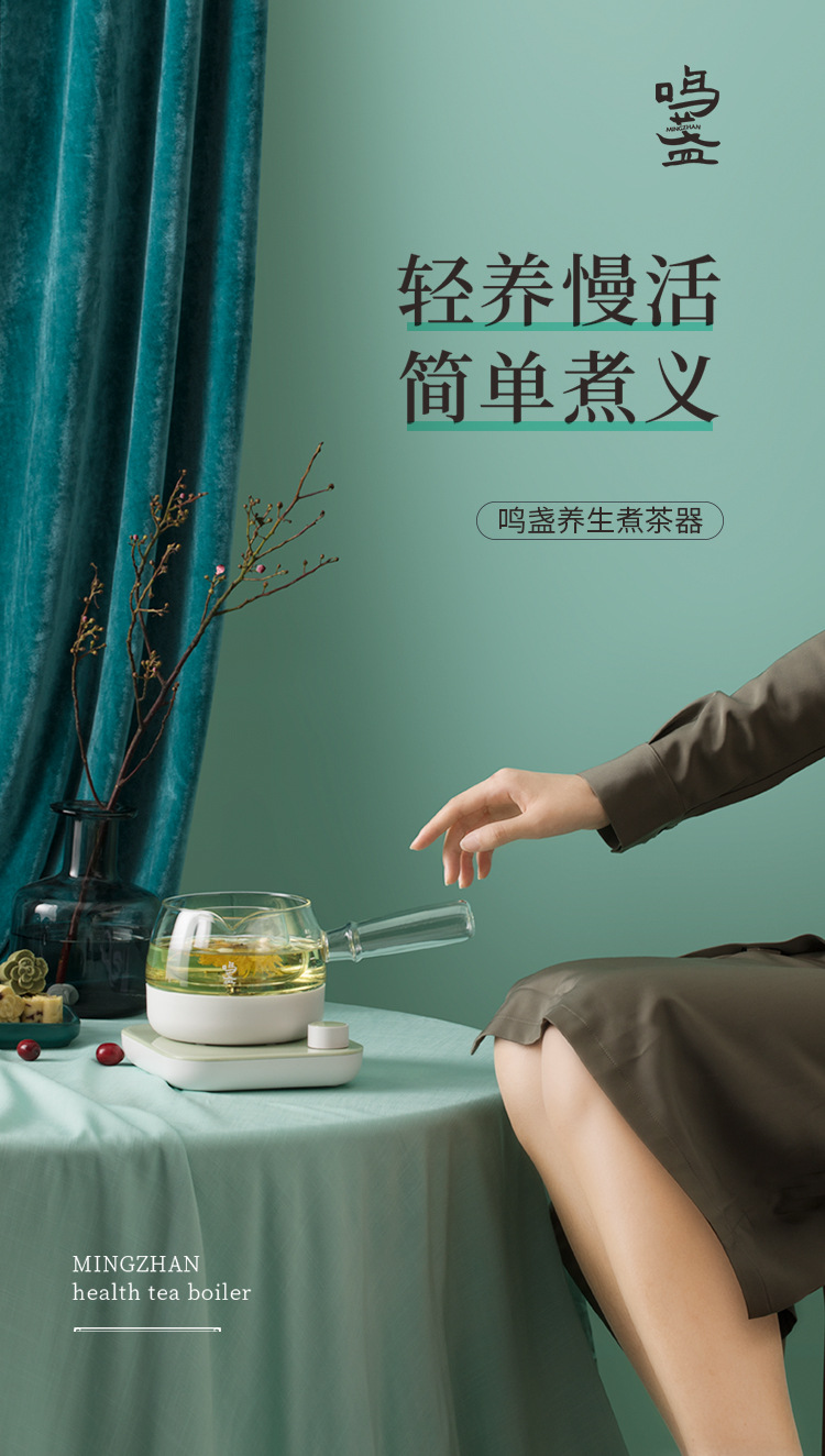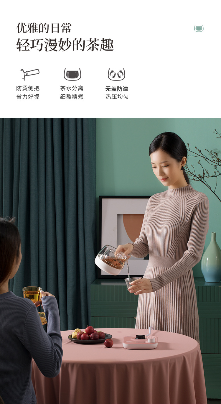鸣盏MZ-072T煮茶器 花茶养生壶 办公室 小型家用煮茶壶 玻璃壶