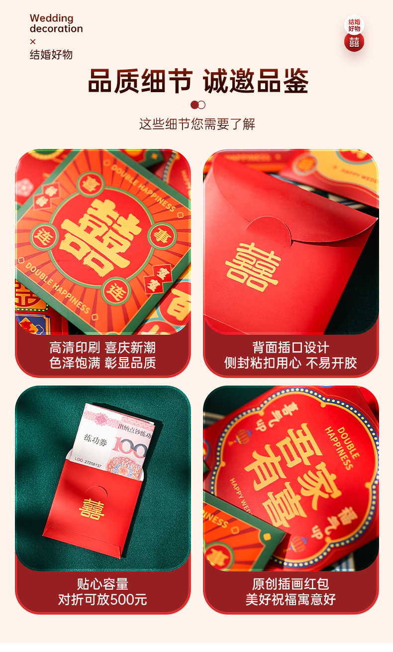 红包袋结婚专用婚礼接亲堵门喜包百元港式开门迷你利是封2024新款