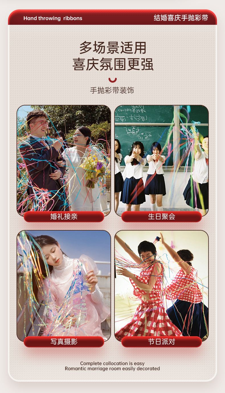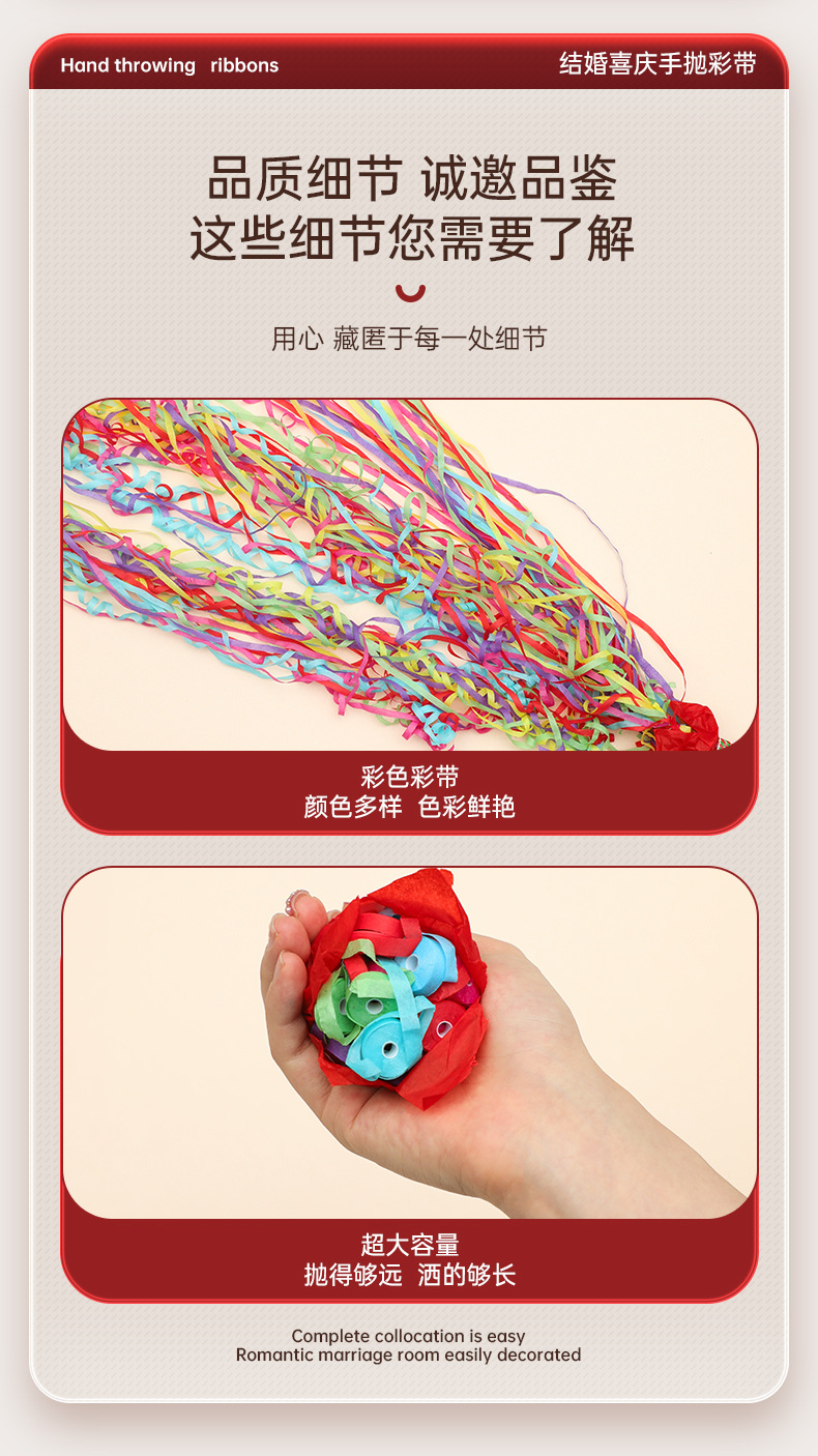结婚接亲手抛丝礼花婚礼生日派对氛围道具手雷飘带彩条条婚庆用品
