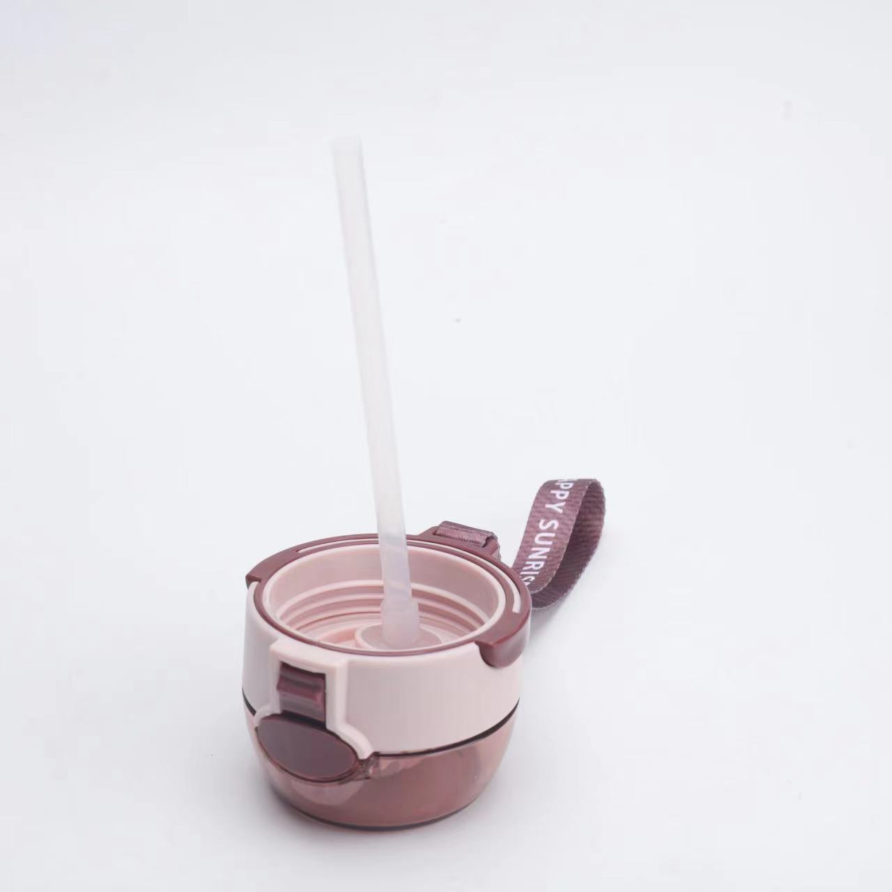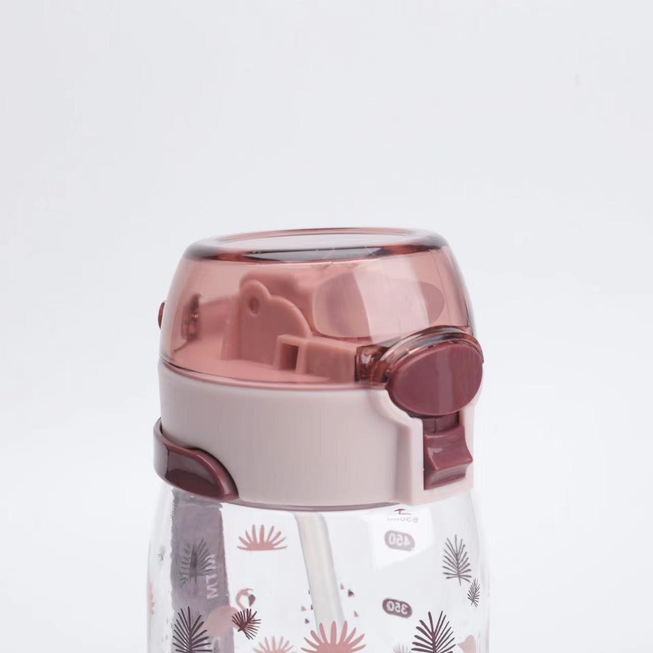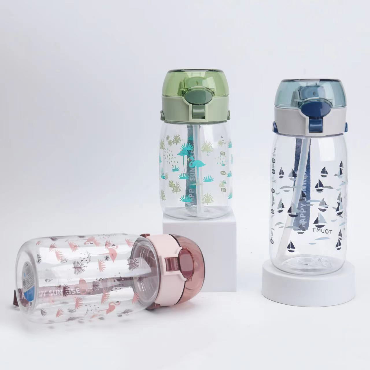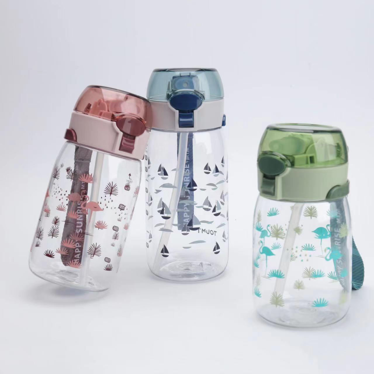 新款高颜值儿童吸管塑料运动太空杯带提手印花好看颜色多样儿童水