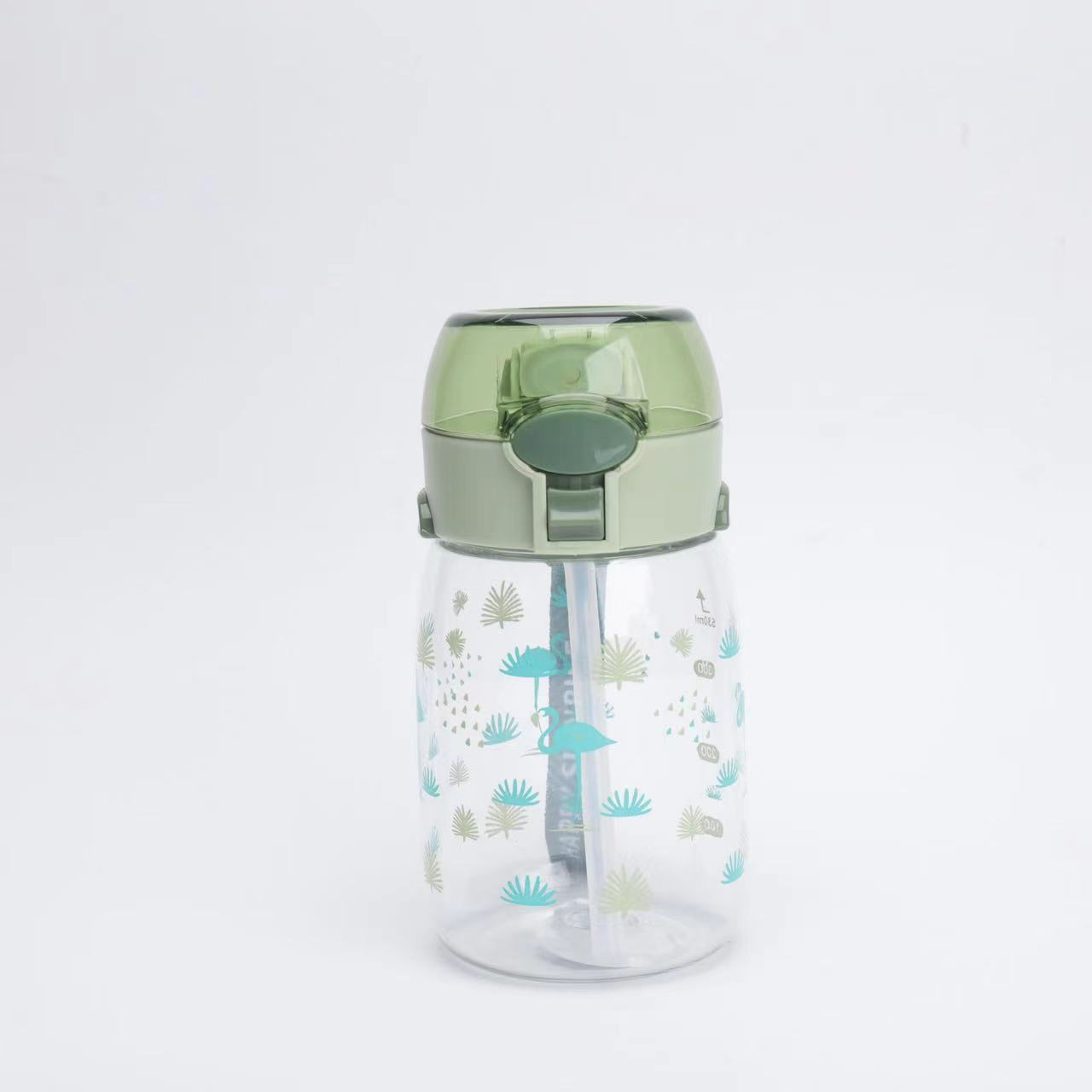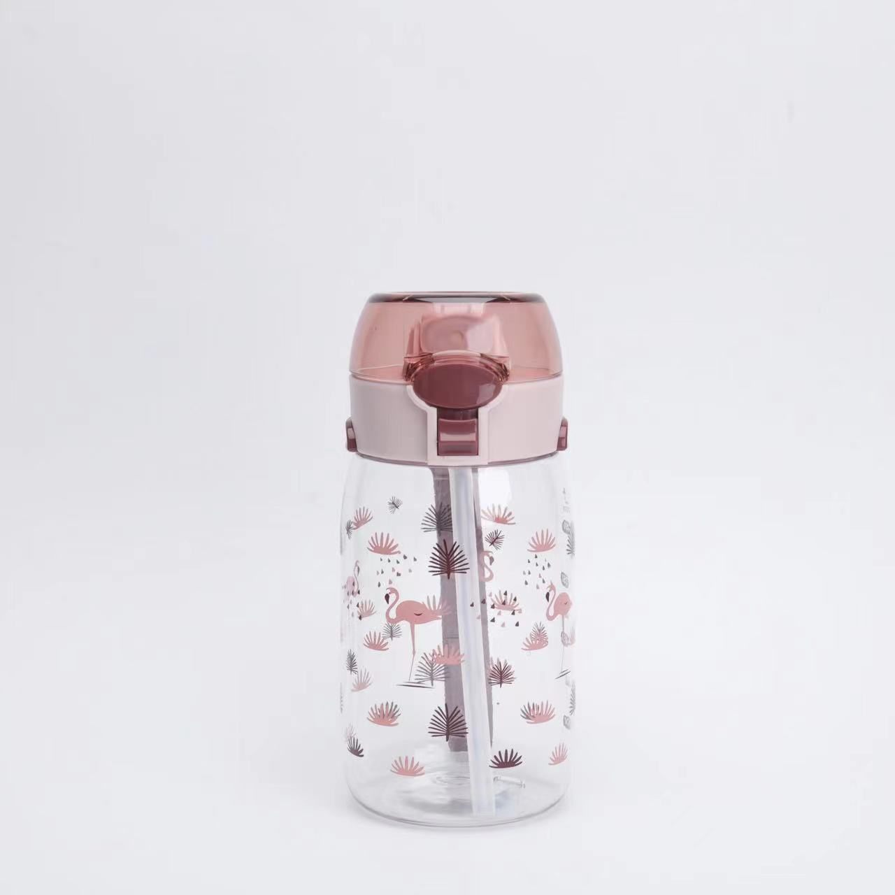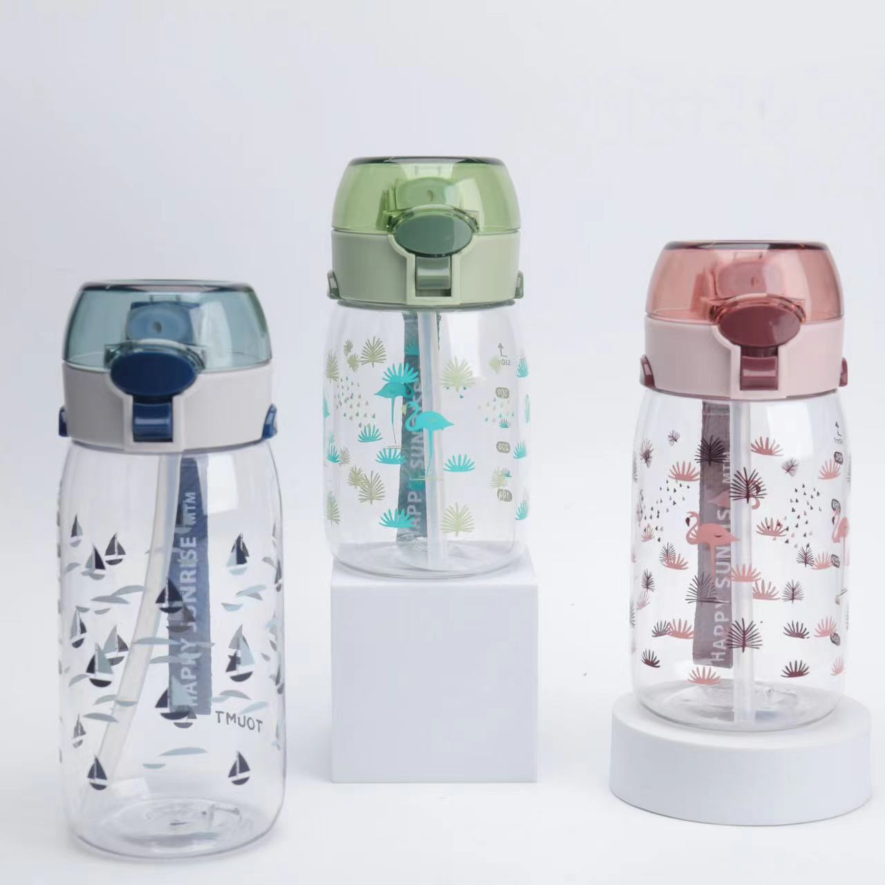 新款高颜值儿童吸管塑料运动太空杯带提手印花好看颜色多样儿童水