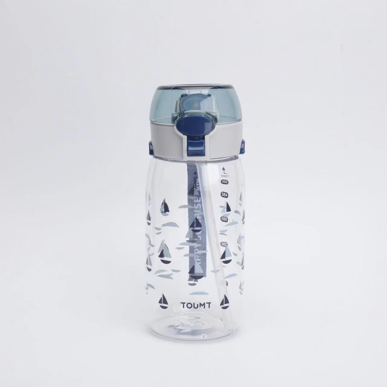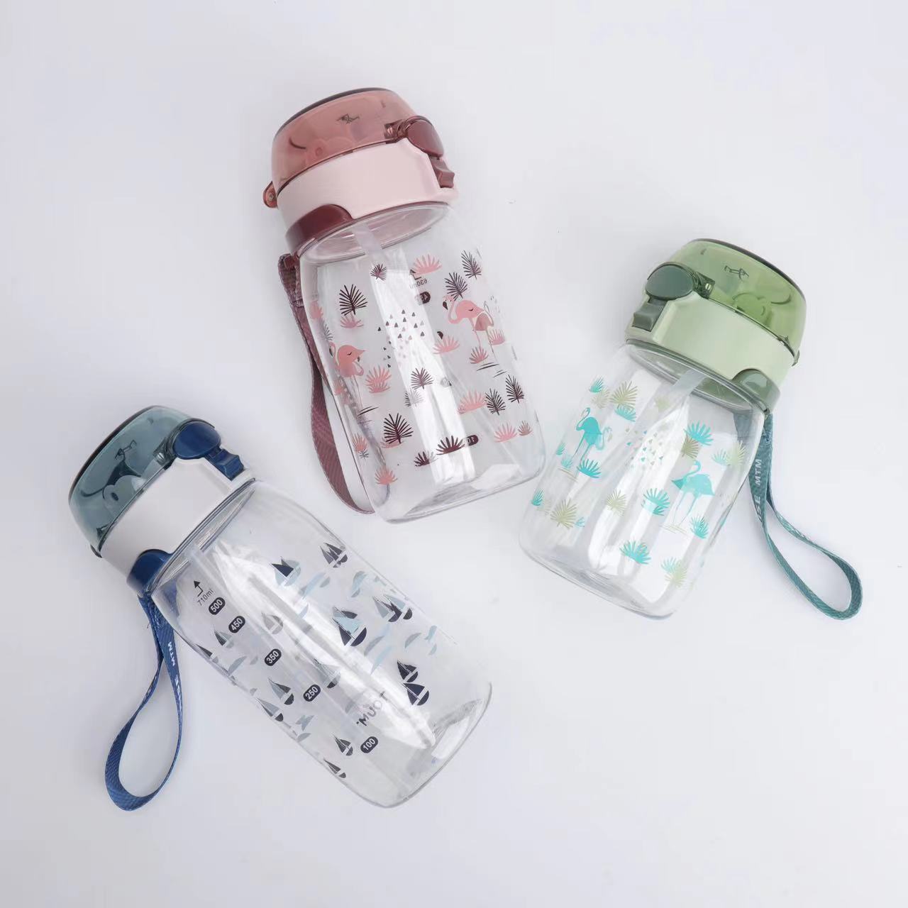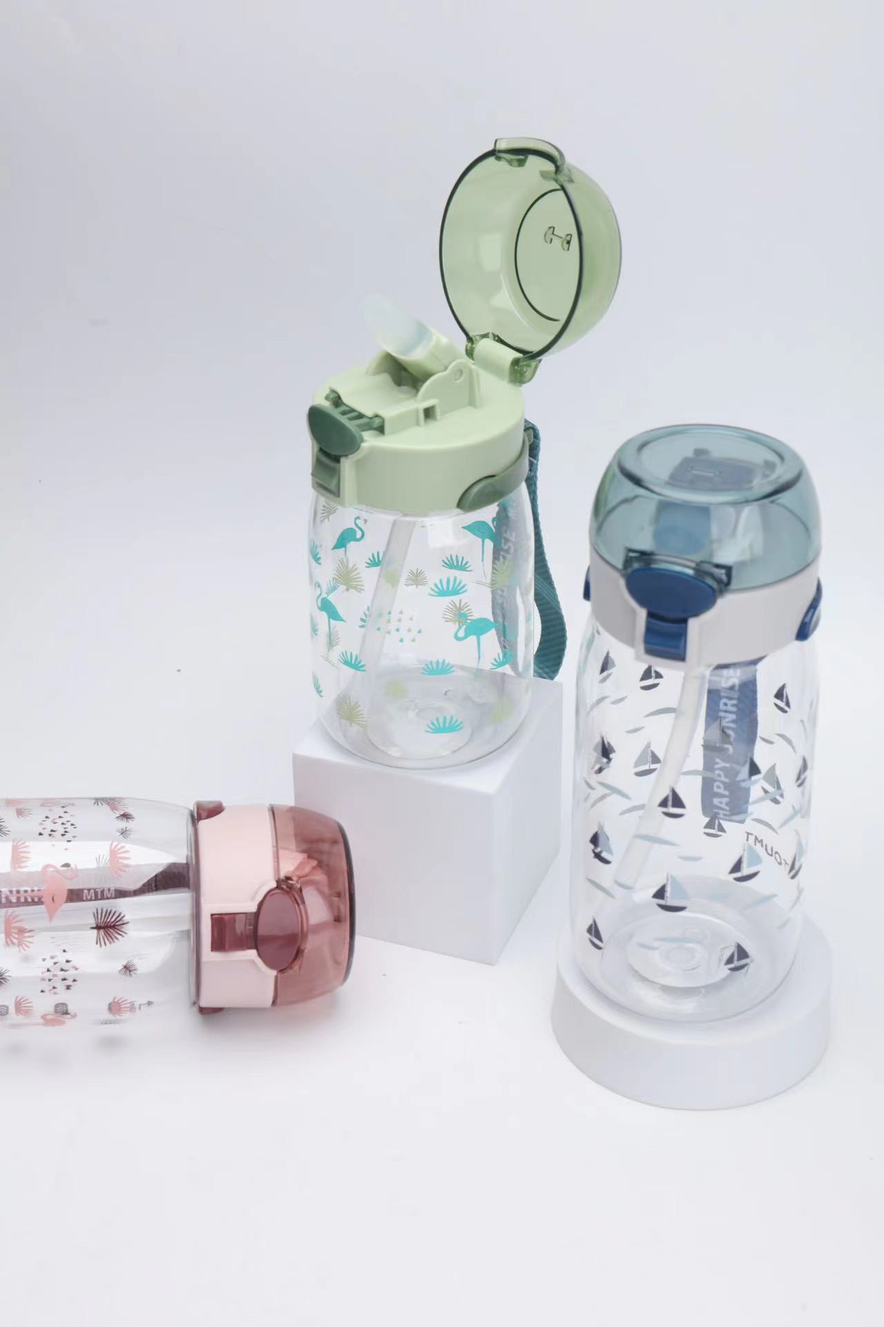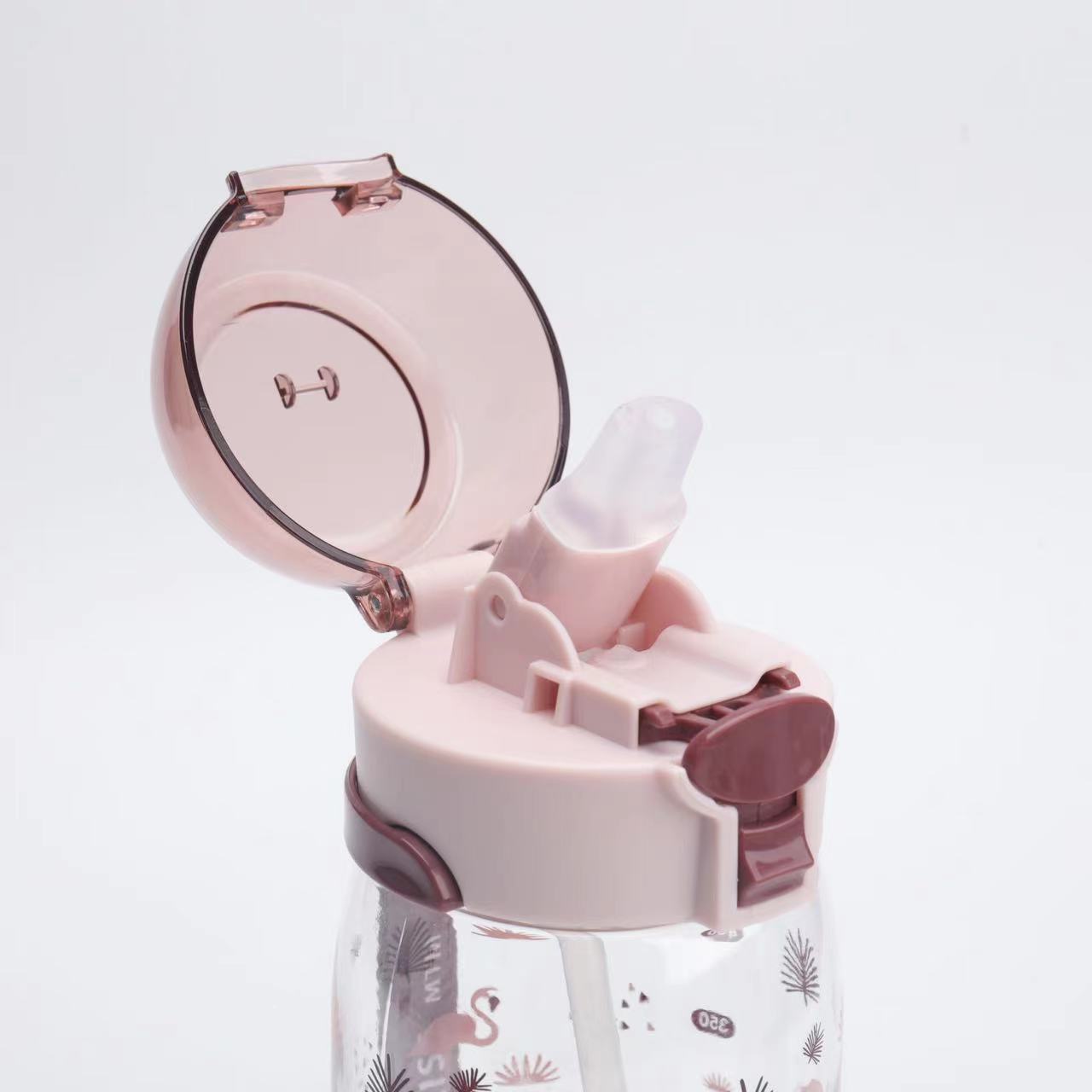 新款高颜值儿童吸管塑料运动太空杯带提手印花好看颜色多样儿童水