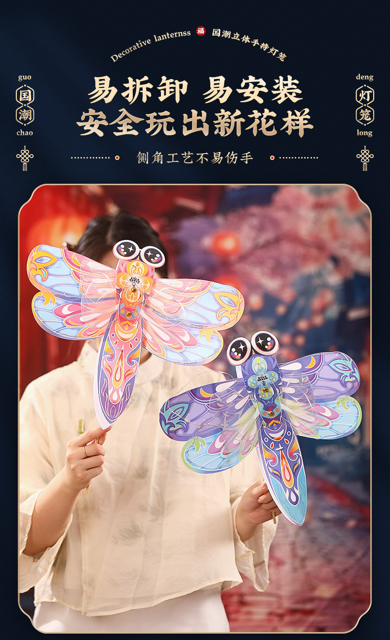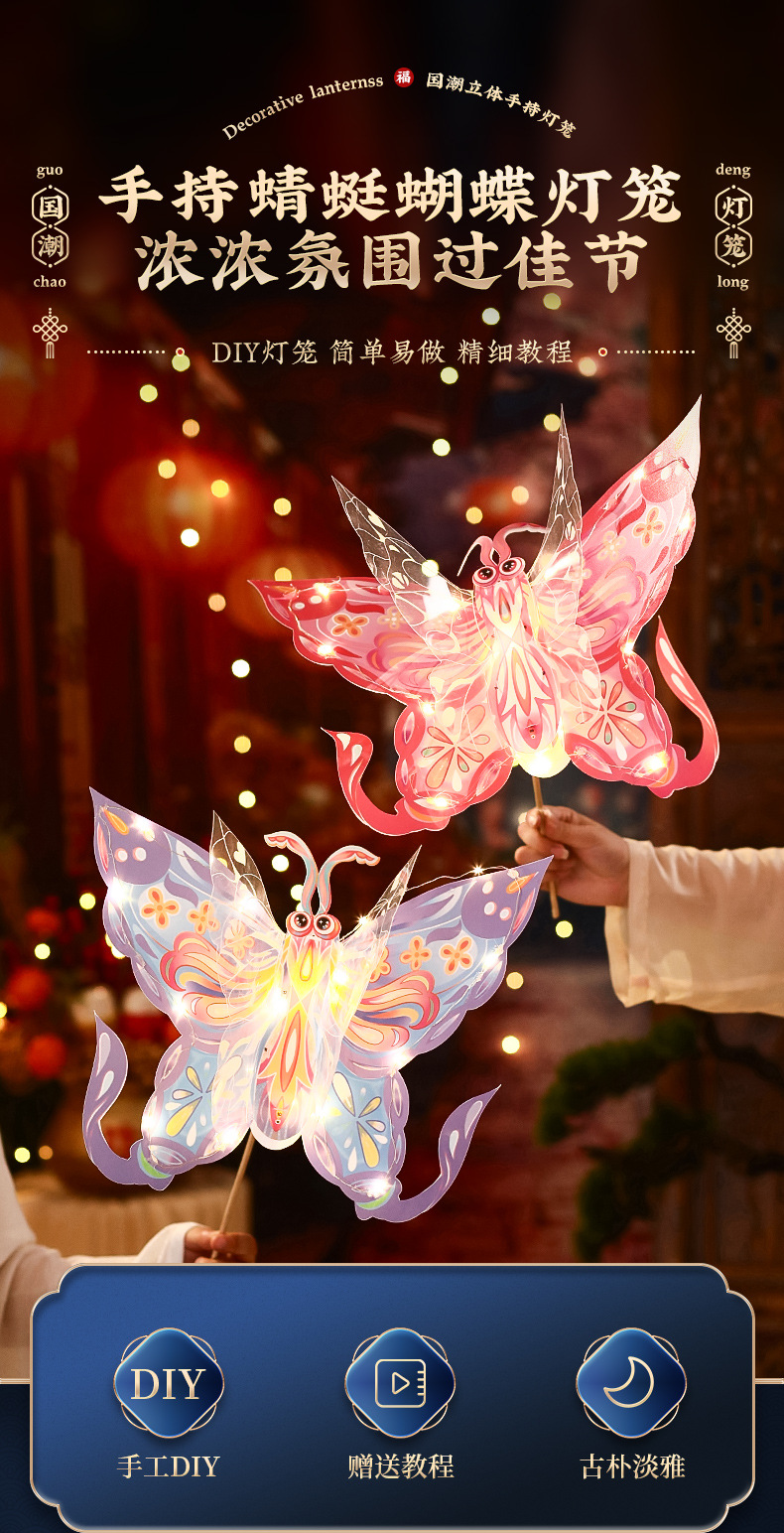 中秋节新款灯笼手工蝴蝶灯手工制作发光翅膀蝴蝶花灯批发中秋节蝴蝶蜻蜓灯笼手工diy儿童制作材料非遗古风花灯手提国潮