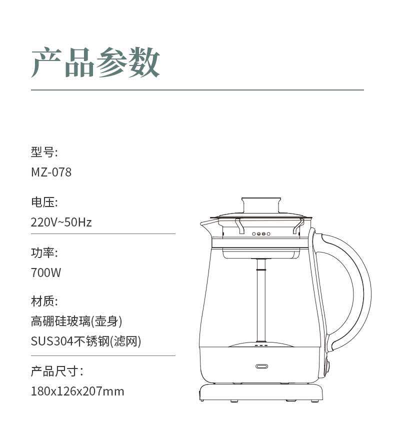 鸣盏煮茶器MZ-078 家用多功能养生壶 电热烧水煮茶壶 办公 家用
